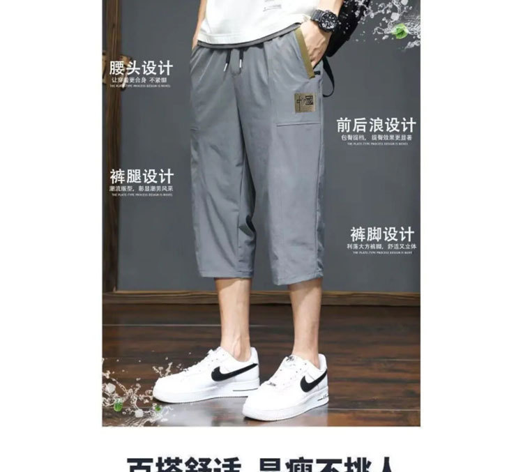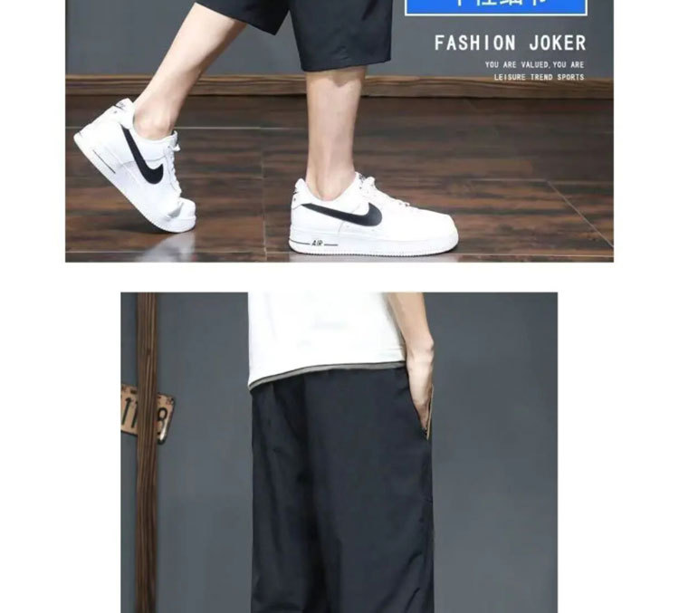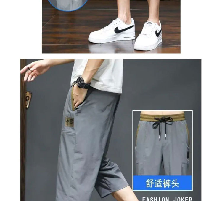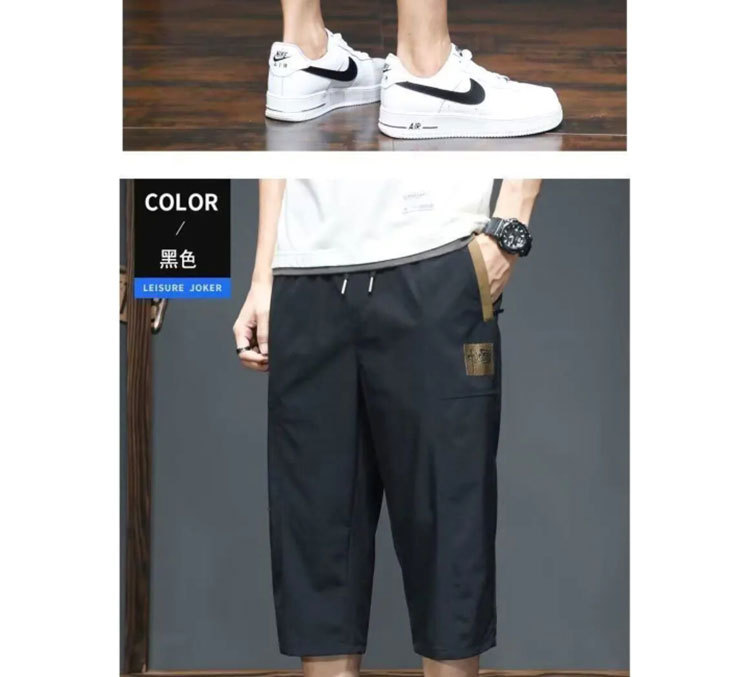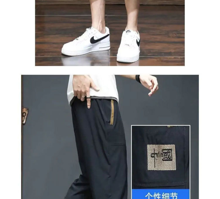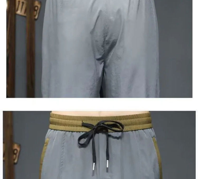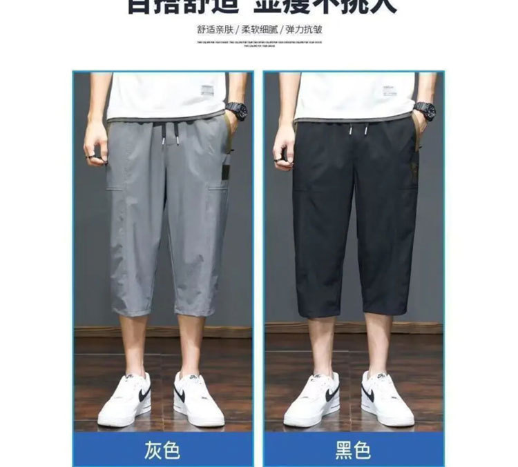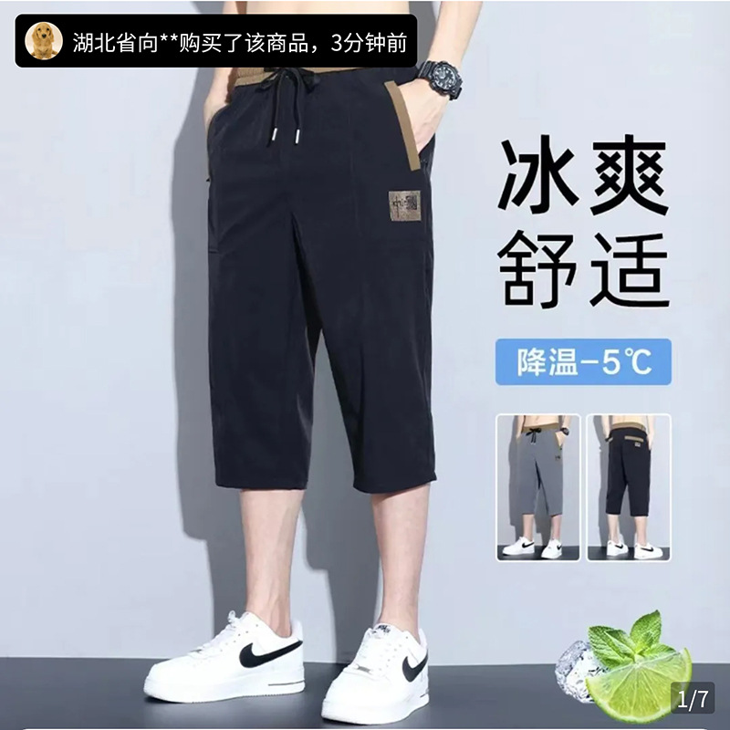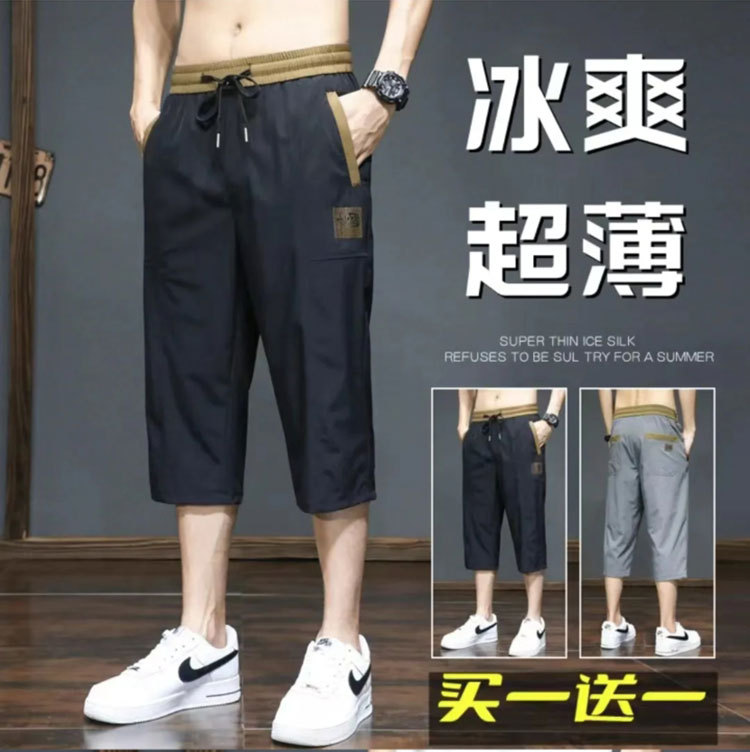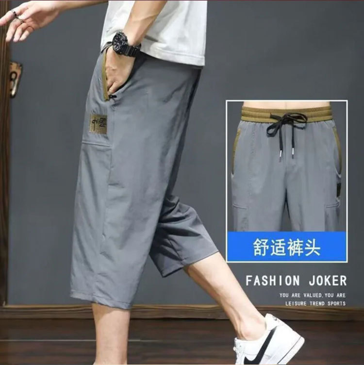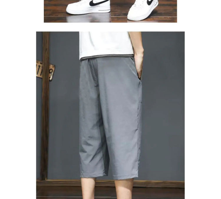 Yunfeihui 남성 바지 여름 얇은 얼음 실크 크롭 바지 남성 느슨한 스트레이트 바지 스포츠 통기성 속건 반바지