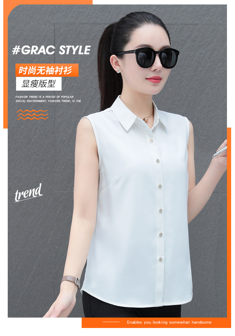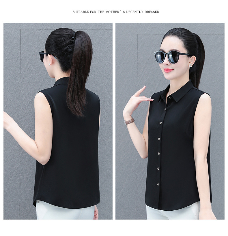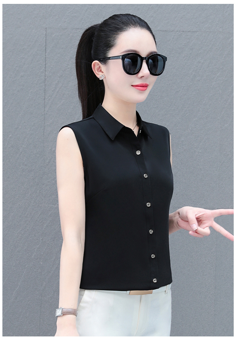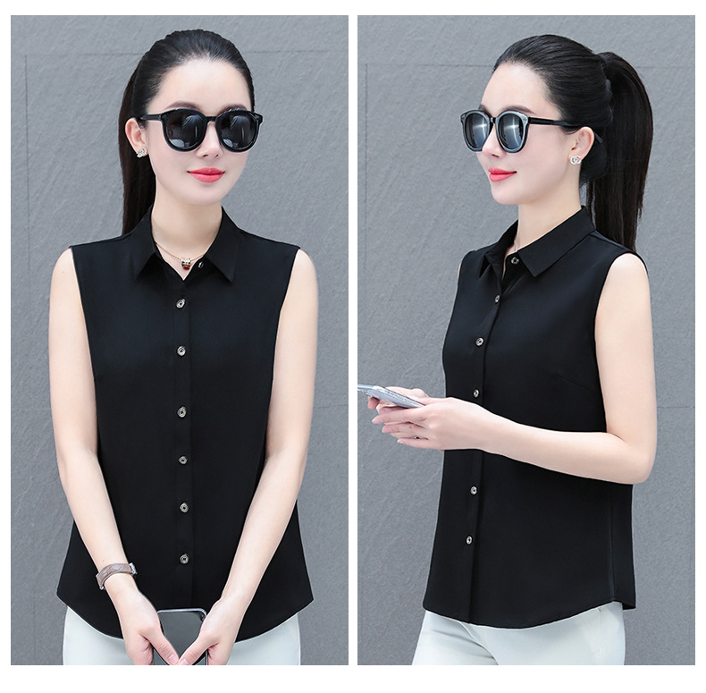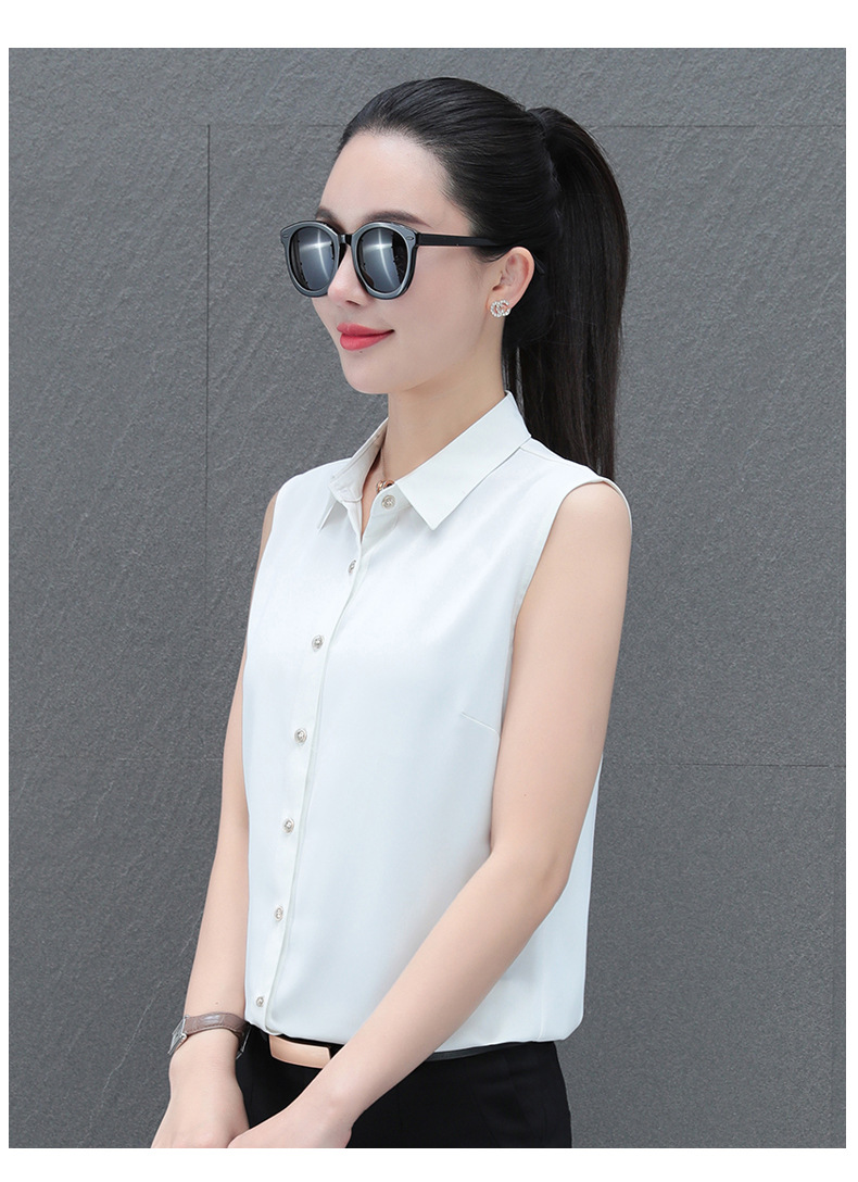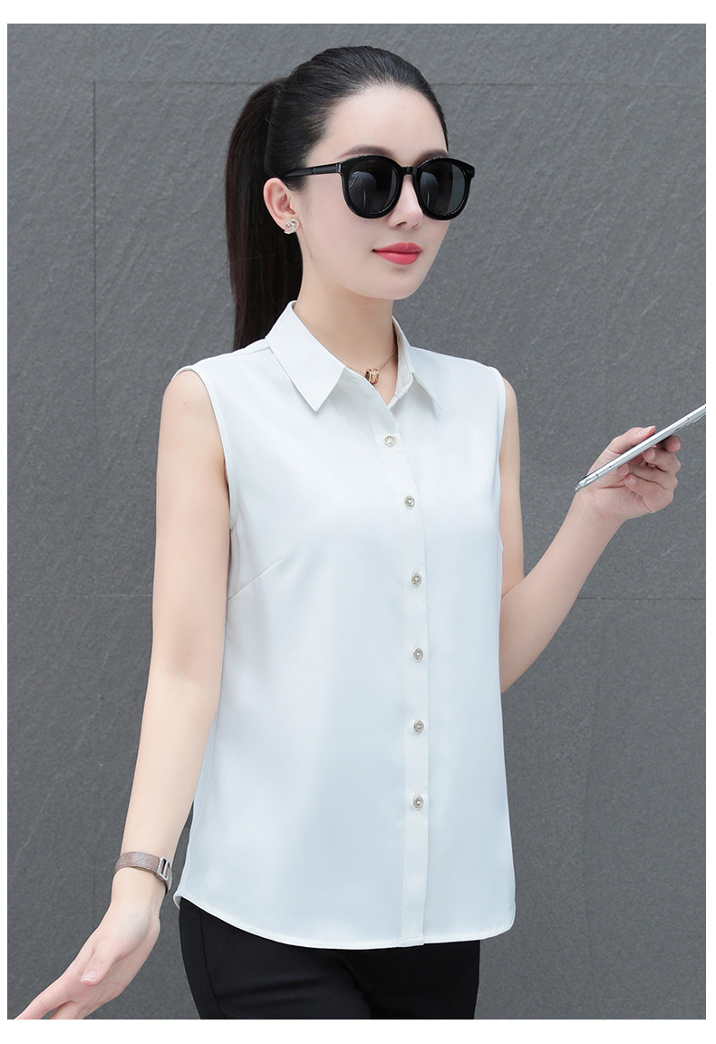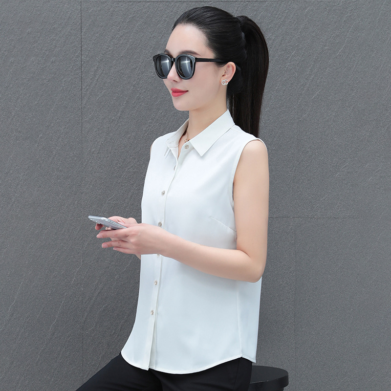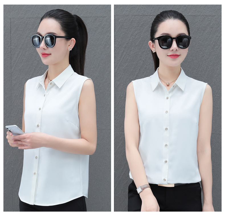 여성용 한국식 쉬폰 셔츠 탑, 여성용 다용도 전문 흰색 셔츠, 라펠 이너 레이어드 셔츠, 조끼, 민소매 셔츠