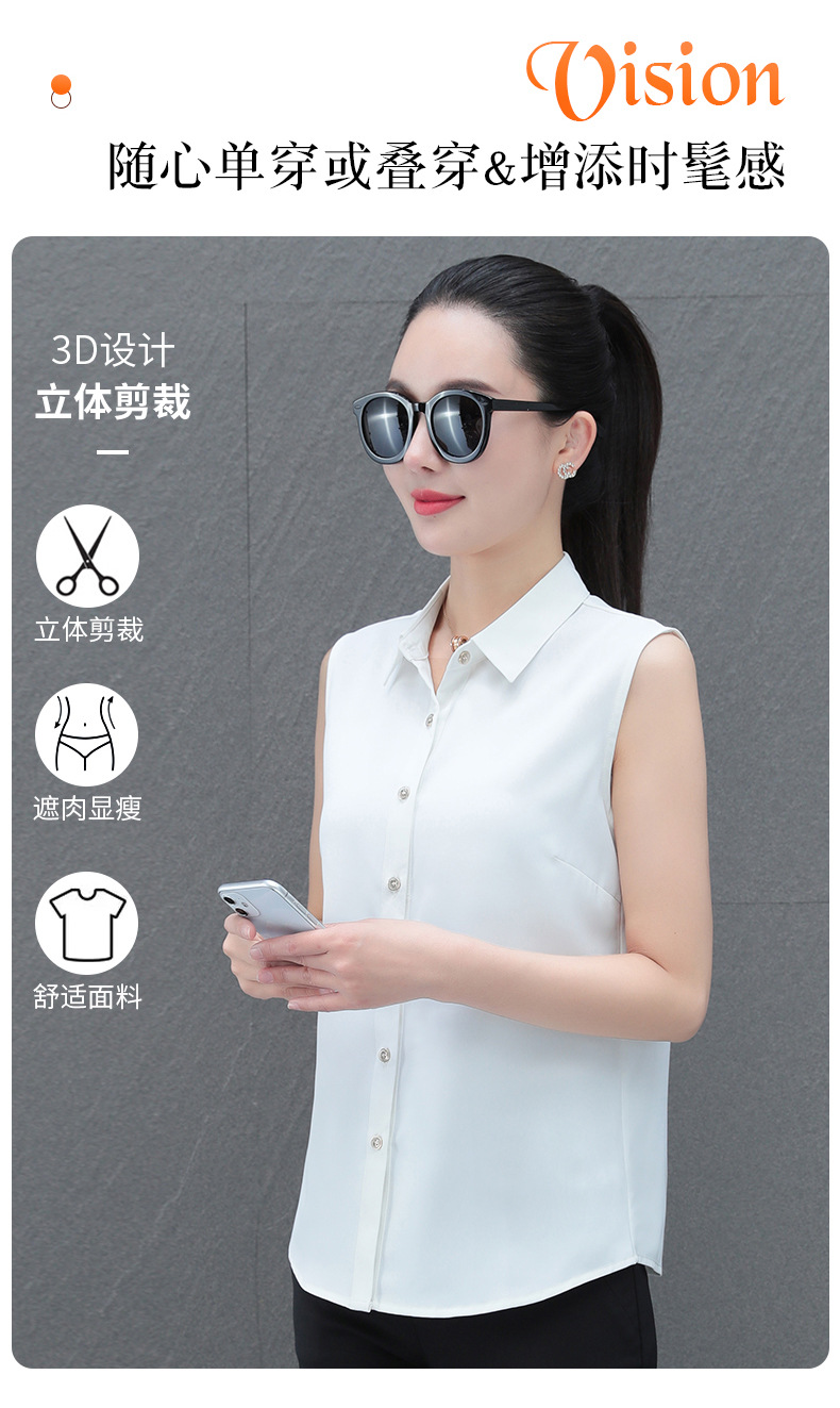 여성용 한국식 쉬폰 셔츠 탑, 여성용 다용도 전문 흰색 셔츠, 라펠 이너 레이어드 셔츠, 조끼, 민소매 셔츠스토어 가기