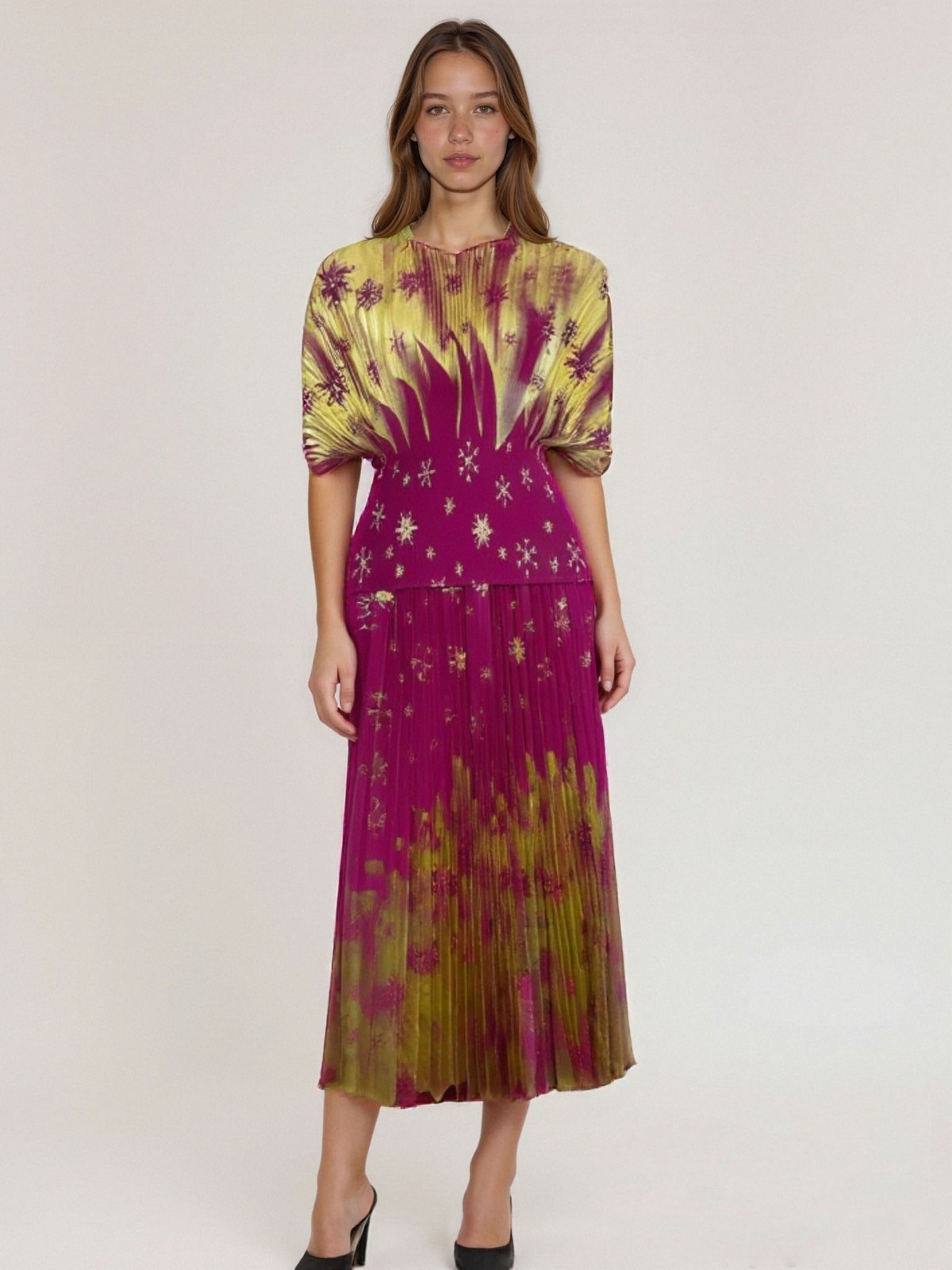 공장 직접 공급 2025 새로운 여름 스타일 아마존 롱 스커트 기질 슈트 주름 프린트 스커트 얇은 투피스 세트