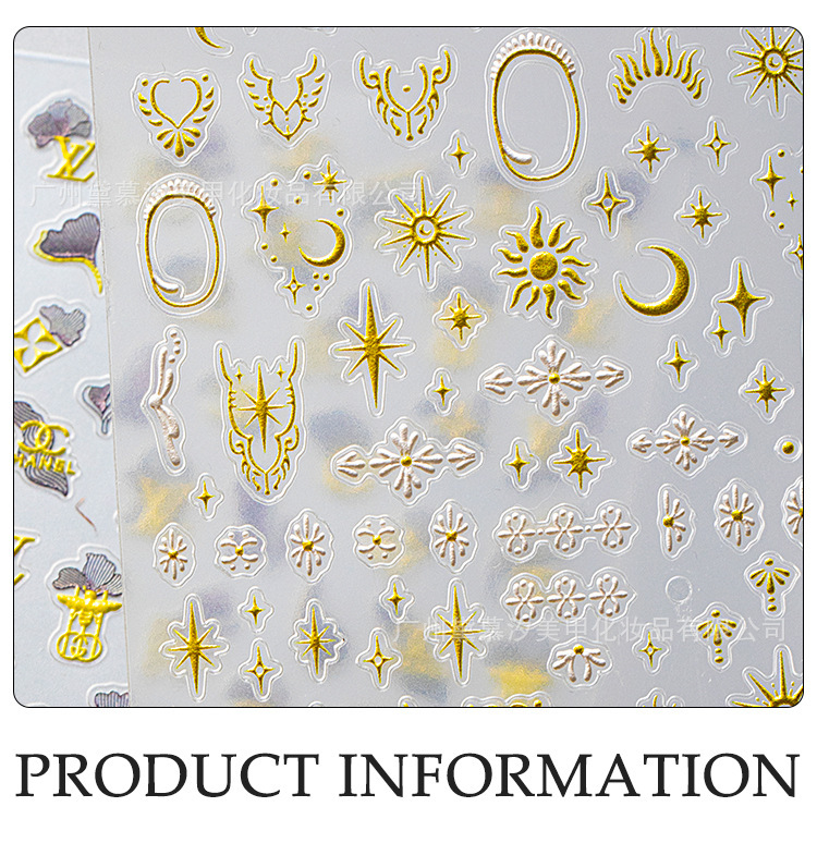 5D 네일 아트 스티커 스타 블링 문 스타 입체 릴리프 스티커 중공 사랑 유행 브랜드 네개 별 골드 영어 단어 스티커