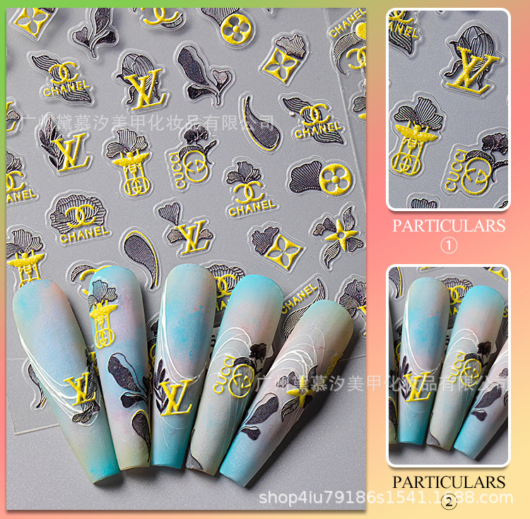 5D 네일 아트 스티커 스타 블링 문 스타 입체 릴리프 스티커 중공 사랑 유행 브랜드 네개 별 골드 영어 단어 스티커스토어 가기