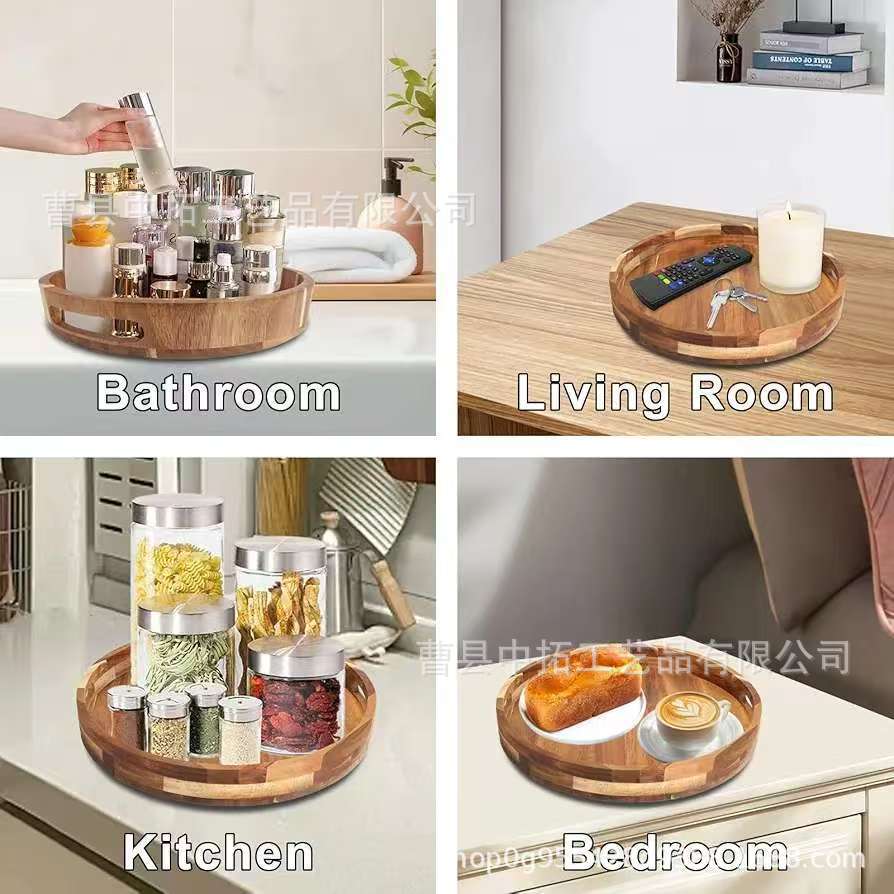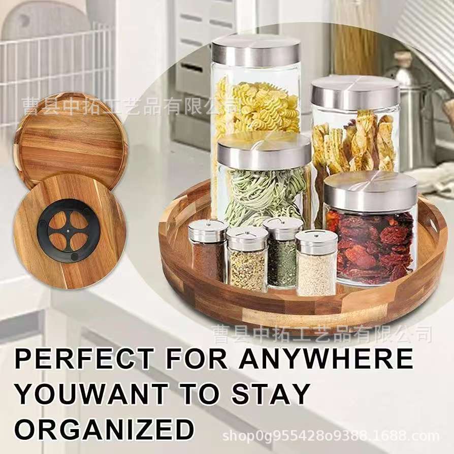 나무 회전식 원형 보관함 주방 조미료 보관함 향신료 병 보관함 단단한 나무 조리 식품 트레이