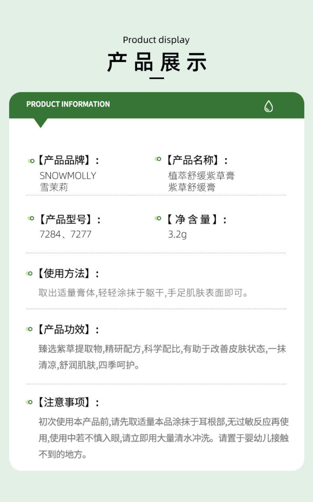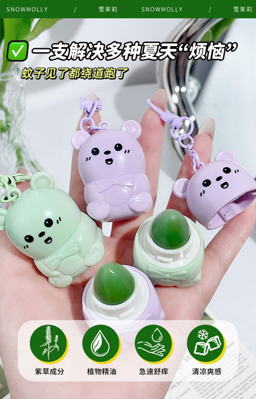 스노우 재스민 귀여운 곰 진정 시카 오 크림 시원하고 보습 멀티 효과 쑥 크림 딩 제거 패키지 휴대용 여름 필수