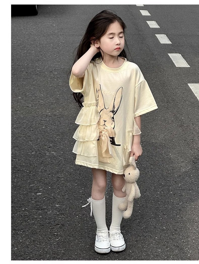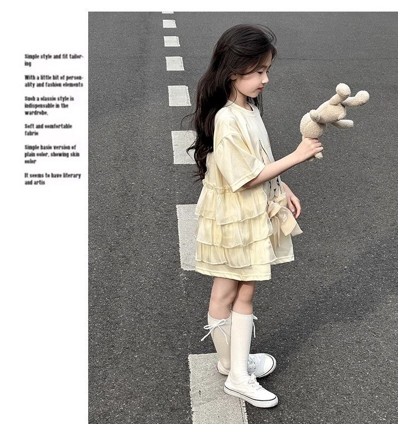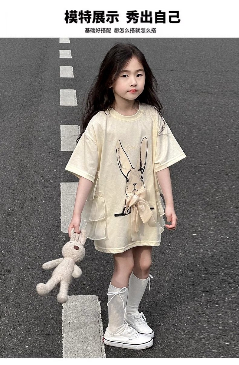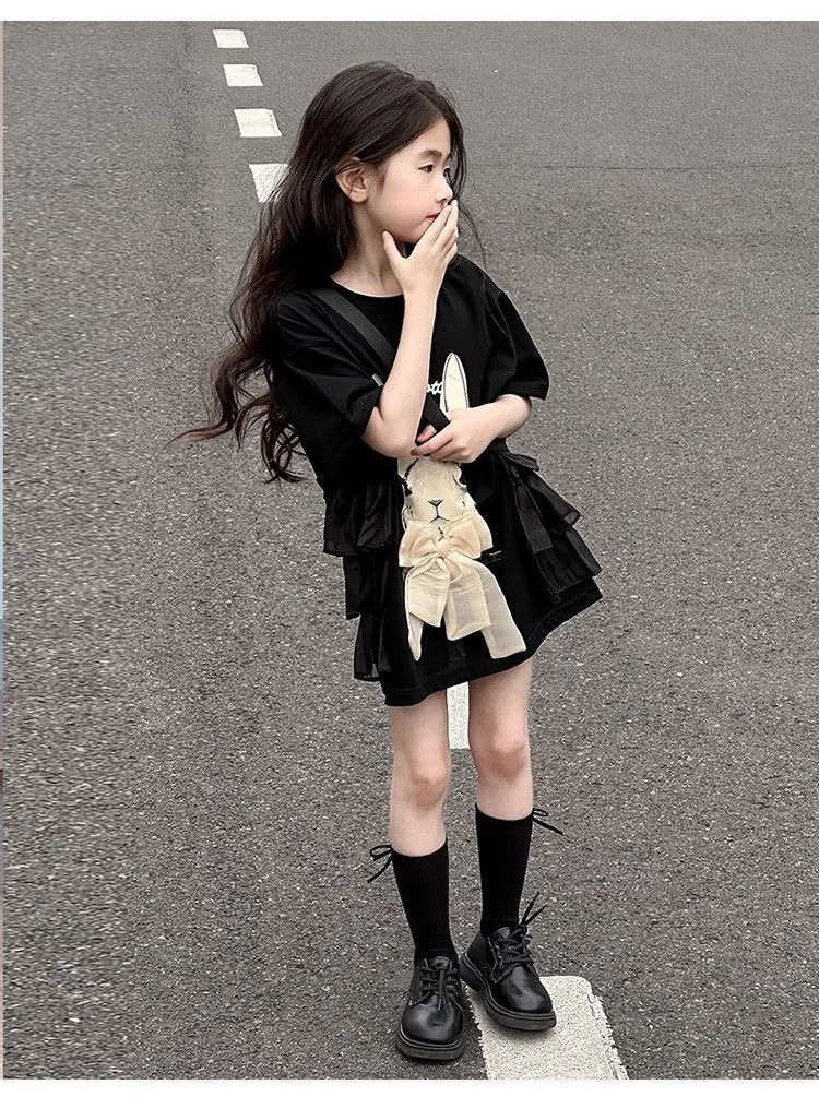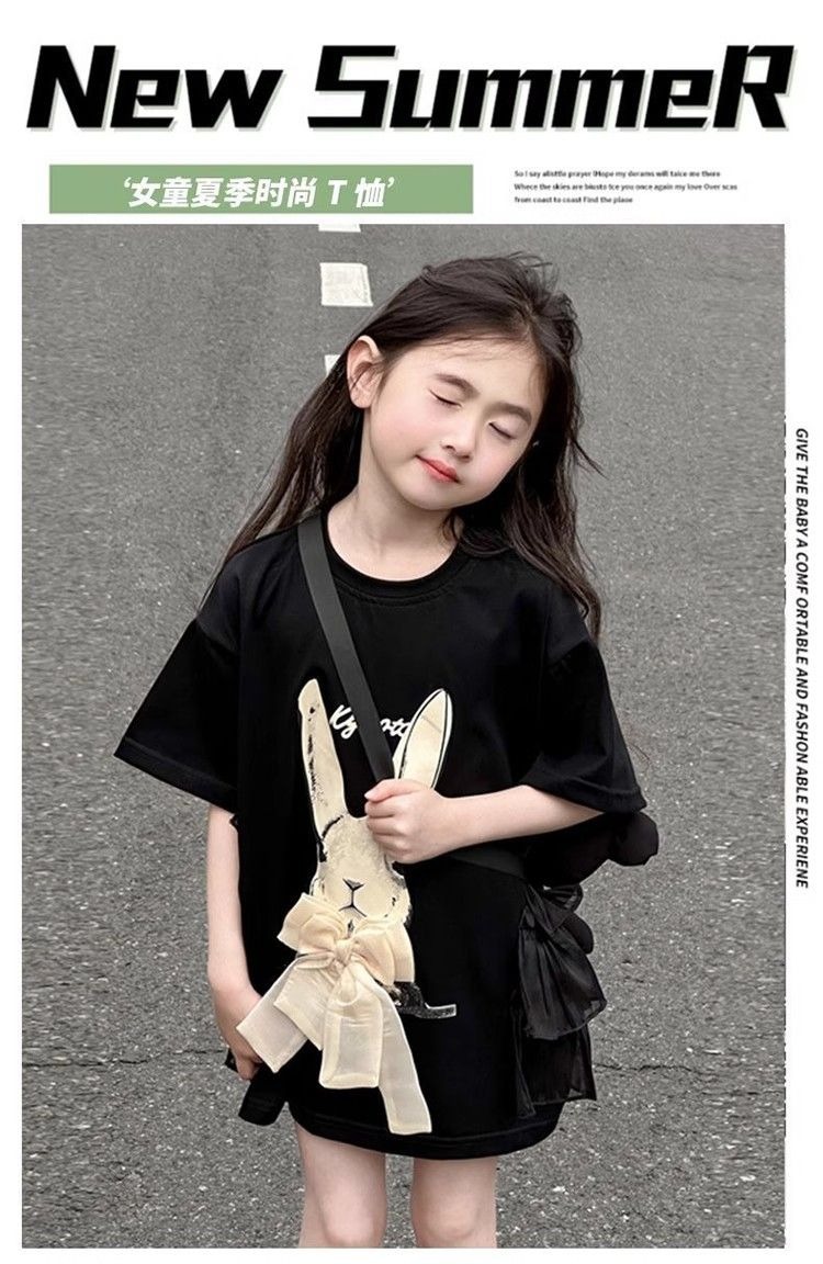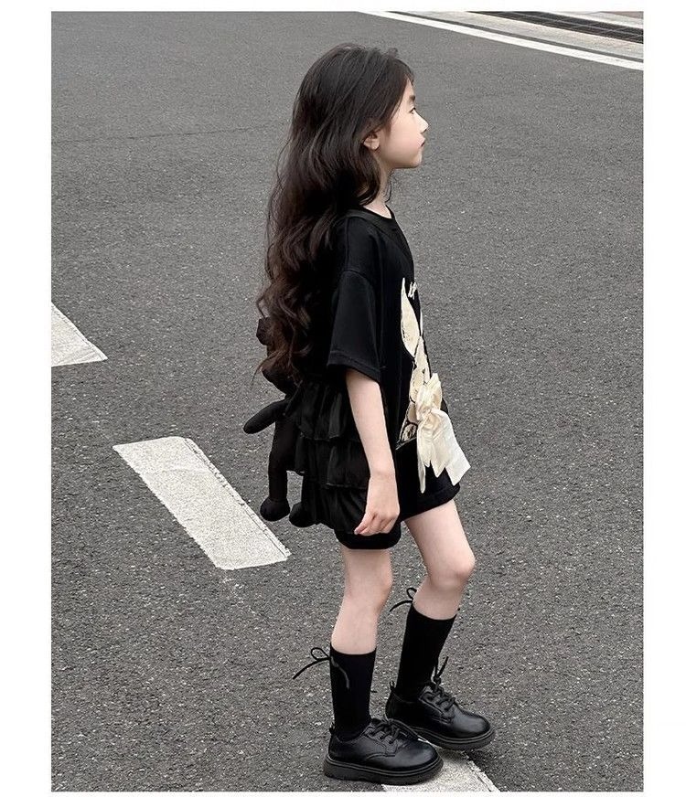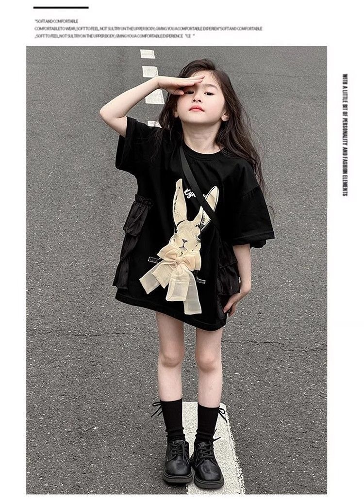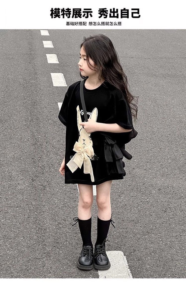 여자 반소매 티셔츠 치마 만화 패션 중 · 빅 어린이 느슨한 중장 어린이 여름 올매치 반소매 탑 T