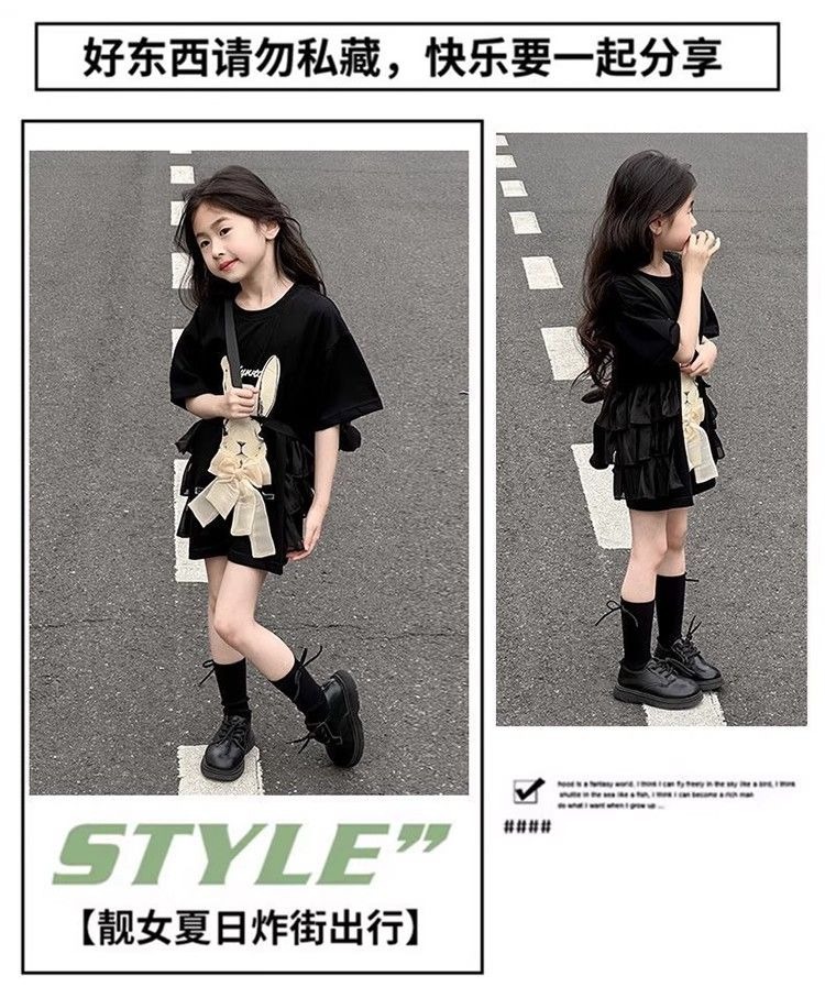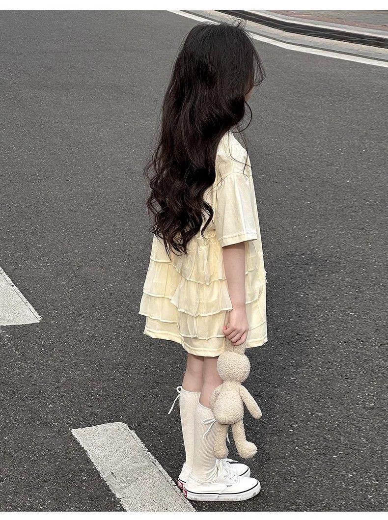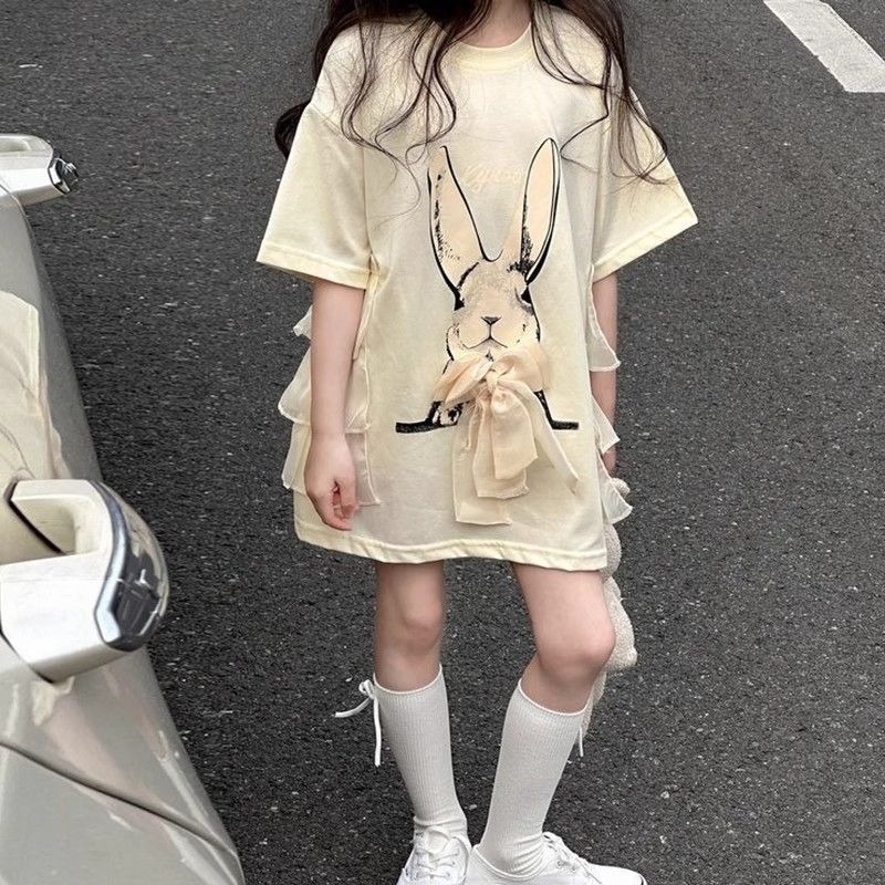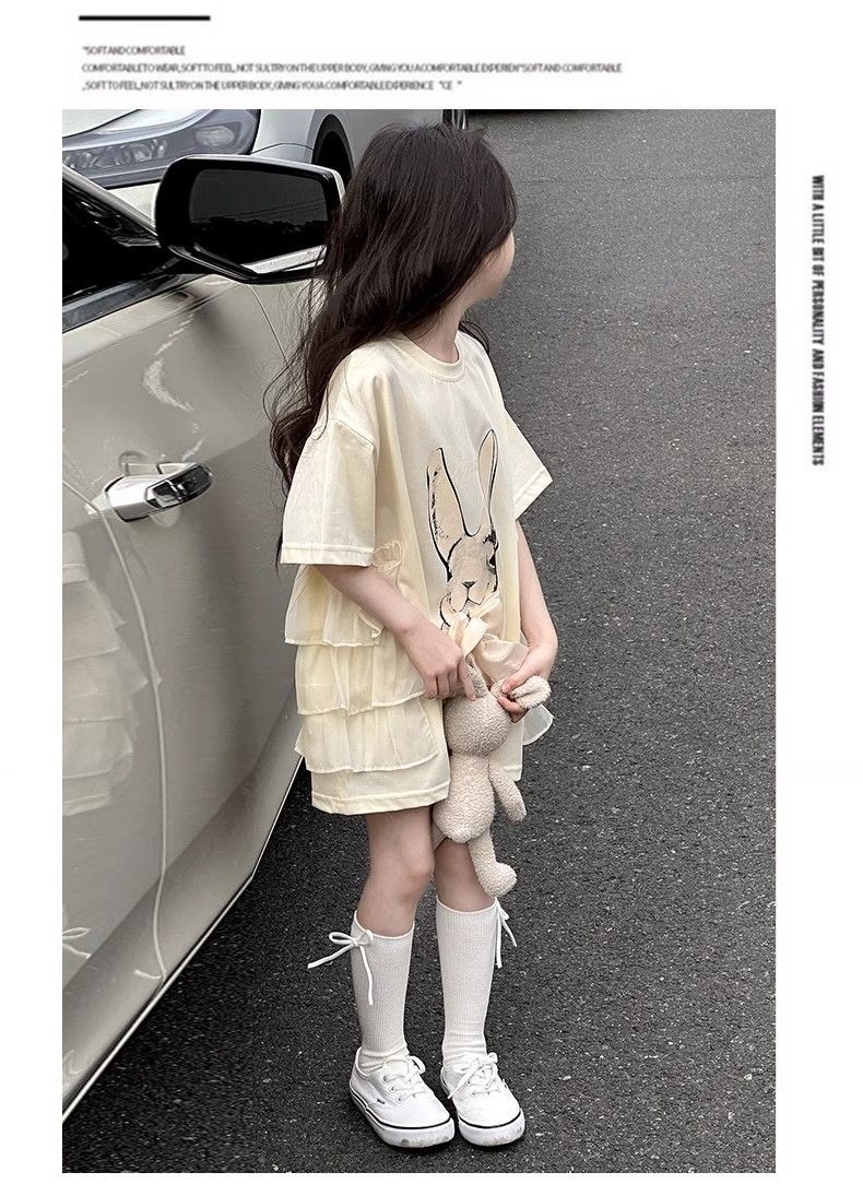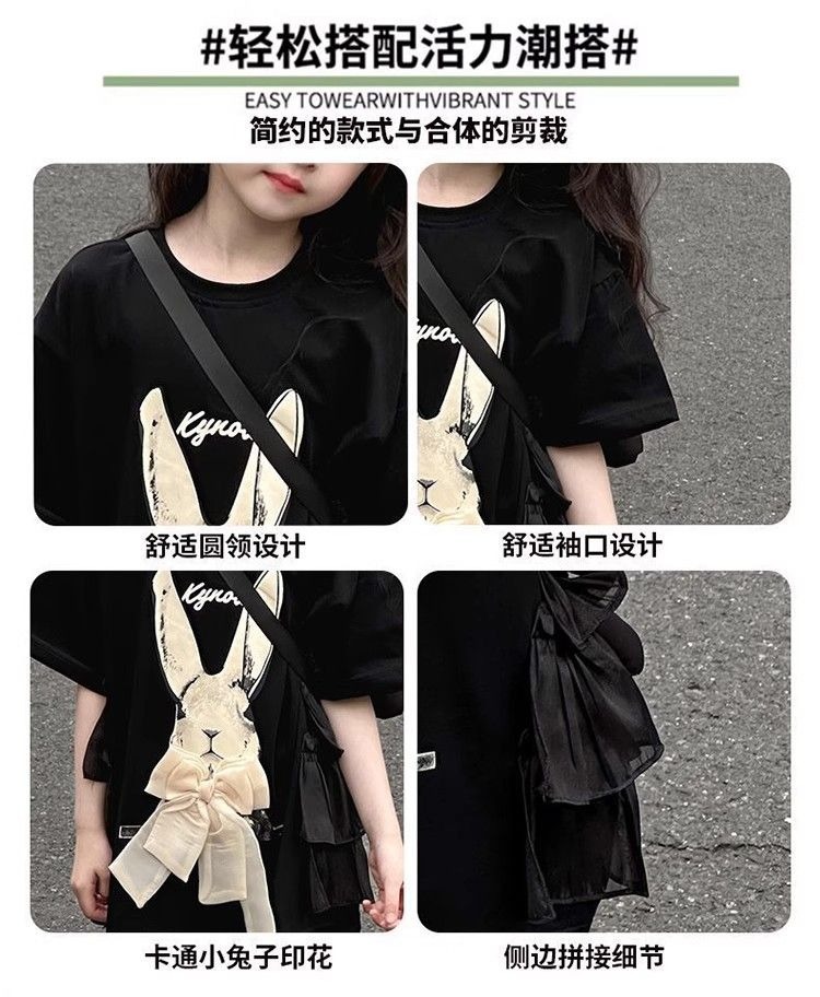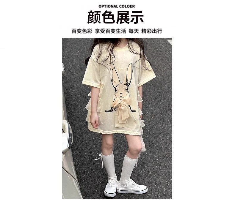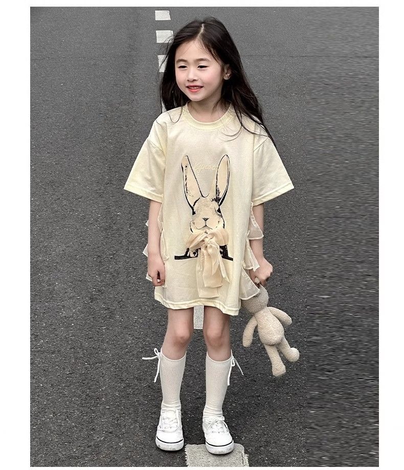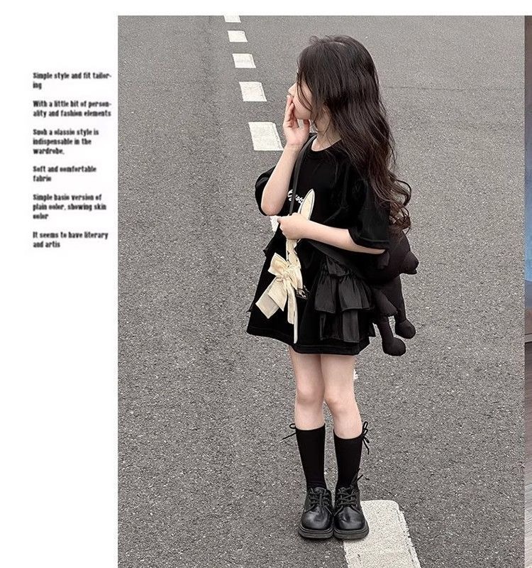 여자 반소매 티셔츠 치마 만화 패션 중 · 빅 어린이 느슨한 중장 어린이 여름 올매치 반소매 탑 T