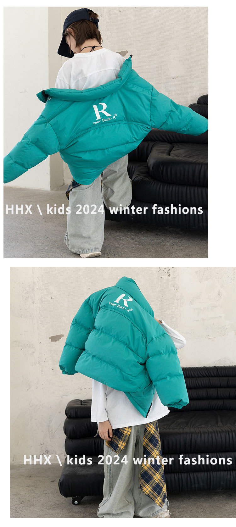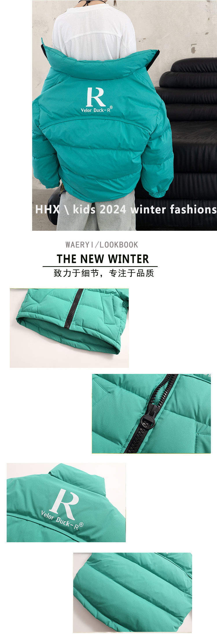 백레터 화이트 덕다운 재킷 겨울 디자인 남아용 두꺼운 다운 재킷 트렌디하고 멋진 오버사이즈 지퍼 루즈