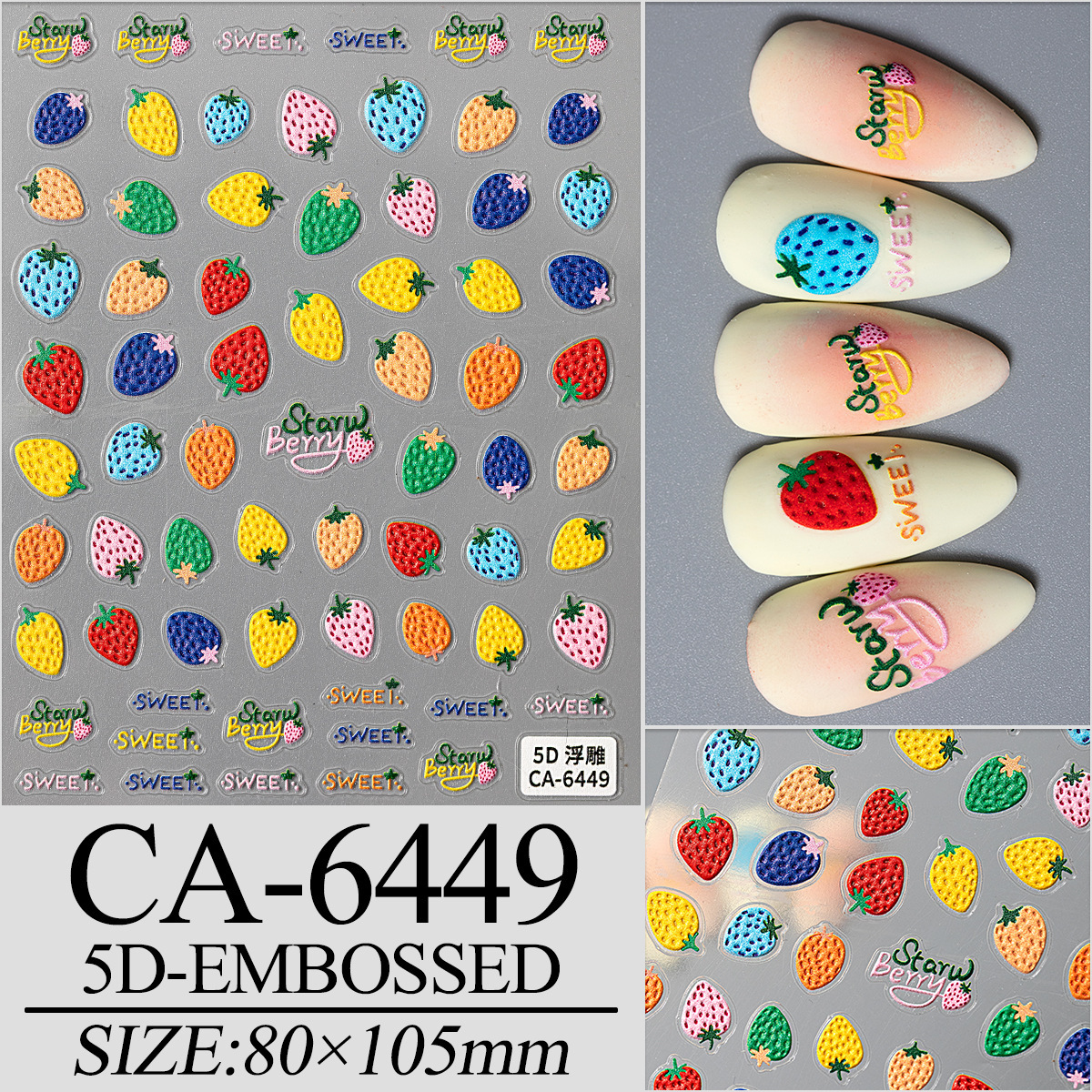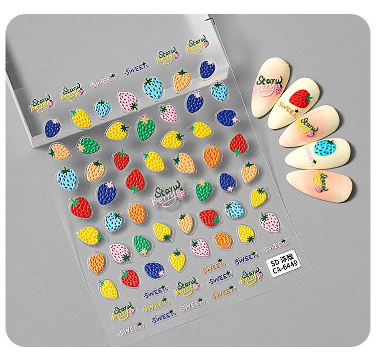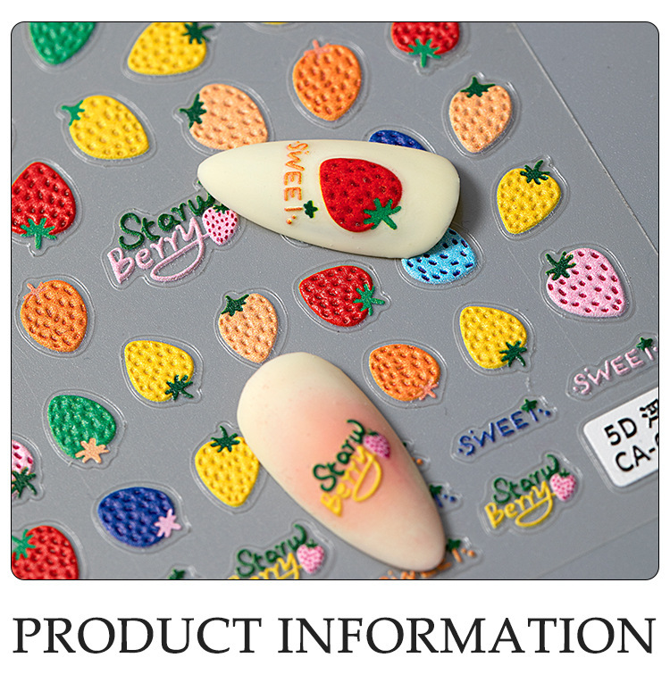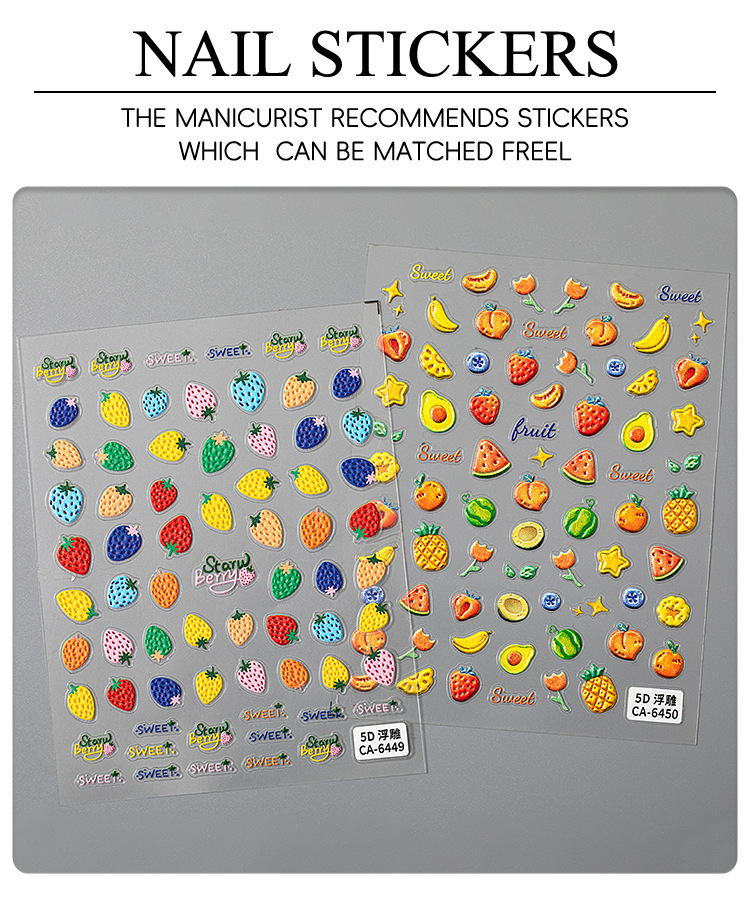 여름 과일 다채로운 딸기 수박 파인애플 바나나 5D 입체 양각 접착제 방수 네일 아트 스티커 쥬얼리스토어 가기