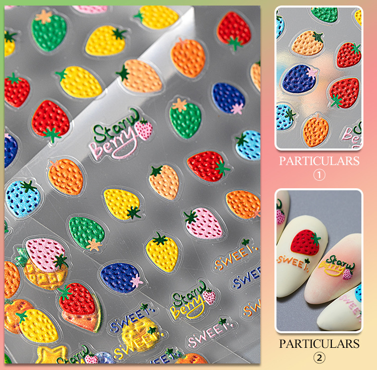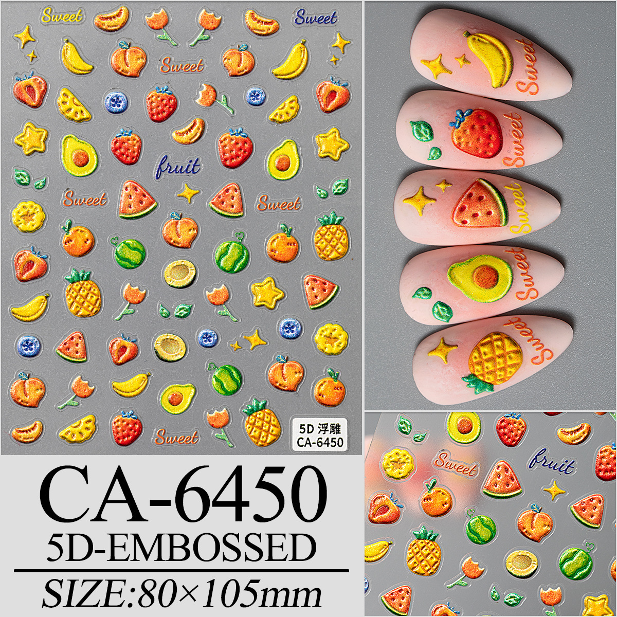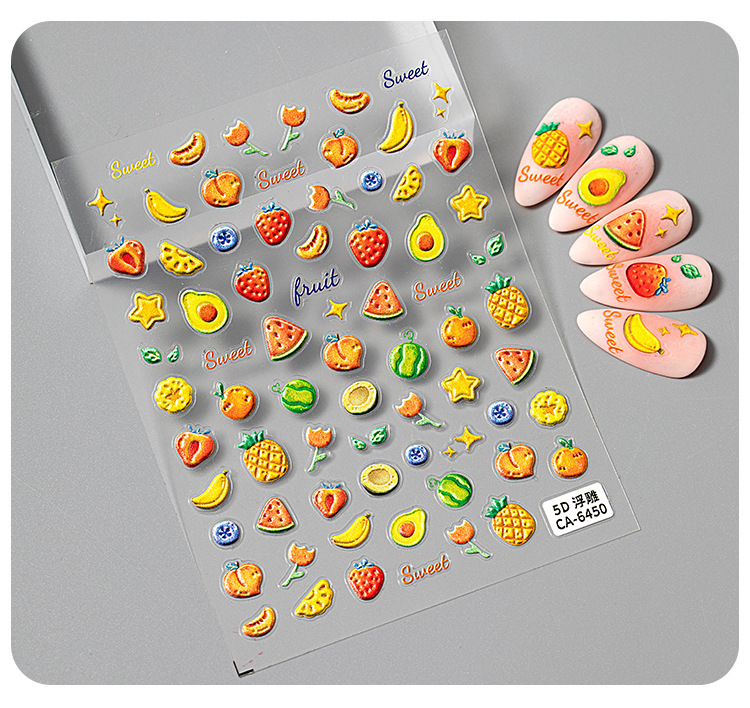 여름 과일 다채로운 딸기 수박 파인애플 바나나 5D 입체 양각 접착제 방수 네일 아트 스티커 쥬얼리