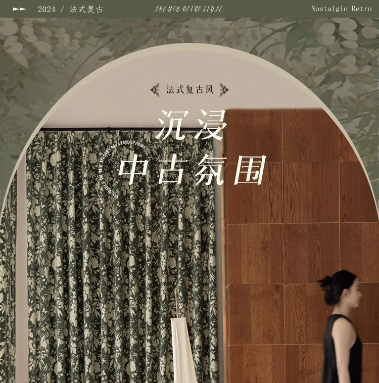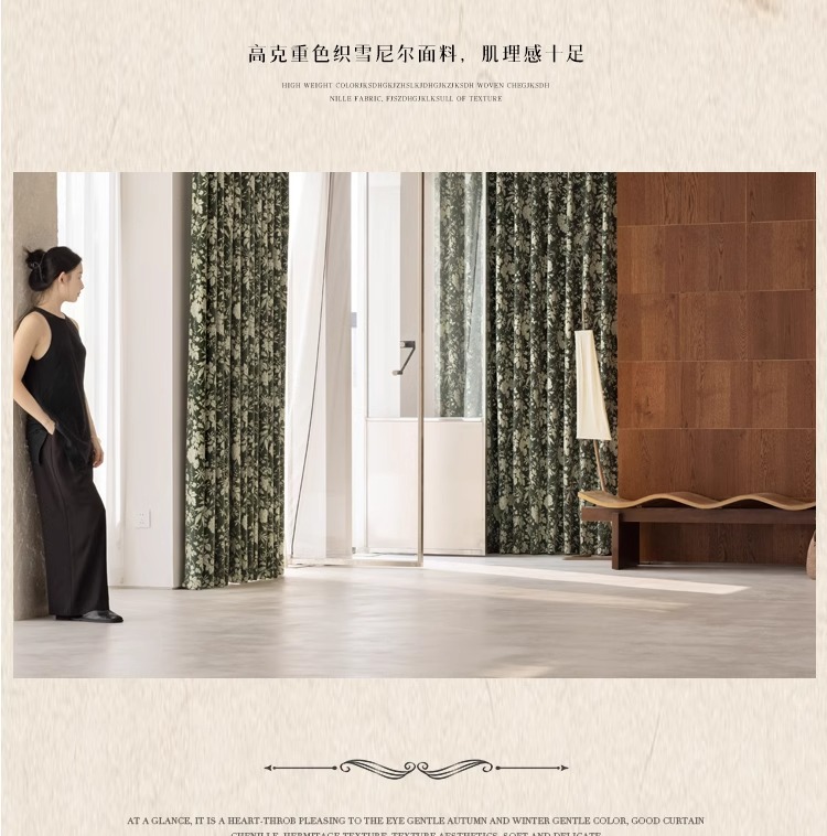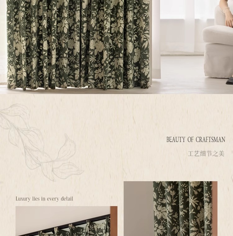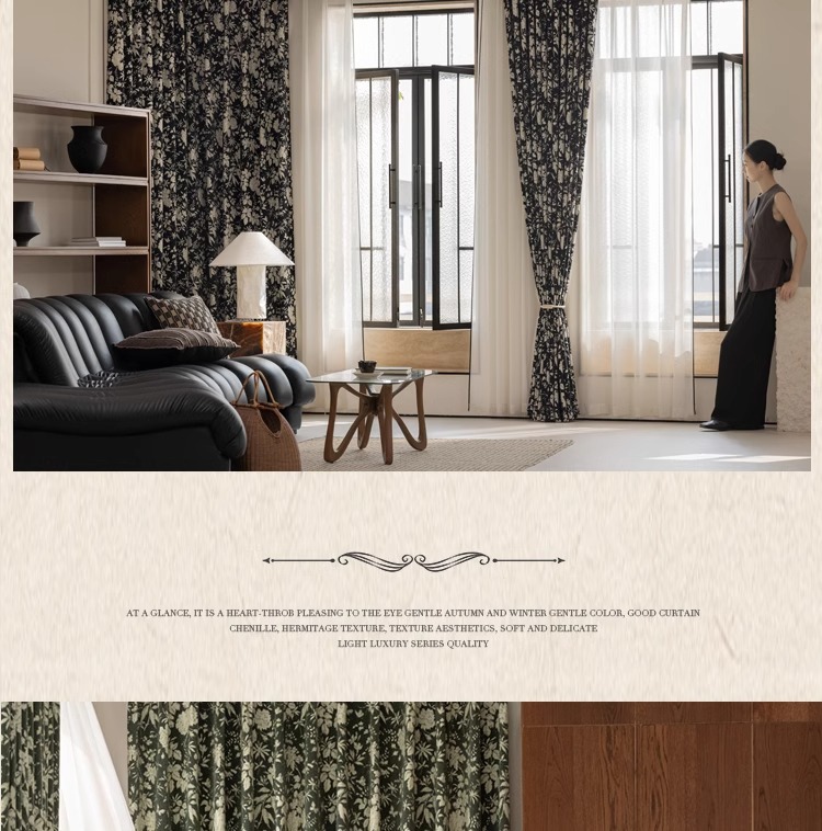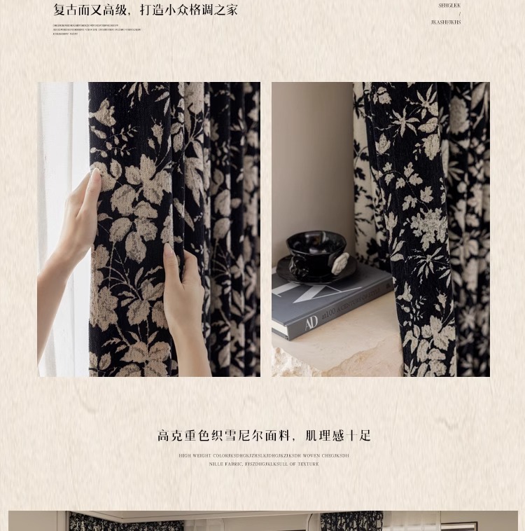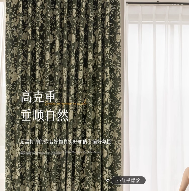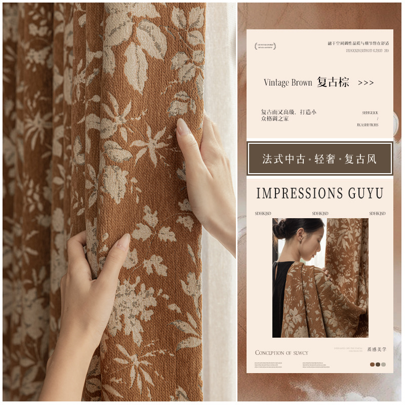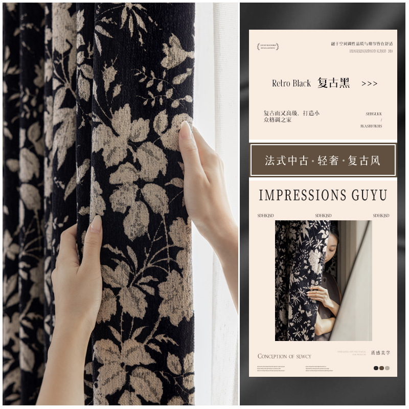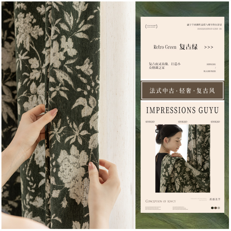 Lanye 프랑스 복고풍 완전 차광 셔닐 커튼 미국 자카드 거실 침실 고급 중세 스타일 커튼스토어 가기