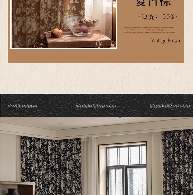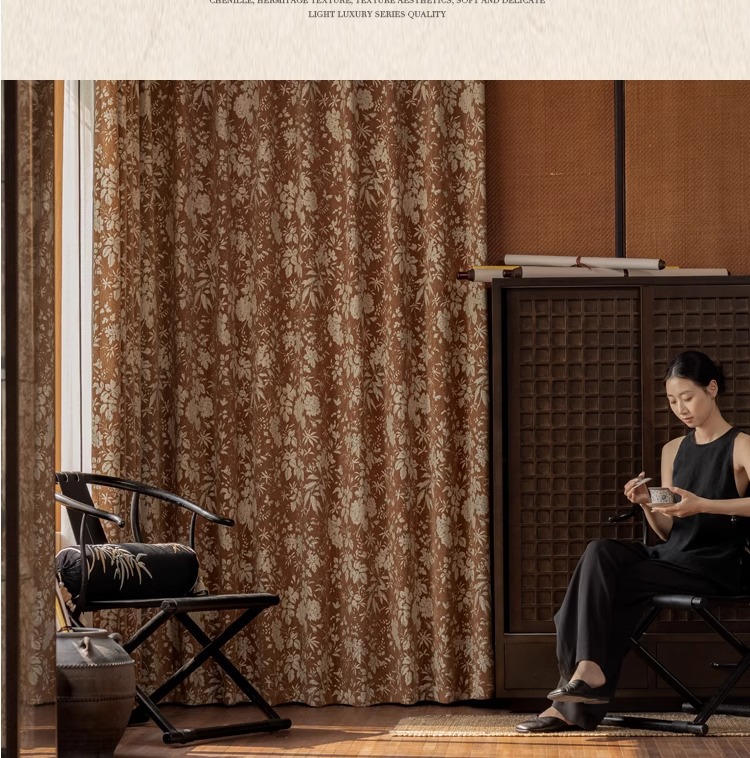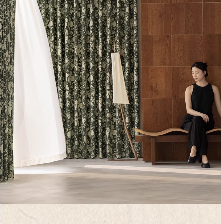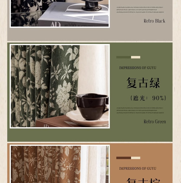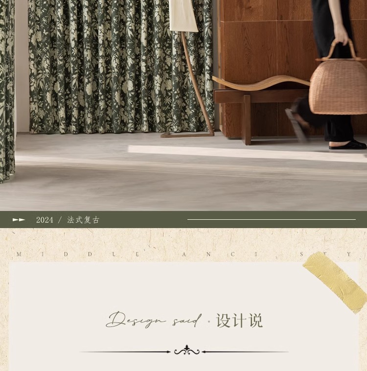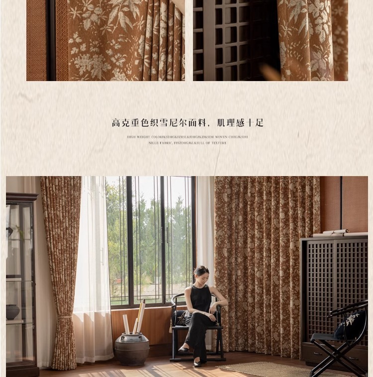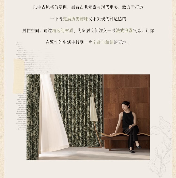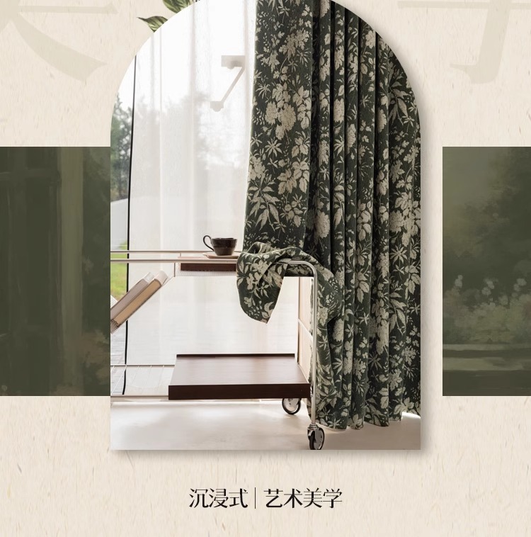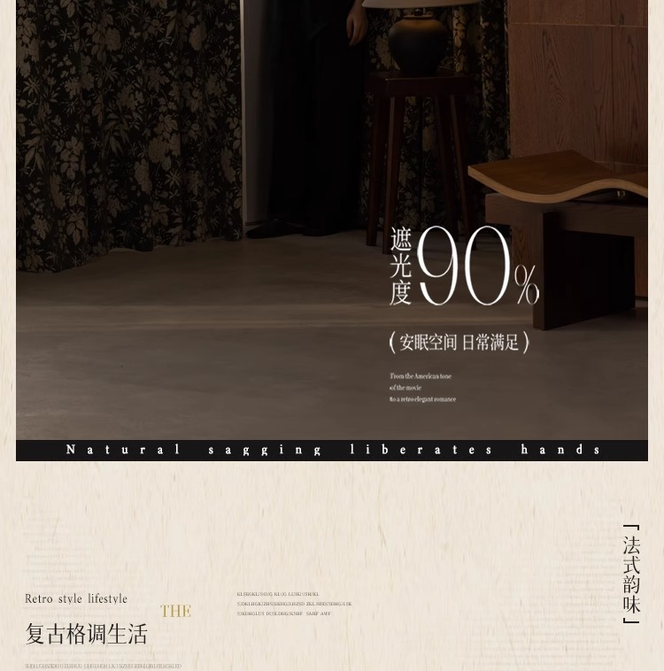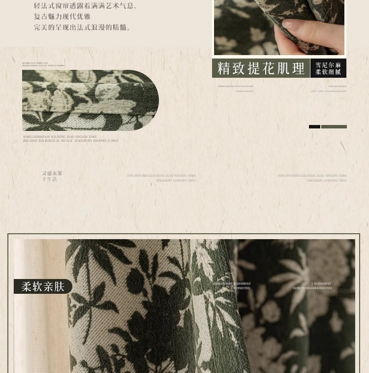 Lanye 프랑스 복고풍 완전 차광 셔닐 커튼 미국 자카드 거실 침실 고급 중세 스타일 커튼스토어 가기