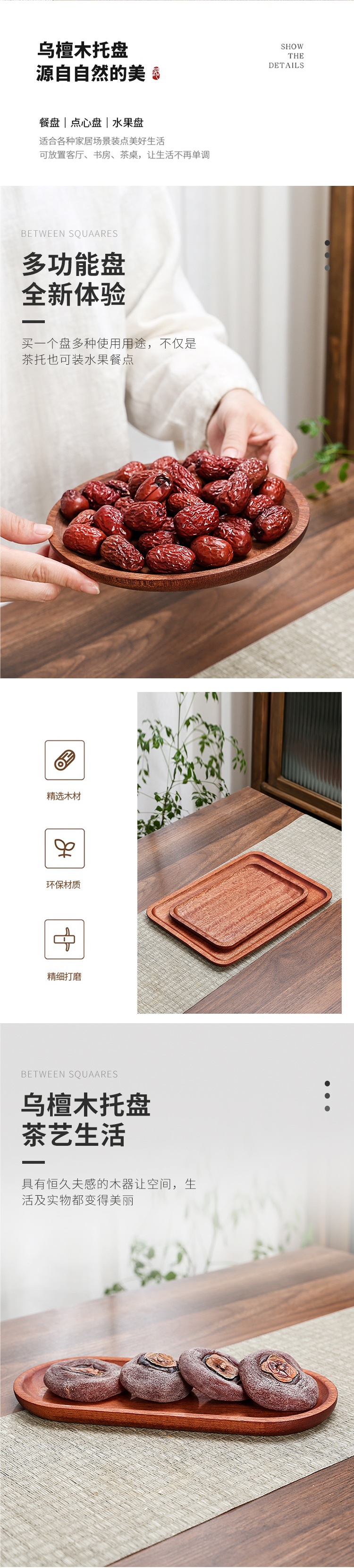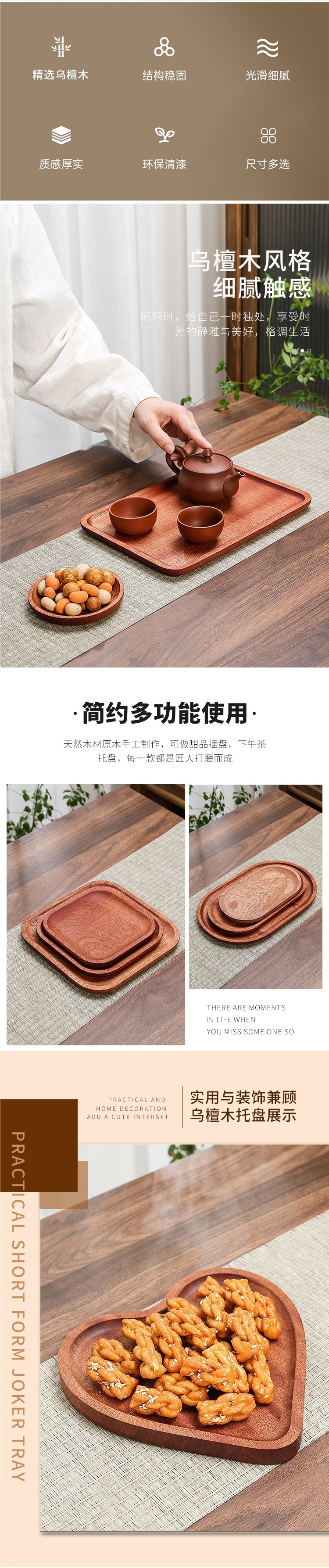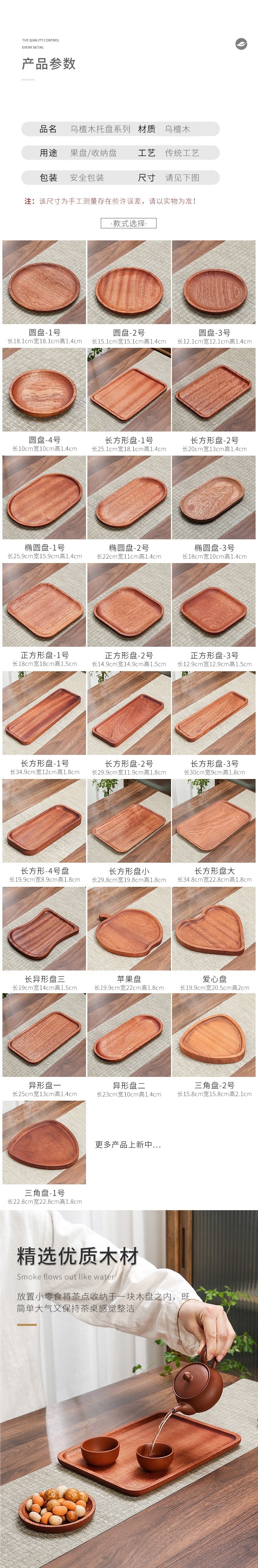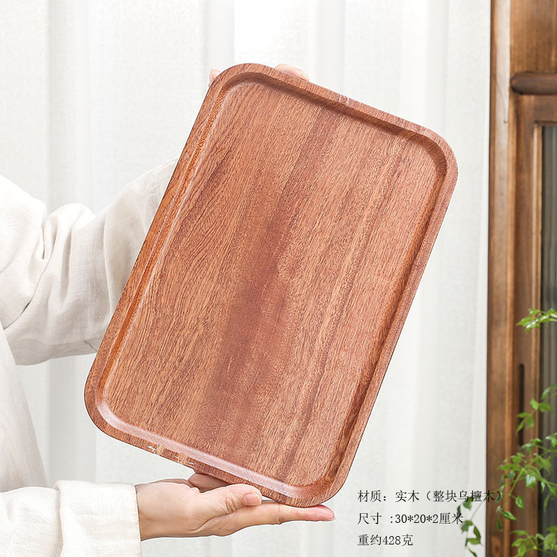 흑단 트레이 단단한 나무 직사각형 가정용 식기 차 컵 접시 타원형 접시 서양 음식 원형 접시 건조 거품스토어 가기