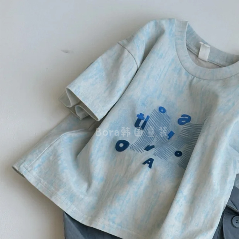 어린이 세트 소년 여름 2025 새로운 러피 잘 생긴 바람 반팔 티셔츠 검은 바지 여성 아기 투피스 조수 1
