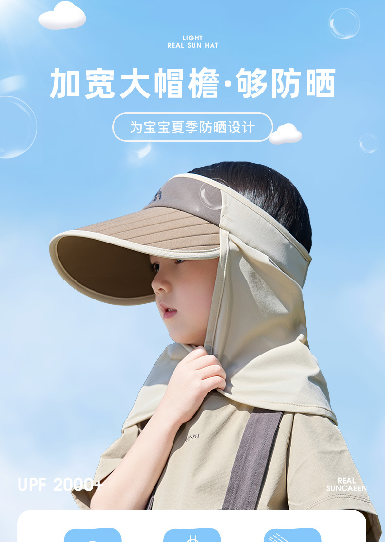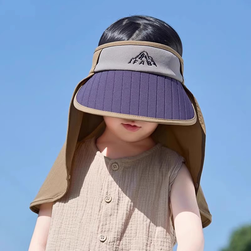어린이 태양 보호 모자 2025 봄과 여름 얇은 소년과 소녀 태양 보호 목도리 안티 UV 빈 탑 대형 챙 태양 모자스토어 가기