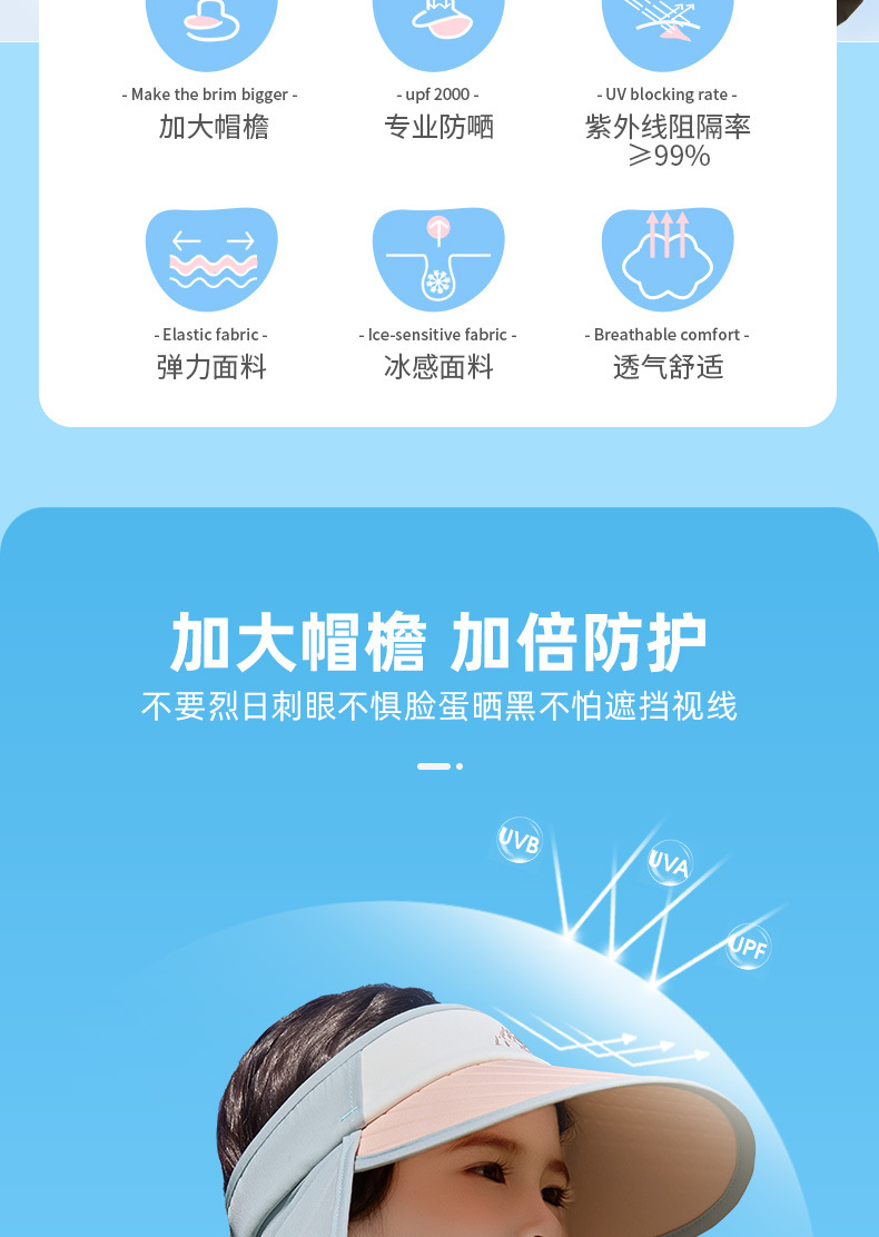 어린이 태양 보호 모자 2025 봄과 여름 얇은 소년과 소녀 태양 보호 목도리 안티 UV 빈 탑 대형 챙 태양 모자