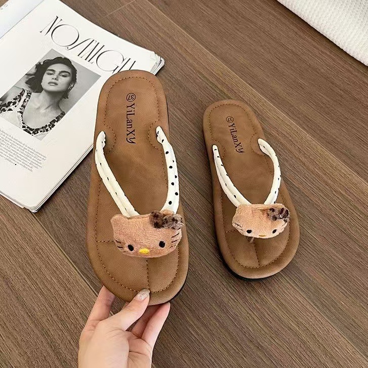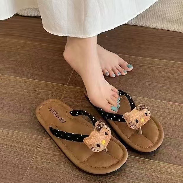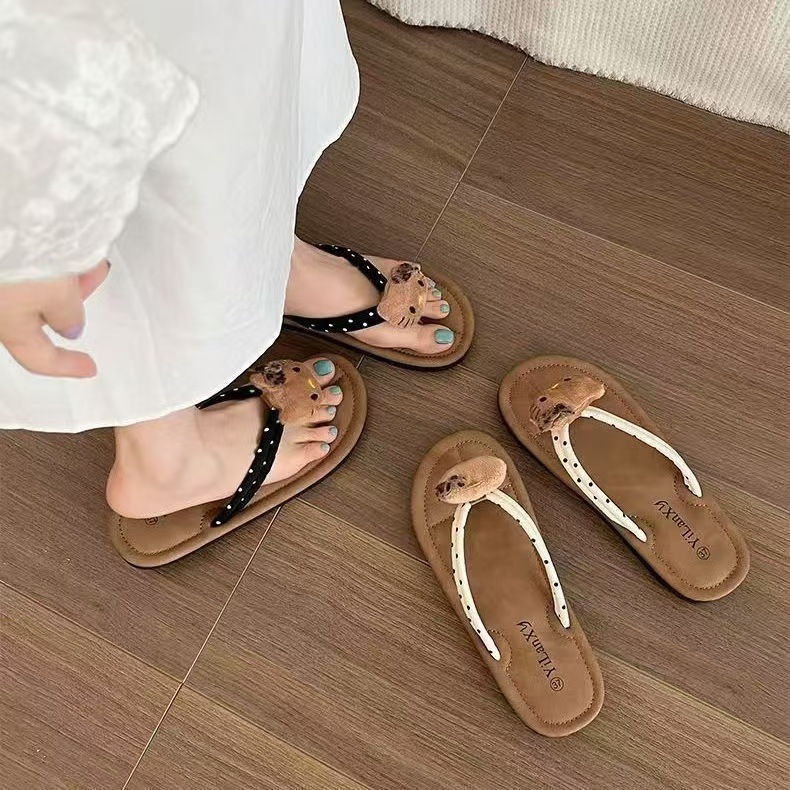 만화 표범 무늬 고양이 겉옷 캐주얼 무음 실내 및 실외 경량 플랫 바닥 해변 해변 여성용 다용도 새 스타일 플립 플롭