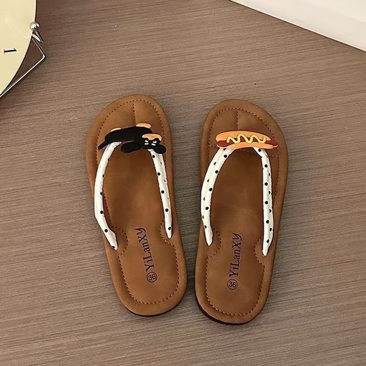 한국식 캐주얼 인터넷, 여자를위한 닥스 훈트 개 플립 플롭스 기념 착용 방지 통근 매일 콜로테이션 미끄럼 미끄럼 올 매치 아우터 슬리퍼스토어 가기