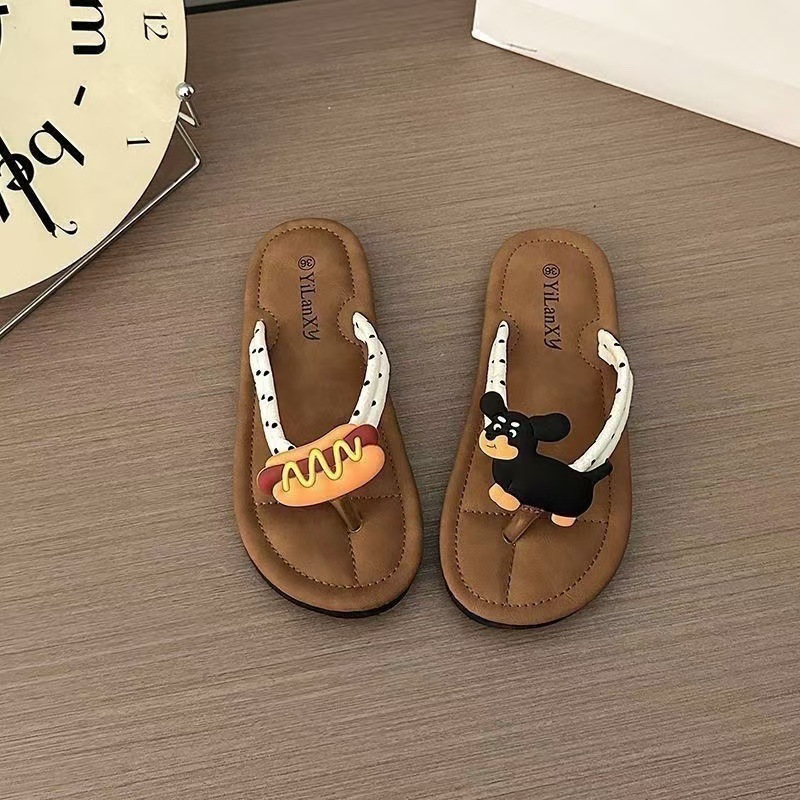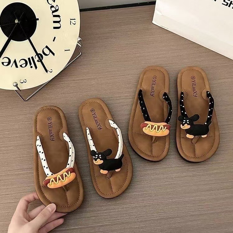 한국식 캐주얼 인터넷, 여자를위한 닥스 훈트 개 플립 플롭스 기념 착용 방지 통근 매일 콜로테이션 미끄럼 미끄럼 올 매치 아우터 슬리퍼