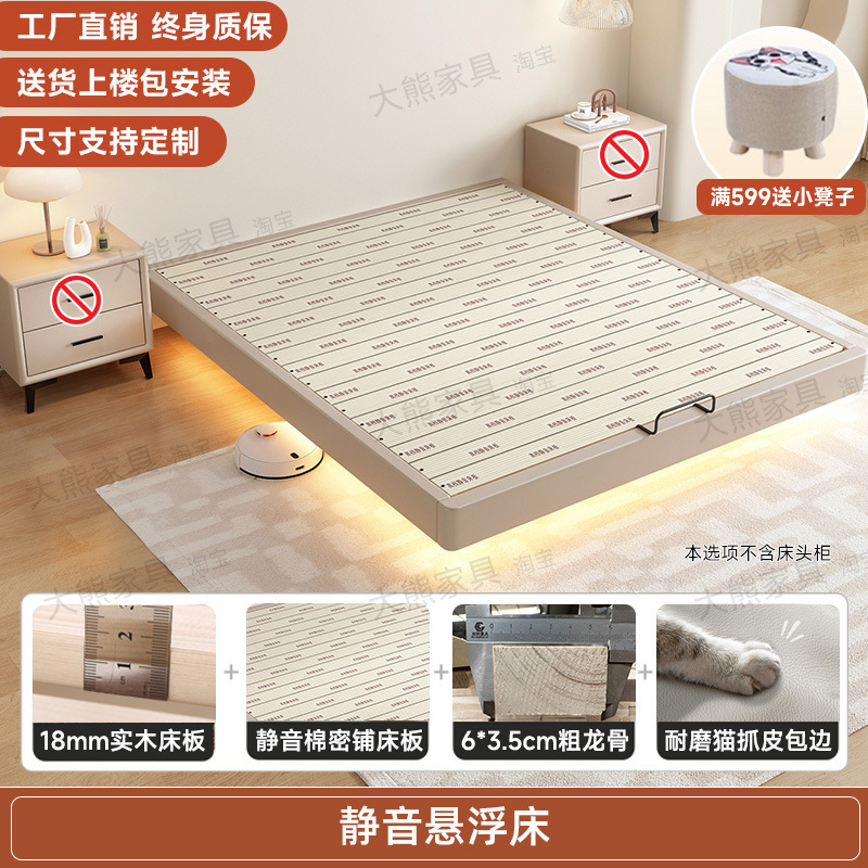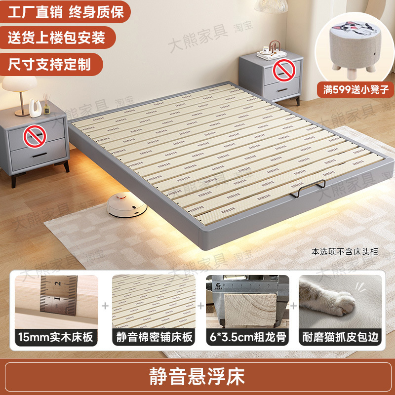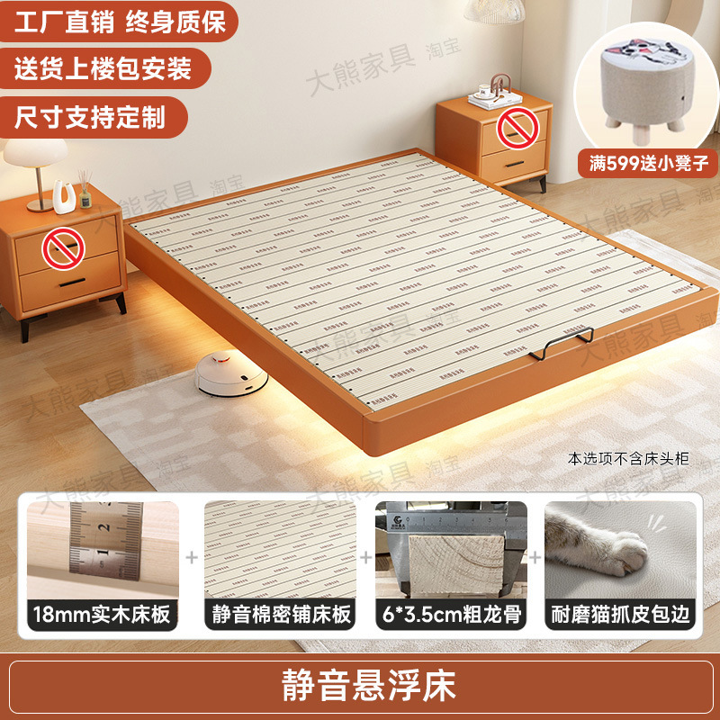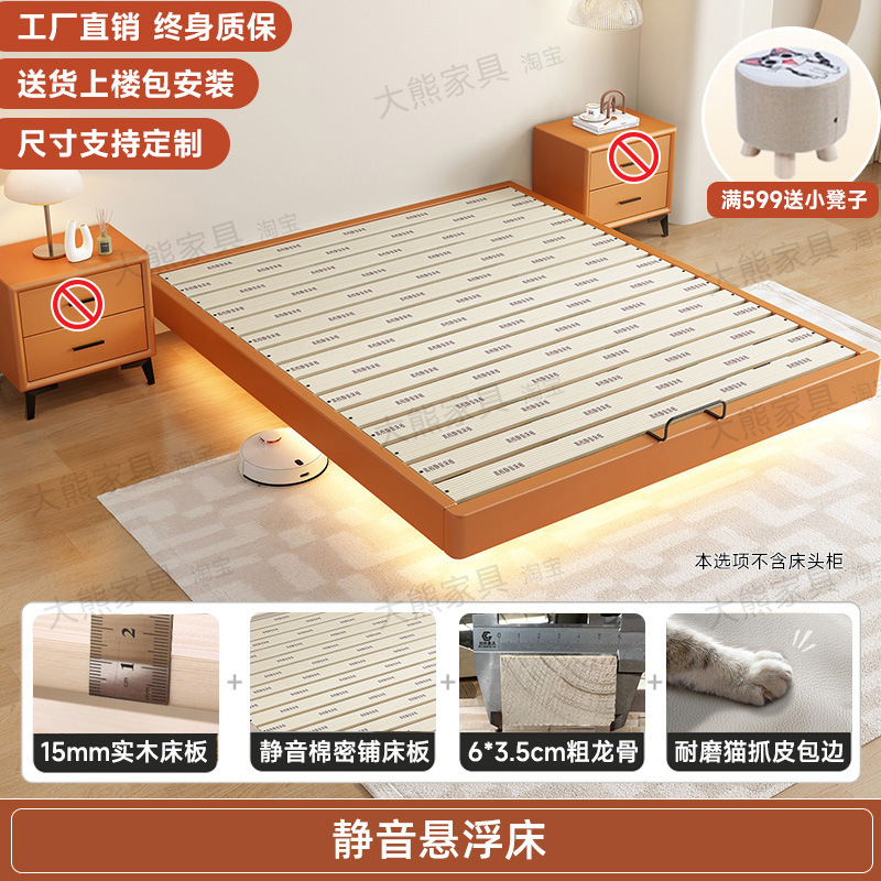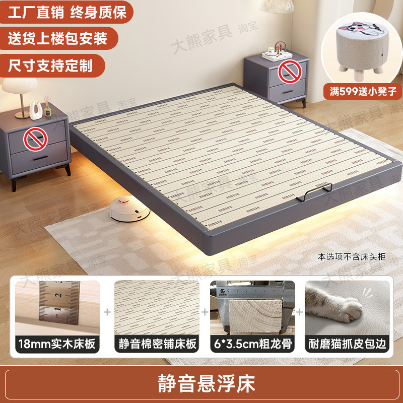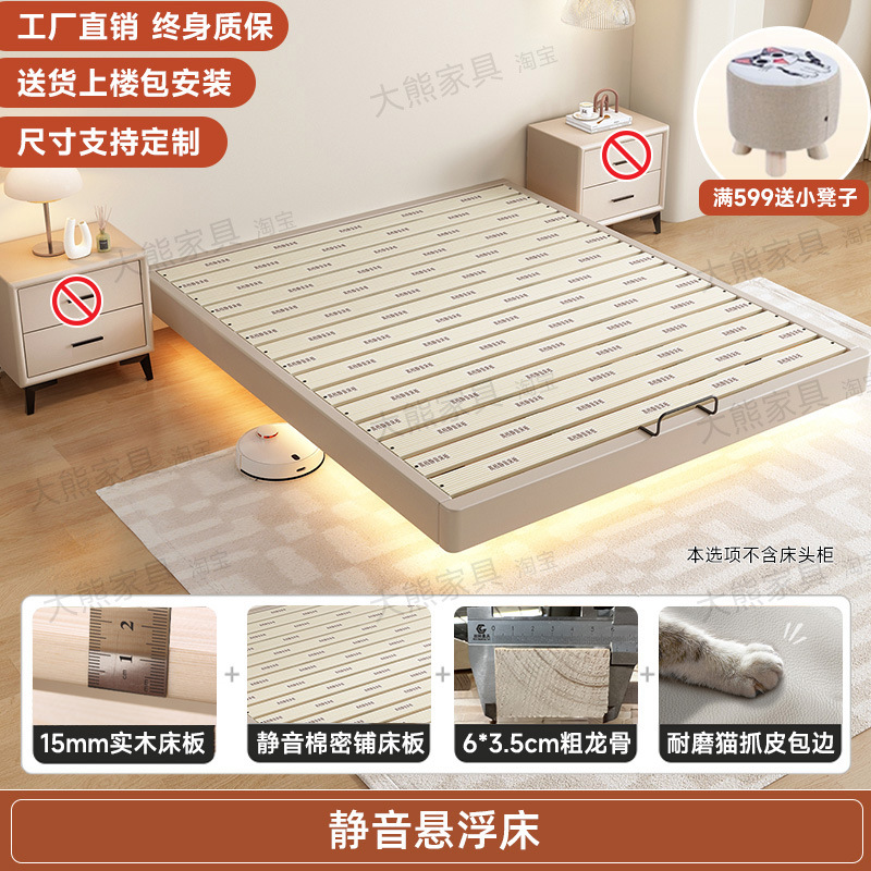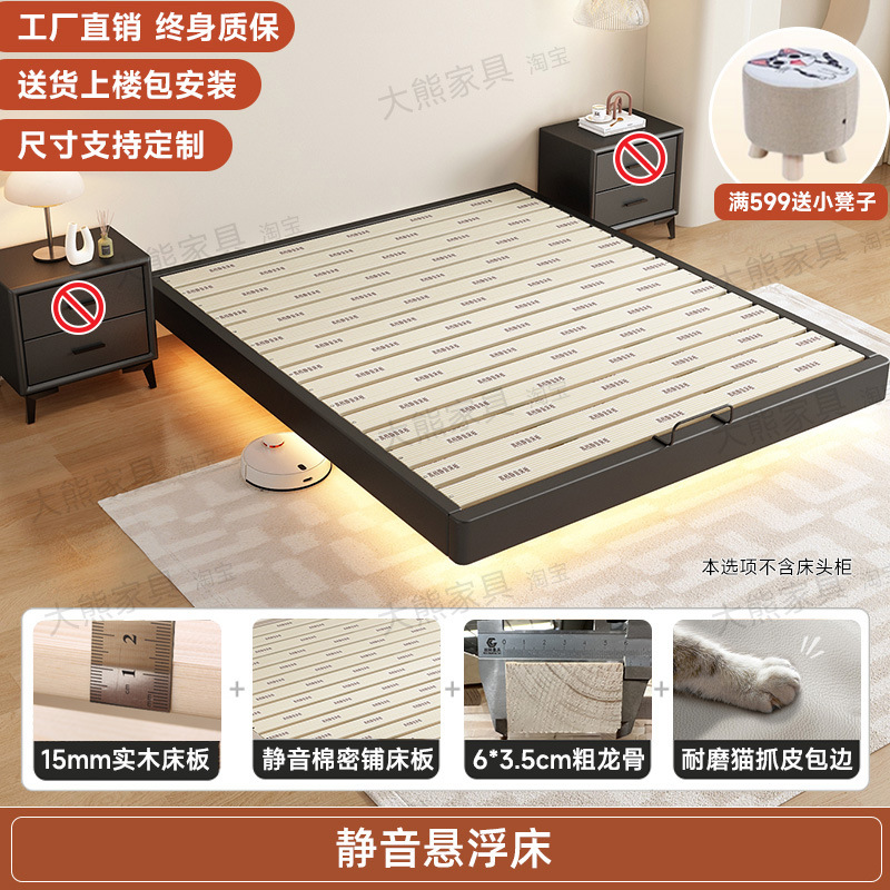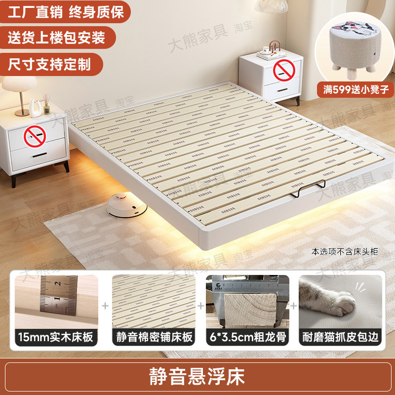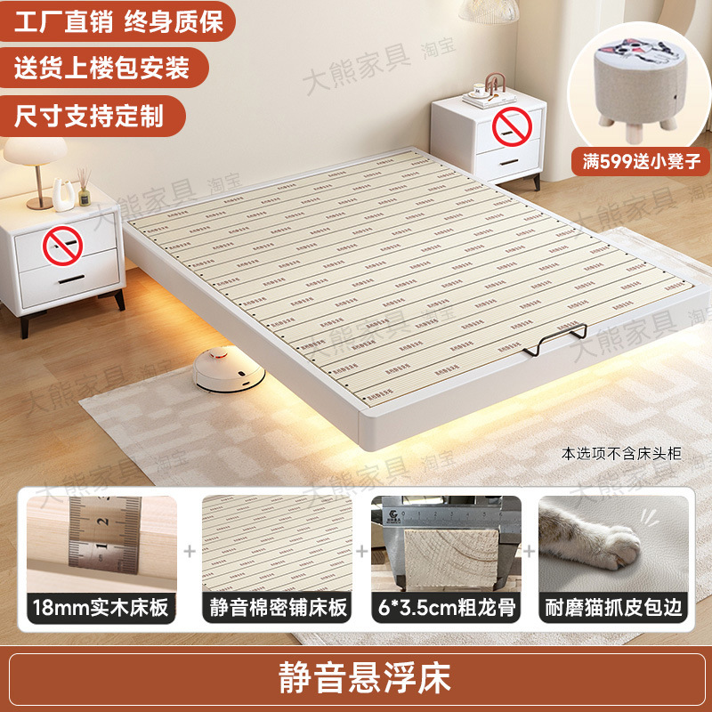 침대가 없는 공중부양 침대, 원목 다다미, 소형 가정용 침대 프레임 1.8m 싱글 및 더블 낮은 침대 공중부양 T&스토어 가기