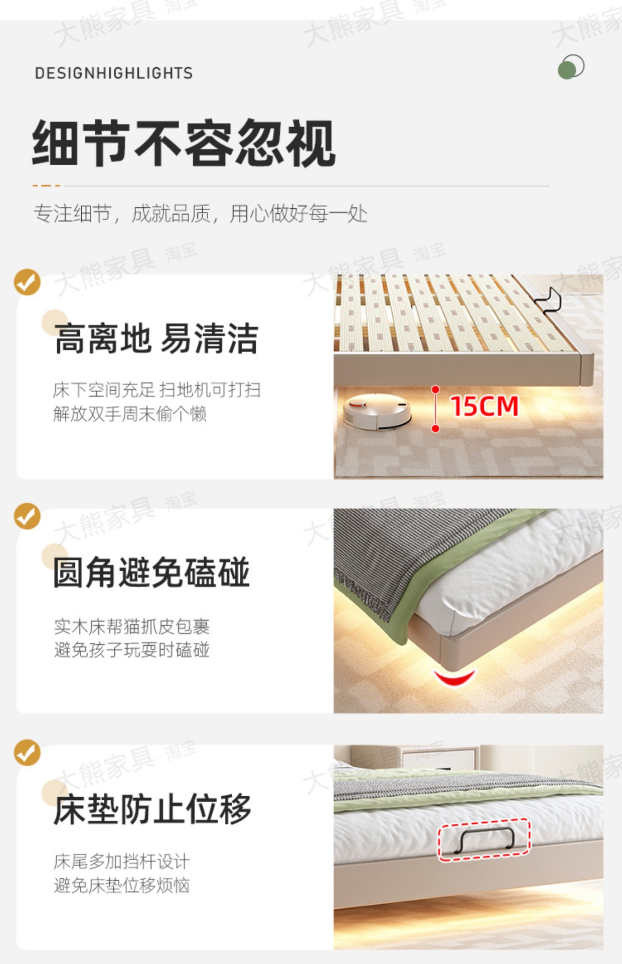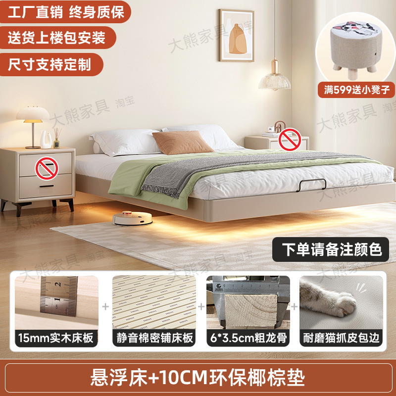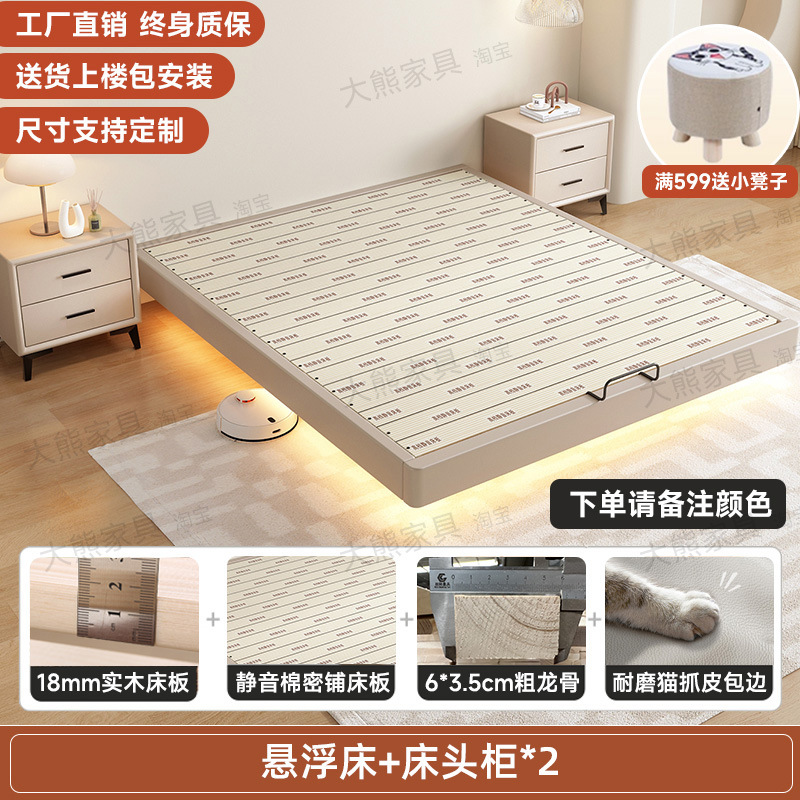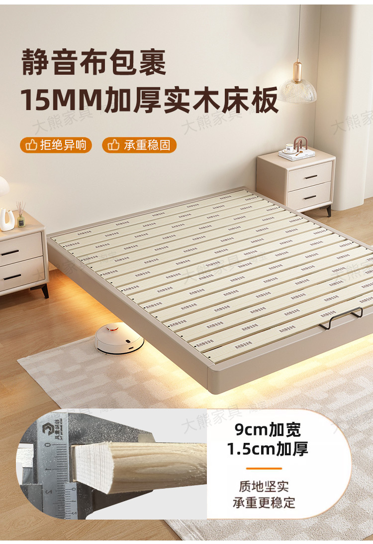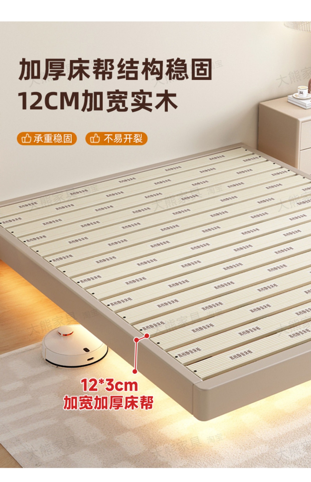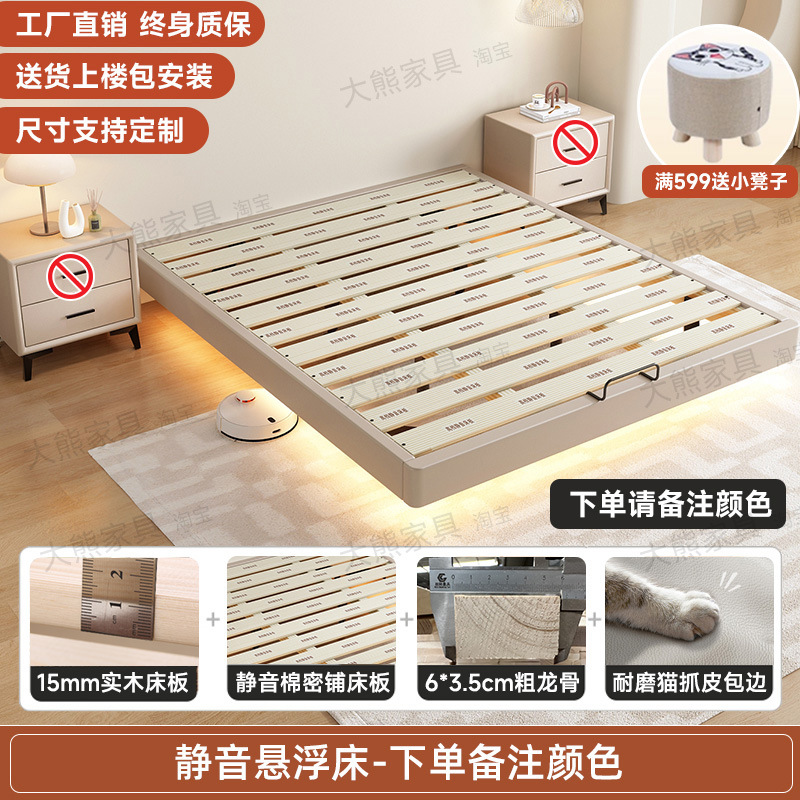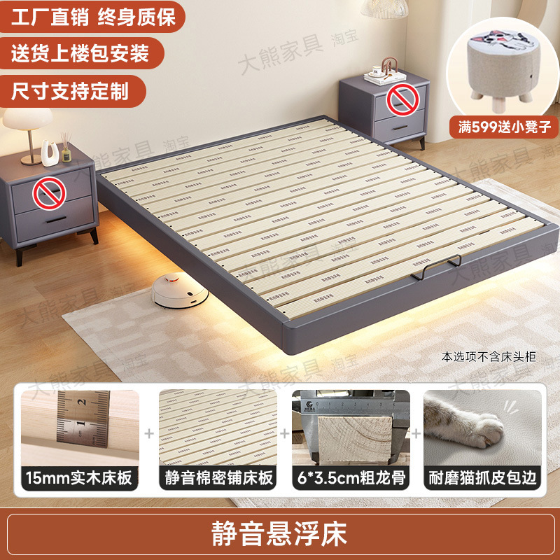 침대가 없는 공중부양 침대, 원목 다다미, 소형 가정용 침대 프레임 1.8m 싱글 및 더블 낮은 침대 공중부양 T&스토어 가기
