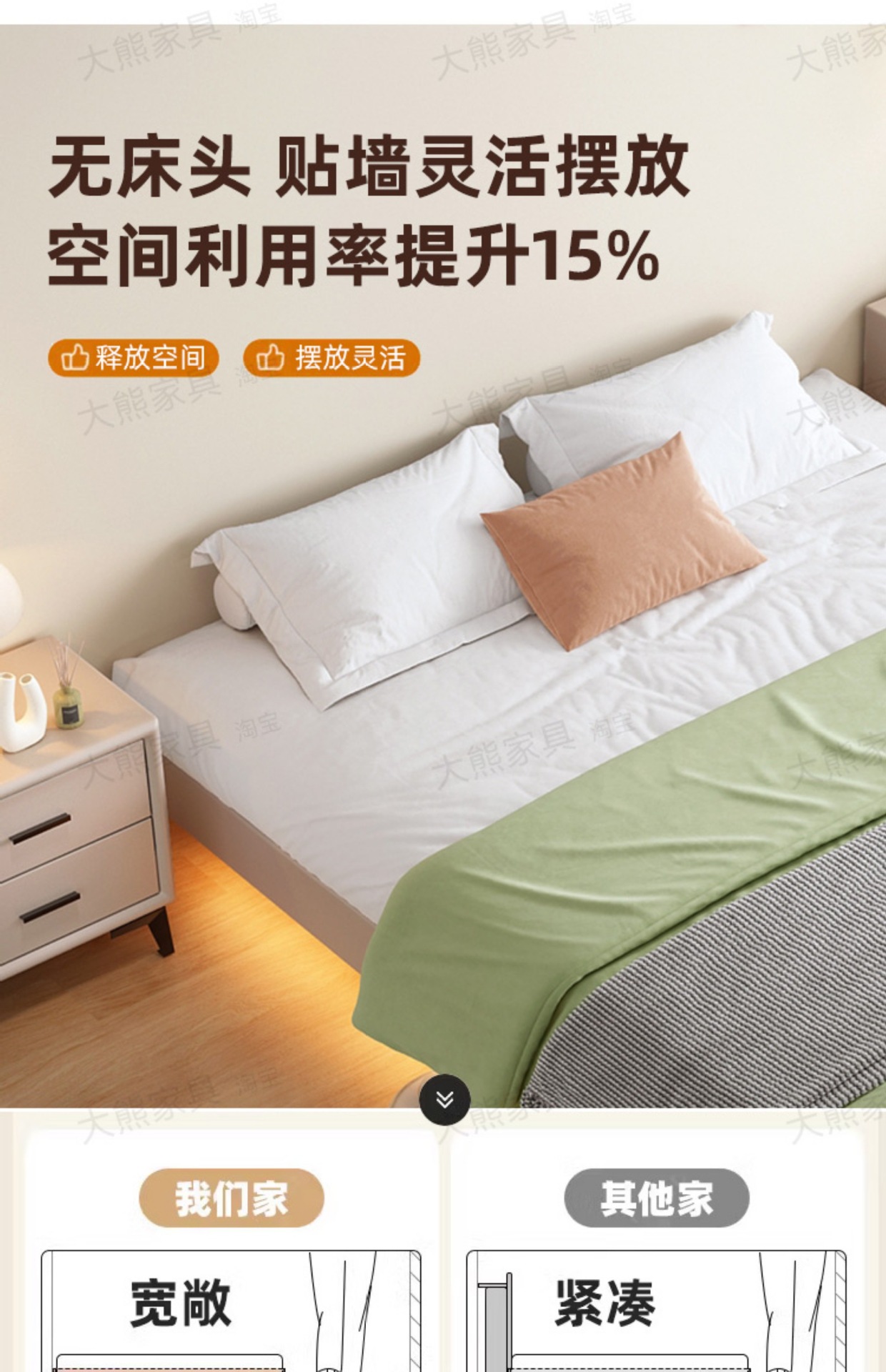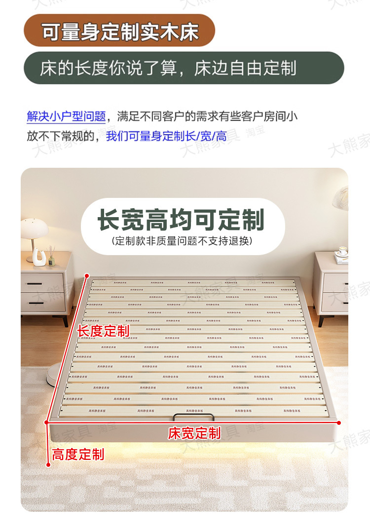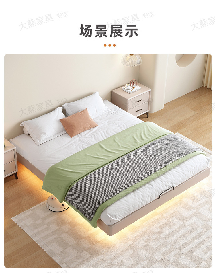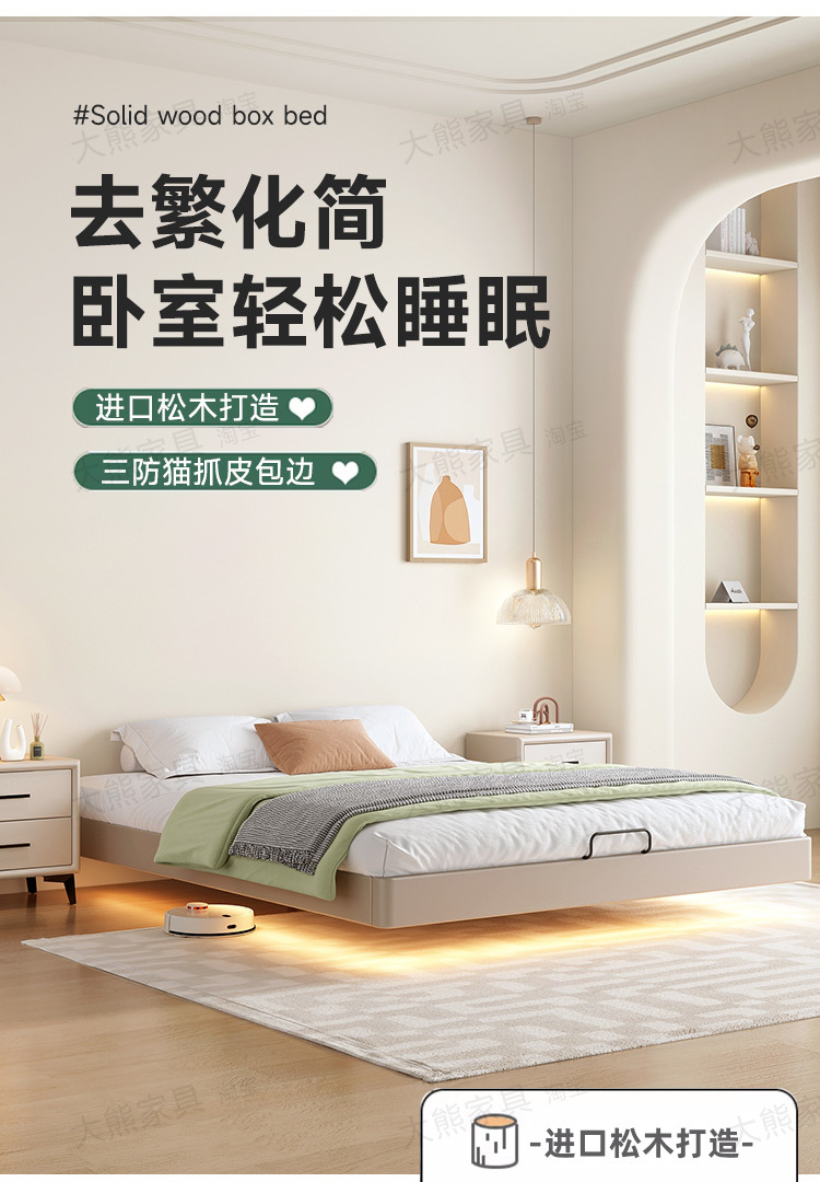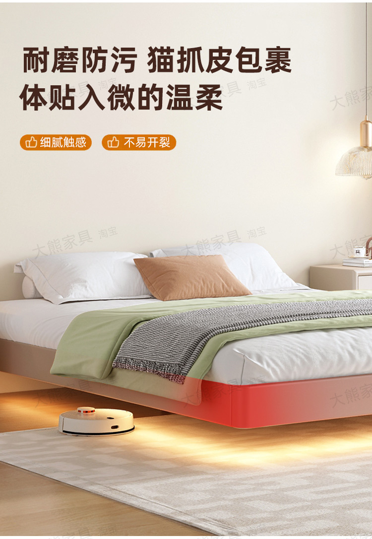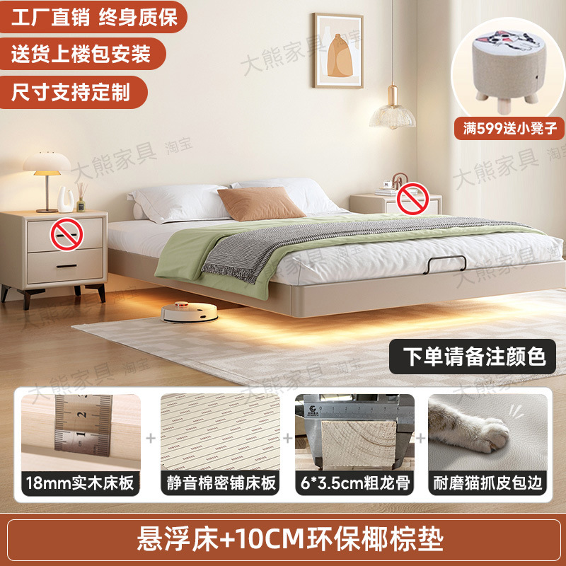 침대가 없는 공중부양 침대, 원목 다다미, 소형 가정용 침대 프레임 1.8m 싱글 및 더블 낮은 침대 공중부양 T&스토어 가기