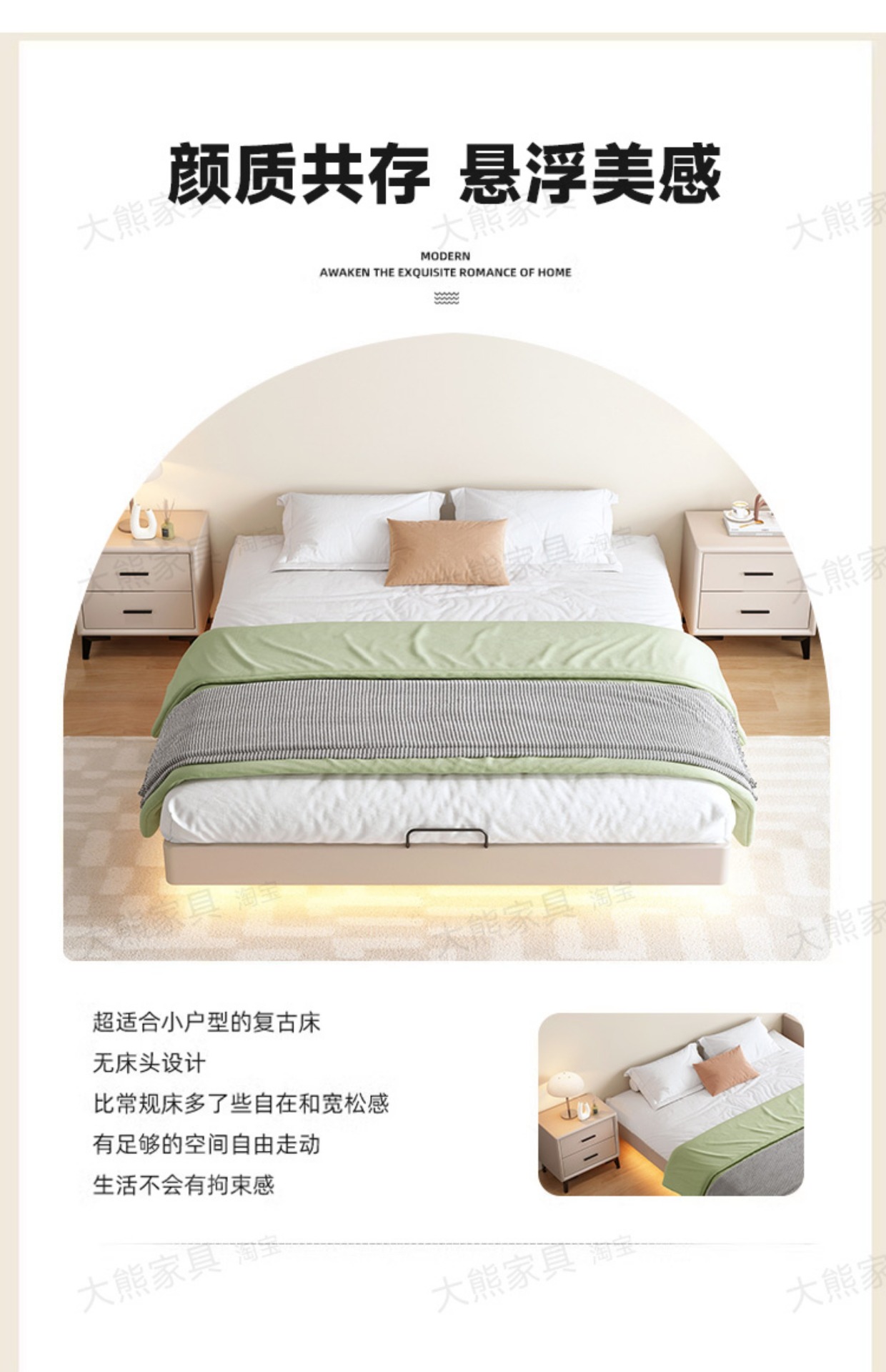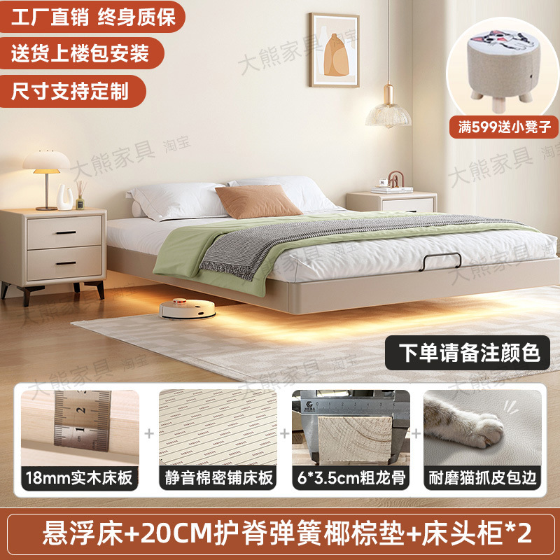 • [암호화된 모델] 매달린 침대 + 척추 보호 스프링 코코넛 매트리스 20cm + 침대 협탁 * 2 [위층 배송 + 설치 포함]