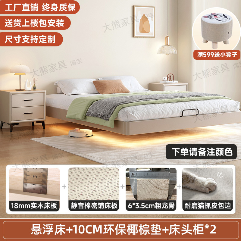 • [모델] 매달린 침대 + 척추 보호용 20cm 스프링 코코넛 매트리스 + 침대 협탁 * 2 [위층 배송 + 설치 포함]