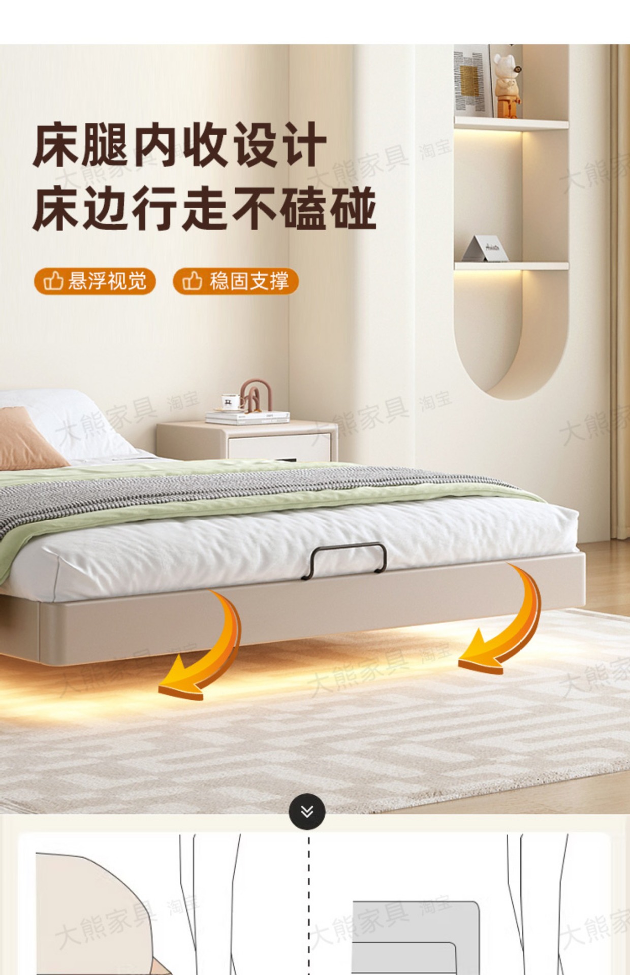 • [모델] 매달린 침대 + 척추 보호용 20cm 스프링 코코넛 매트리스 + 침대 협탁 * 1 [위층 배송 + 설치 포함]