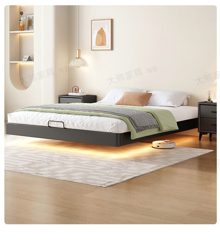 침대가 없는 공중부양 침대, 원목 다다미, 소형 가정용 침대 프레임 1.8m 싱글 및 더블 낮은 침대 공중부양 T&