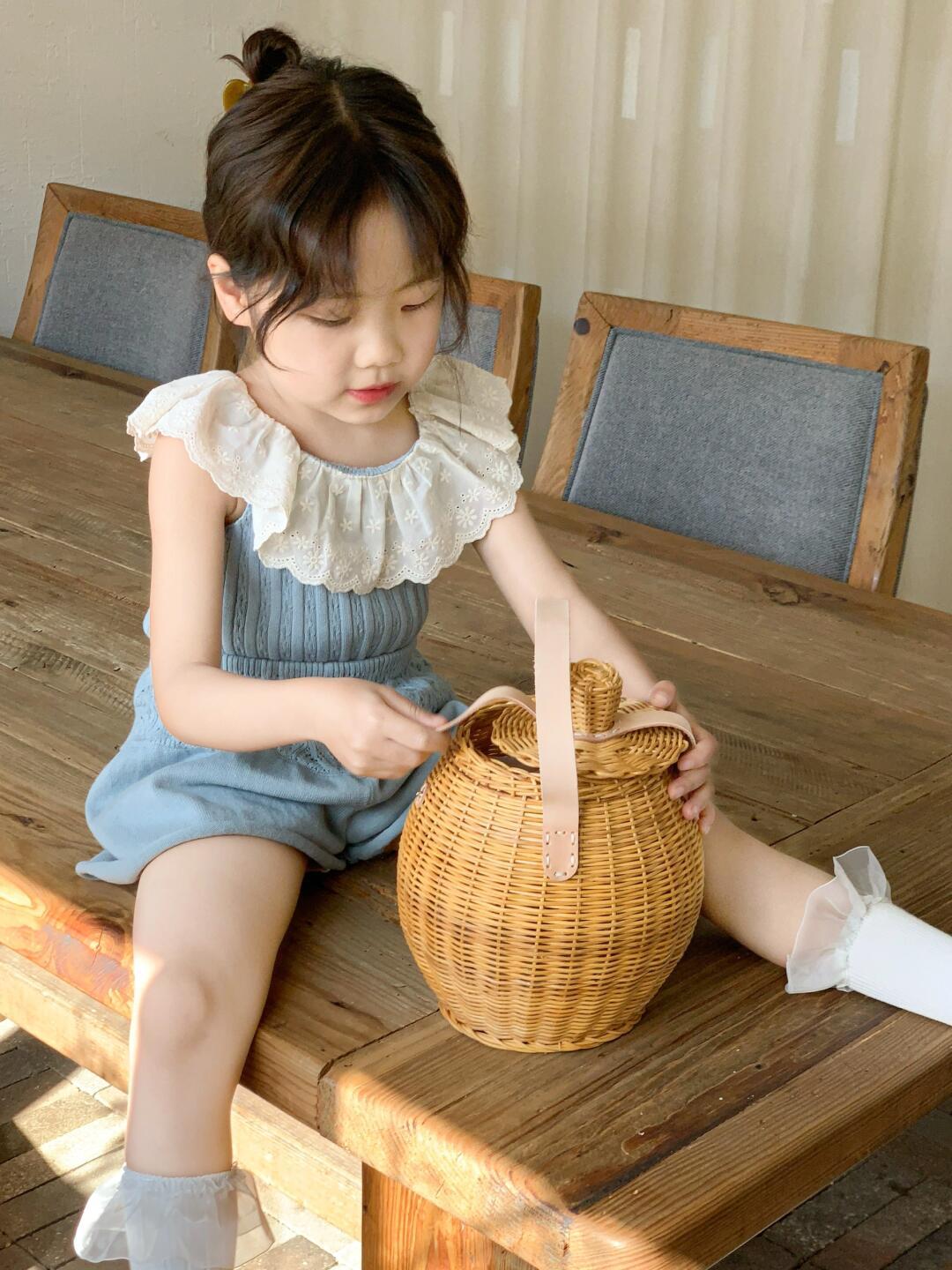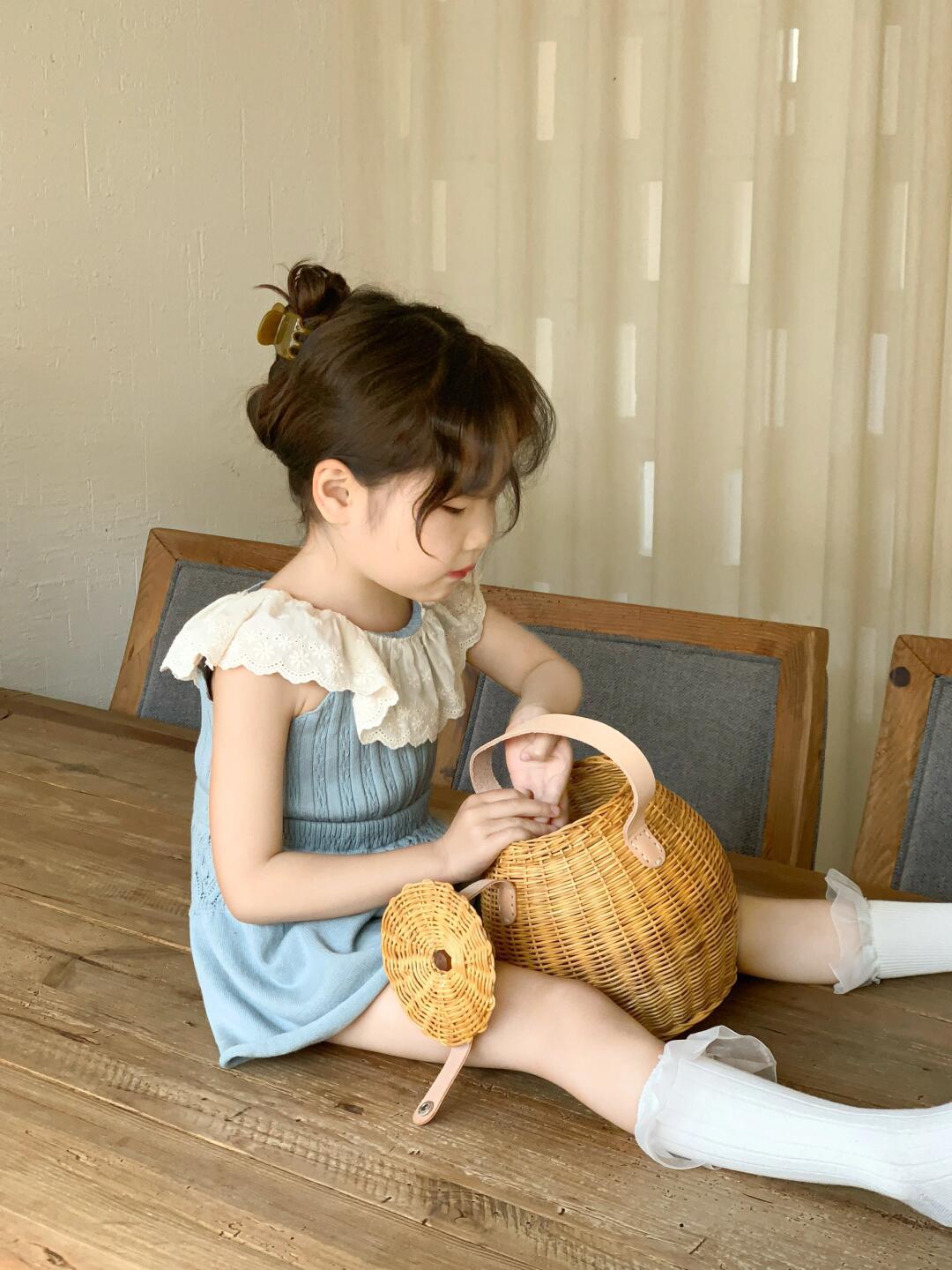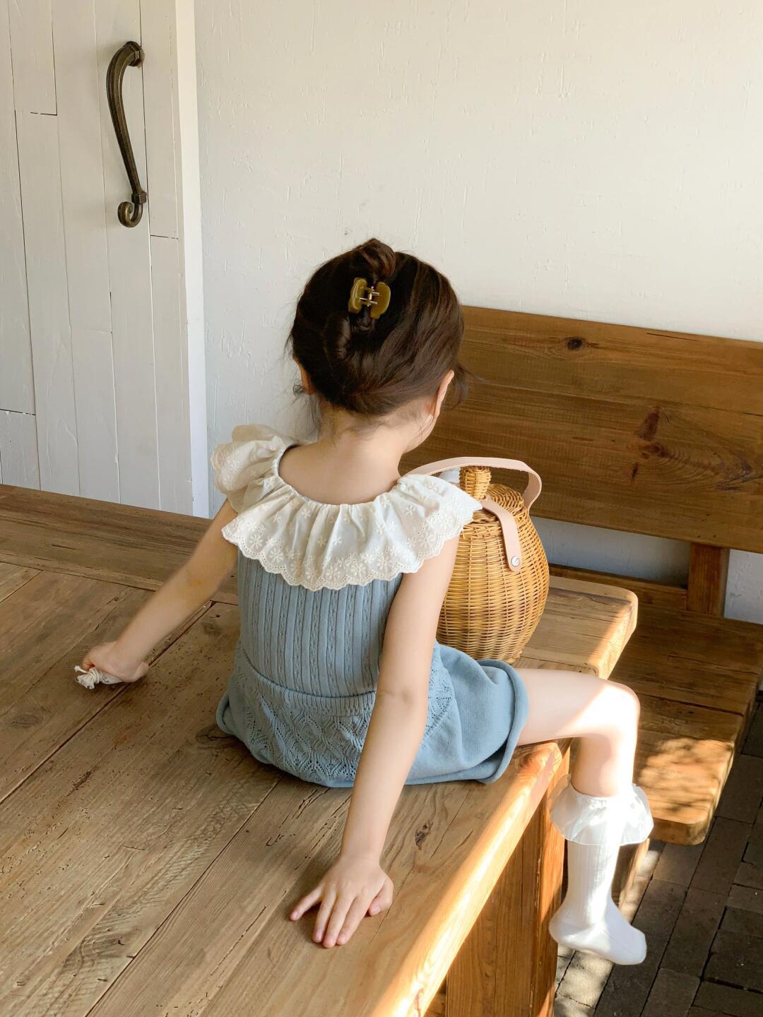 여자 여름 달콤한 스타일 레이스 인형 칼라 블루 니트 크로 셰 뜨개질 민소매 탑 조끼 + 반바지 세트스토어 가기