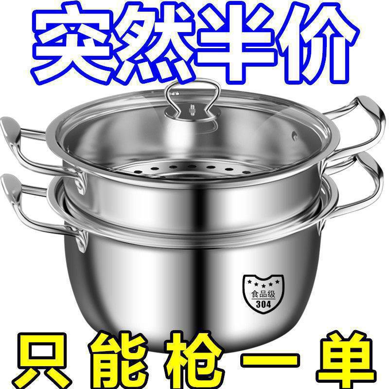 스테인레스 스틸 수프 냄비, 두꺼운 가정용 찜통, 대용량 우유 냄비, 학생용 만능 죽 냄비스토어 가기
