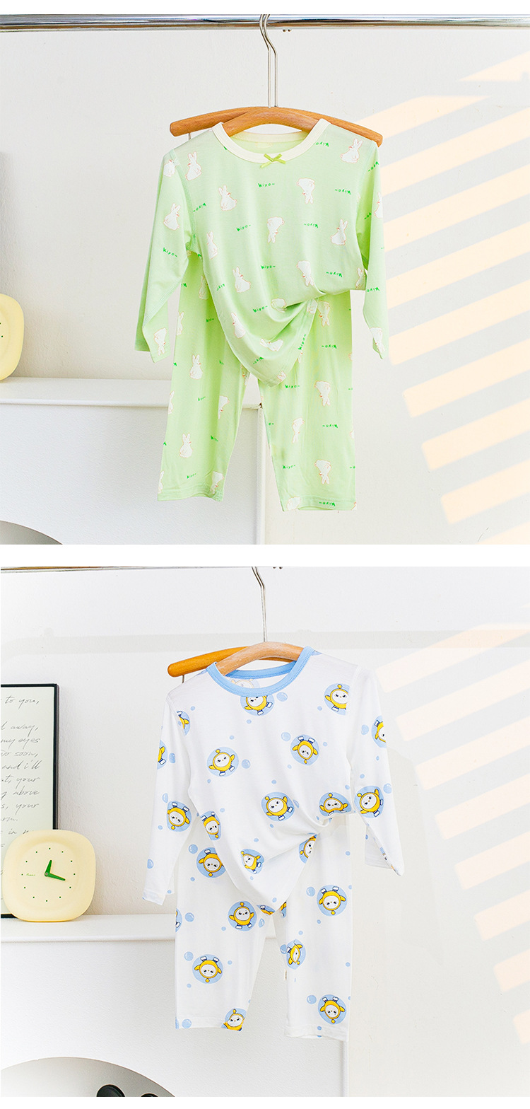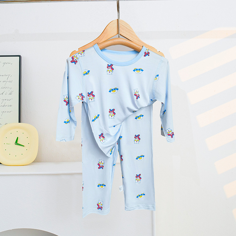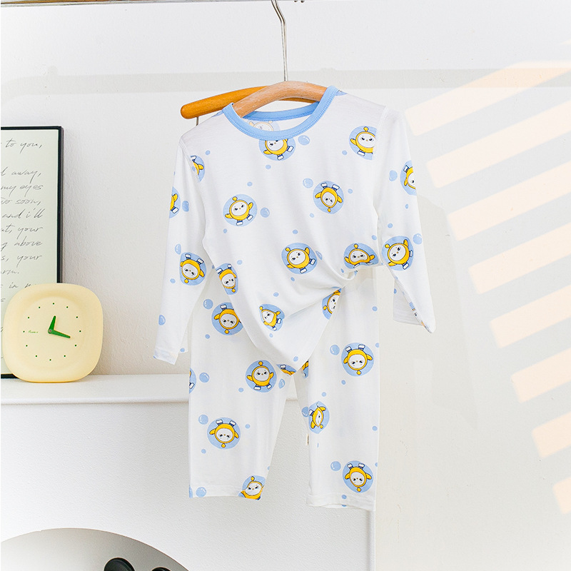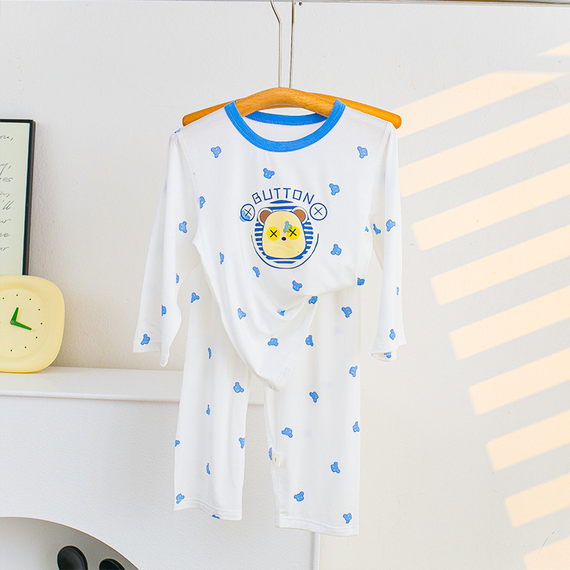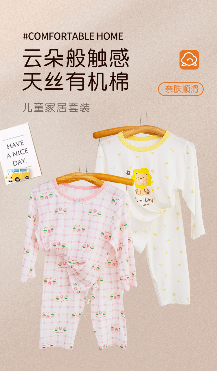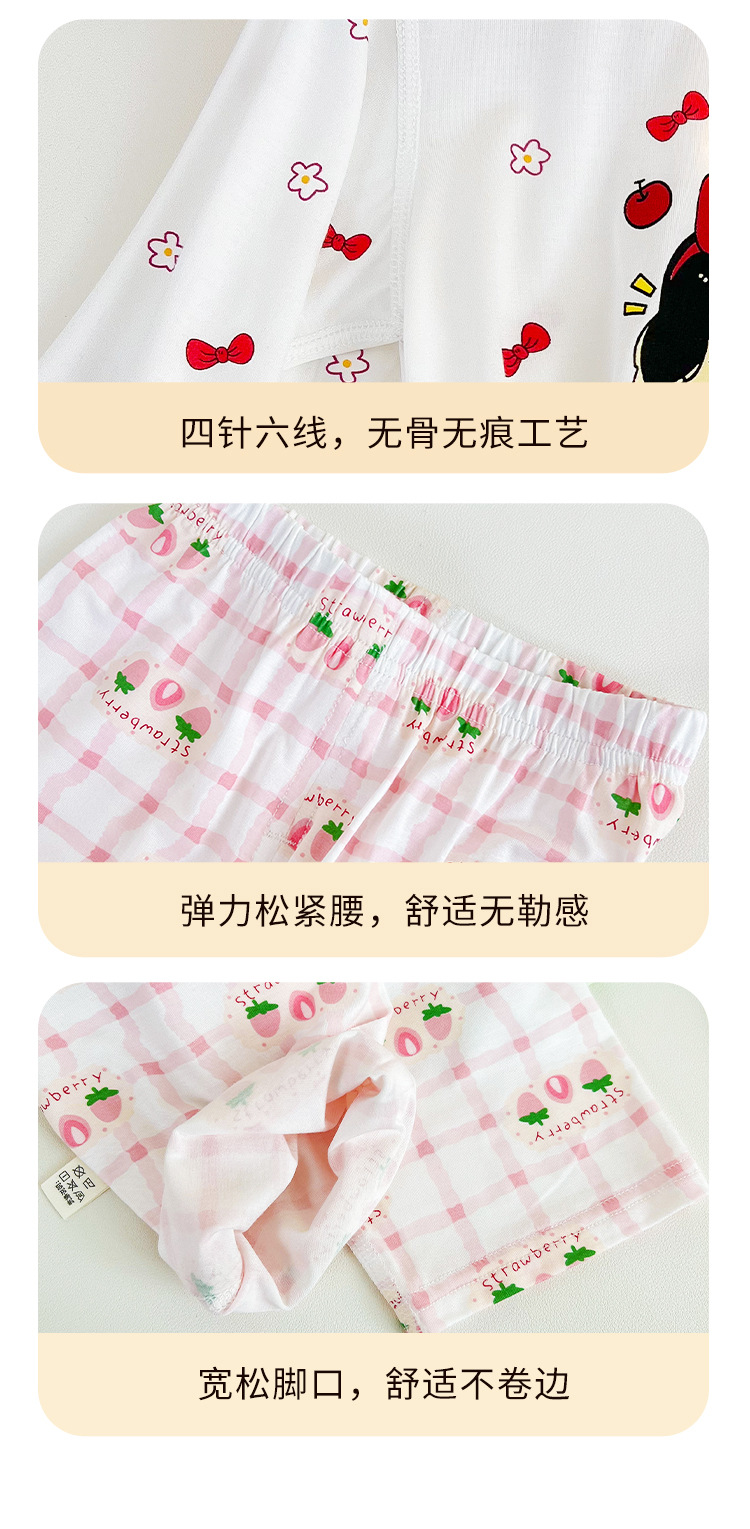 소년과 소녀를위한 어린이 여름 에어컨 의류 세트 Tencel 7부 소매 가정 의류 만화 귀여운 인쇄 통기성