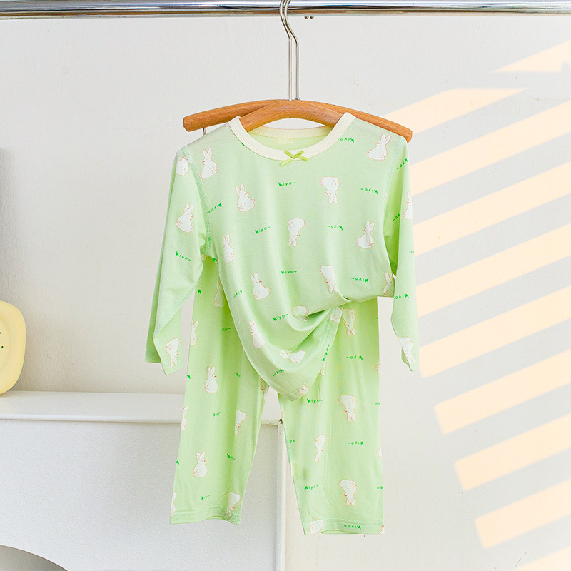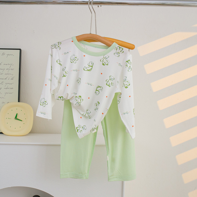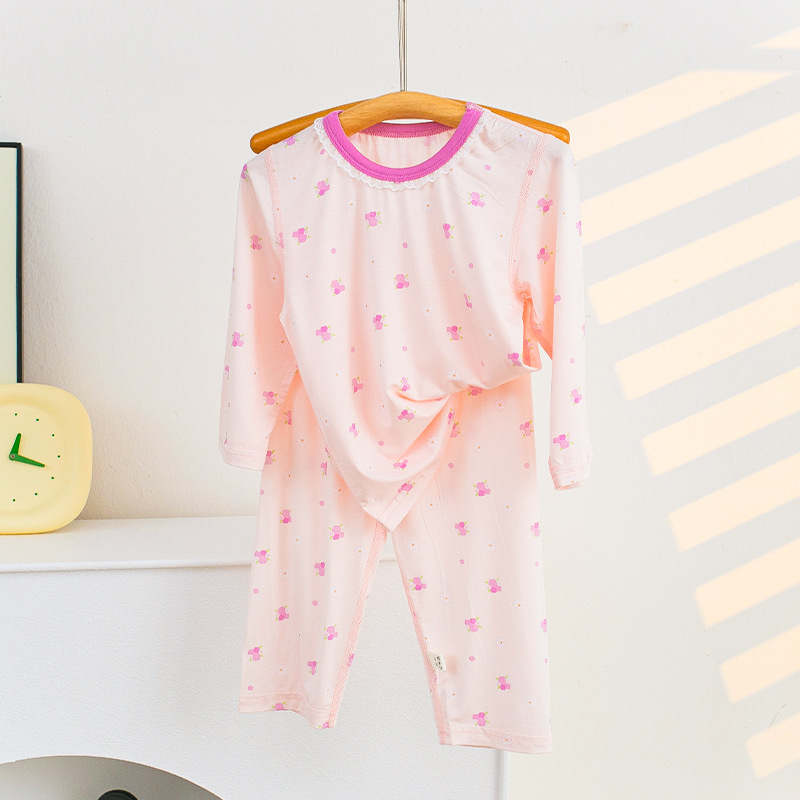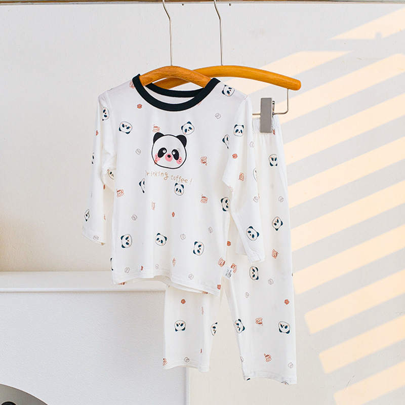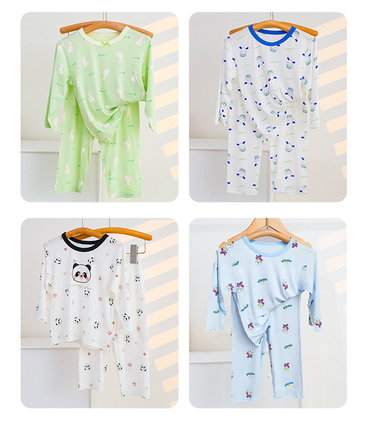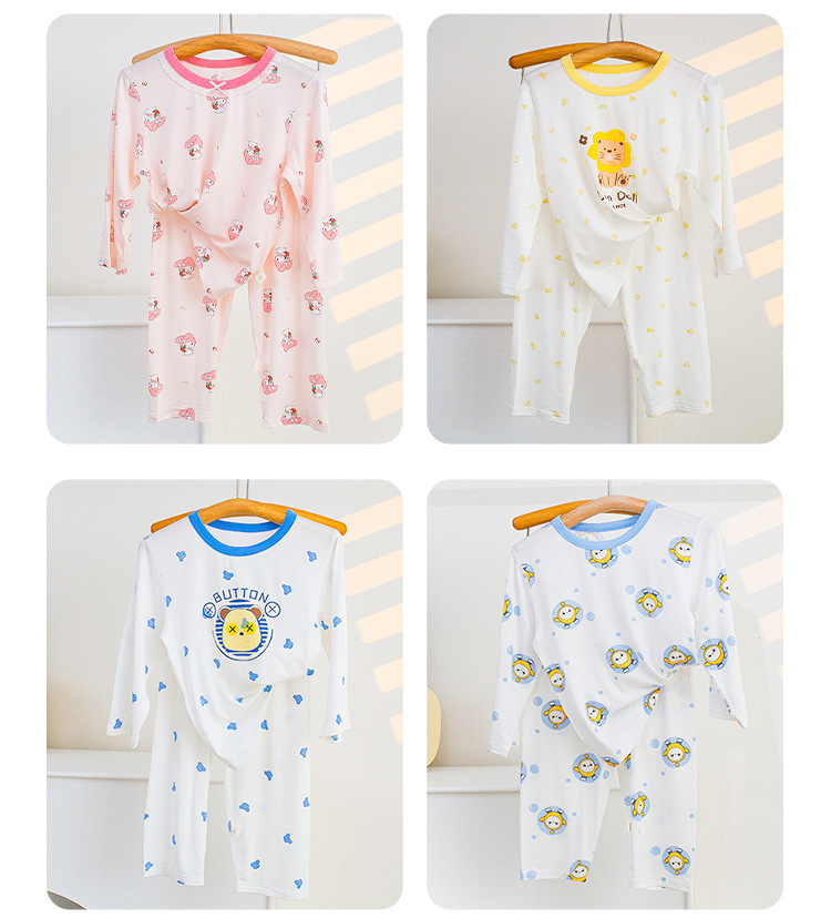 소년과 소녀를위한 어린이 여름 에어컨 의류 세트 Tencel 7부 소매 가정 의류 만화 귀여운 인쇄 통기성