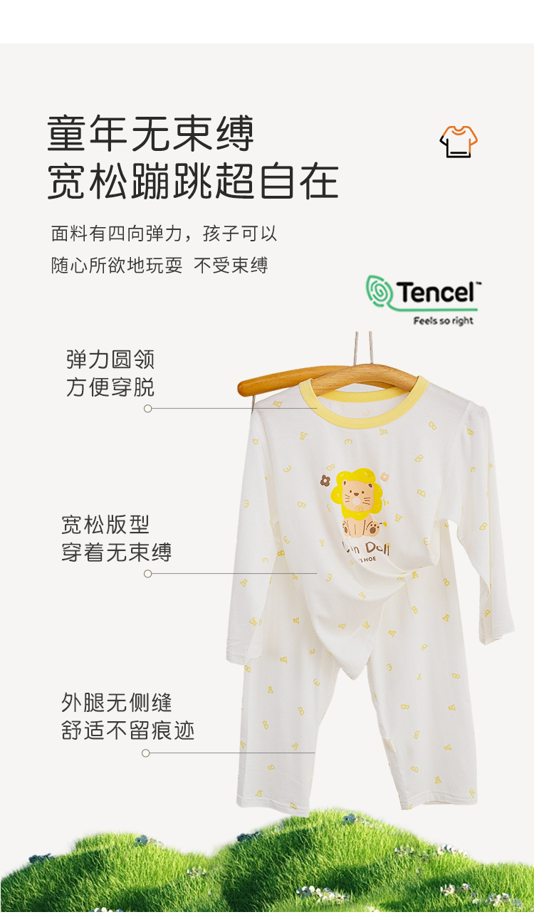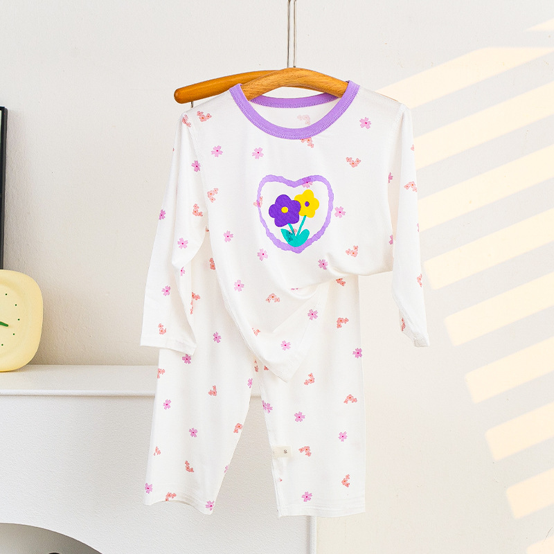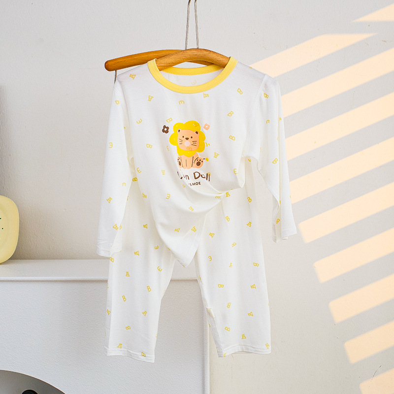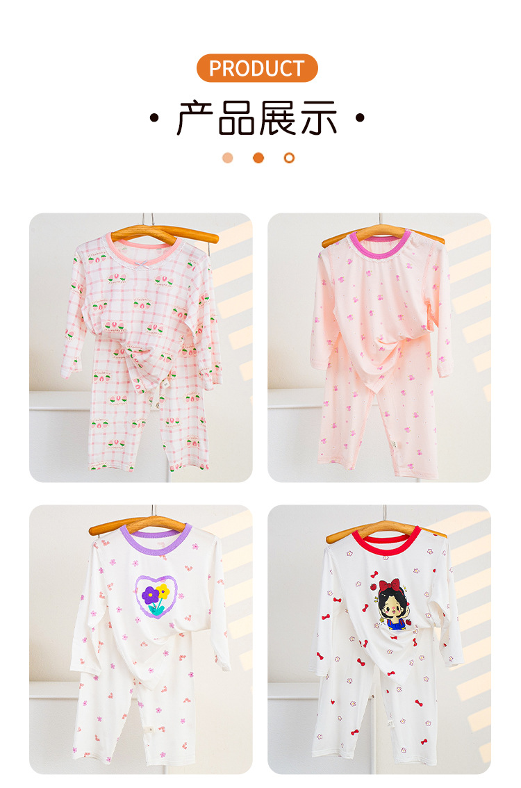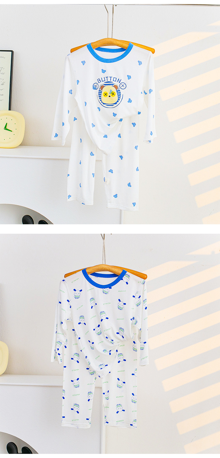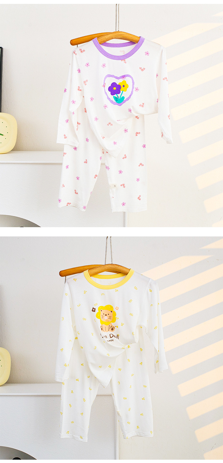 소년과 소녀를위한 어린이 여름 에어컨 의류 세트 Tencel 7부 소매 가정 의류 만화 귀여운 인쇄 통기성