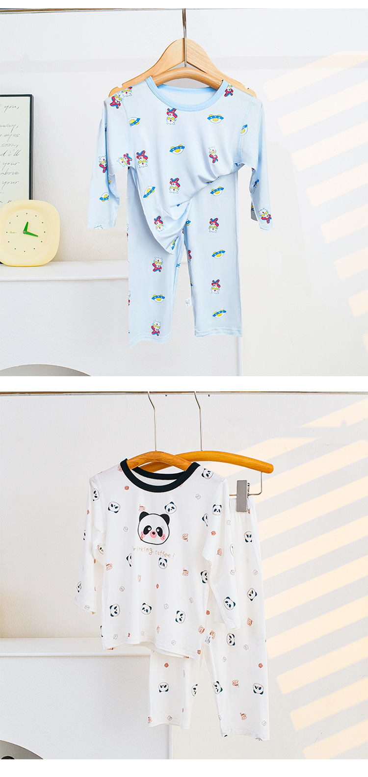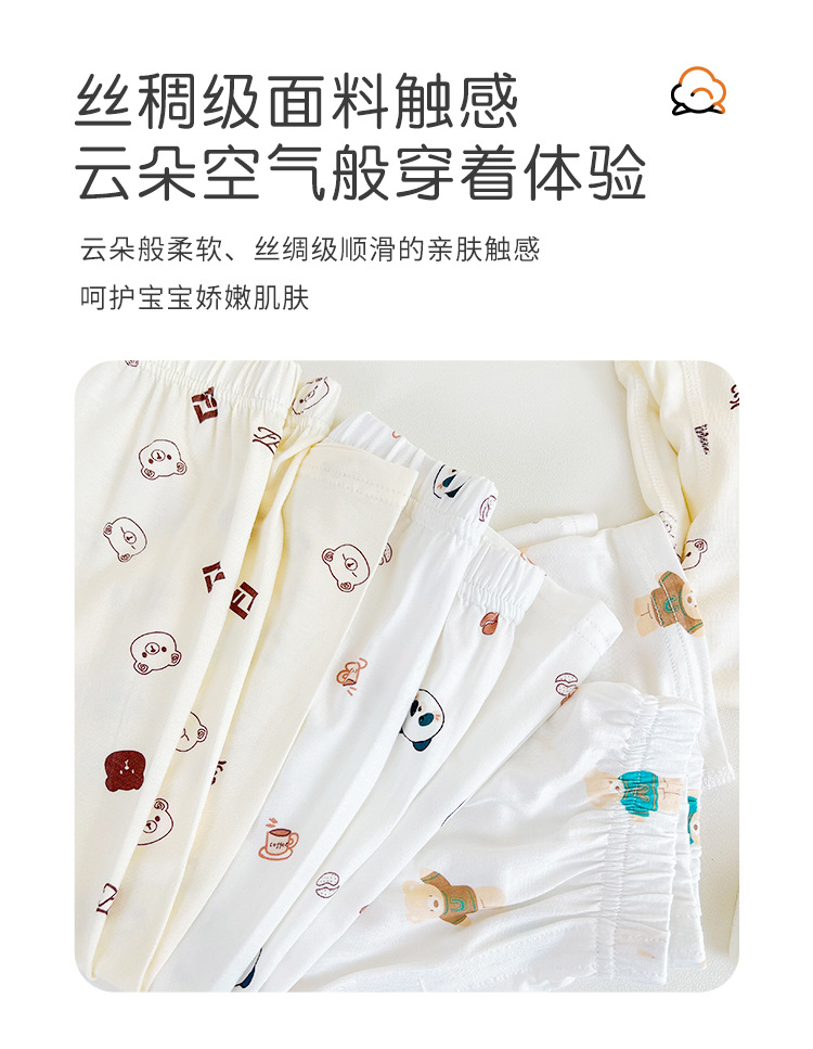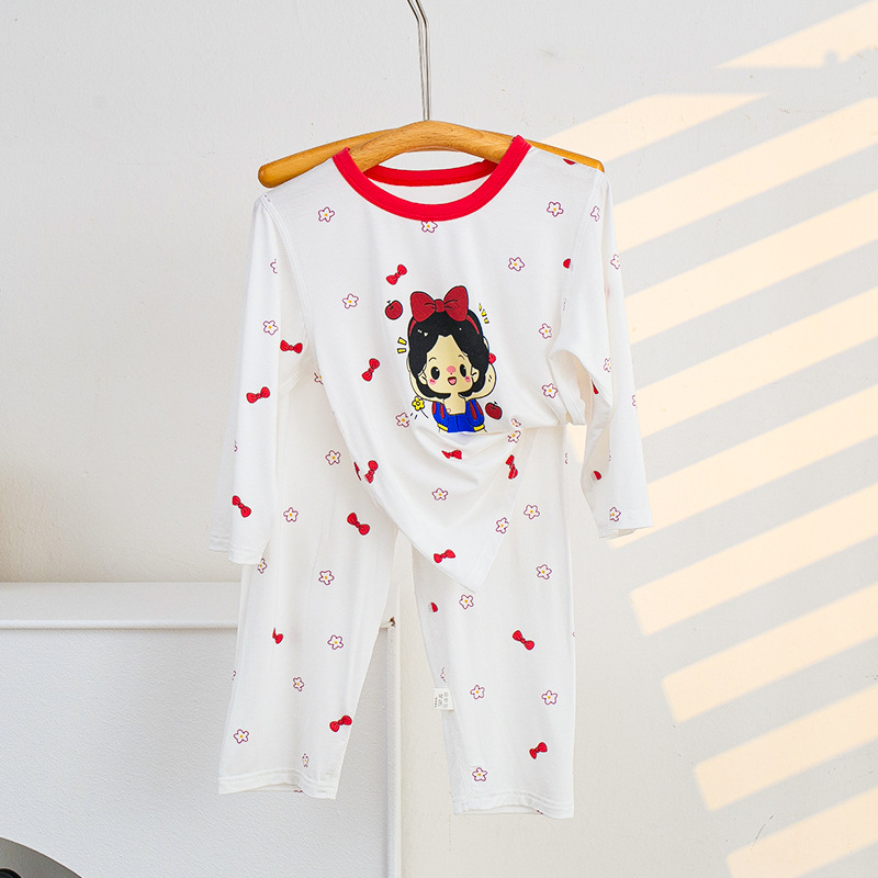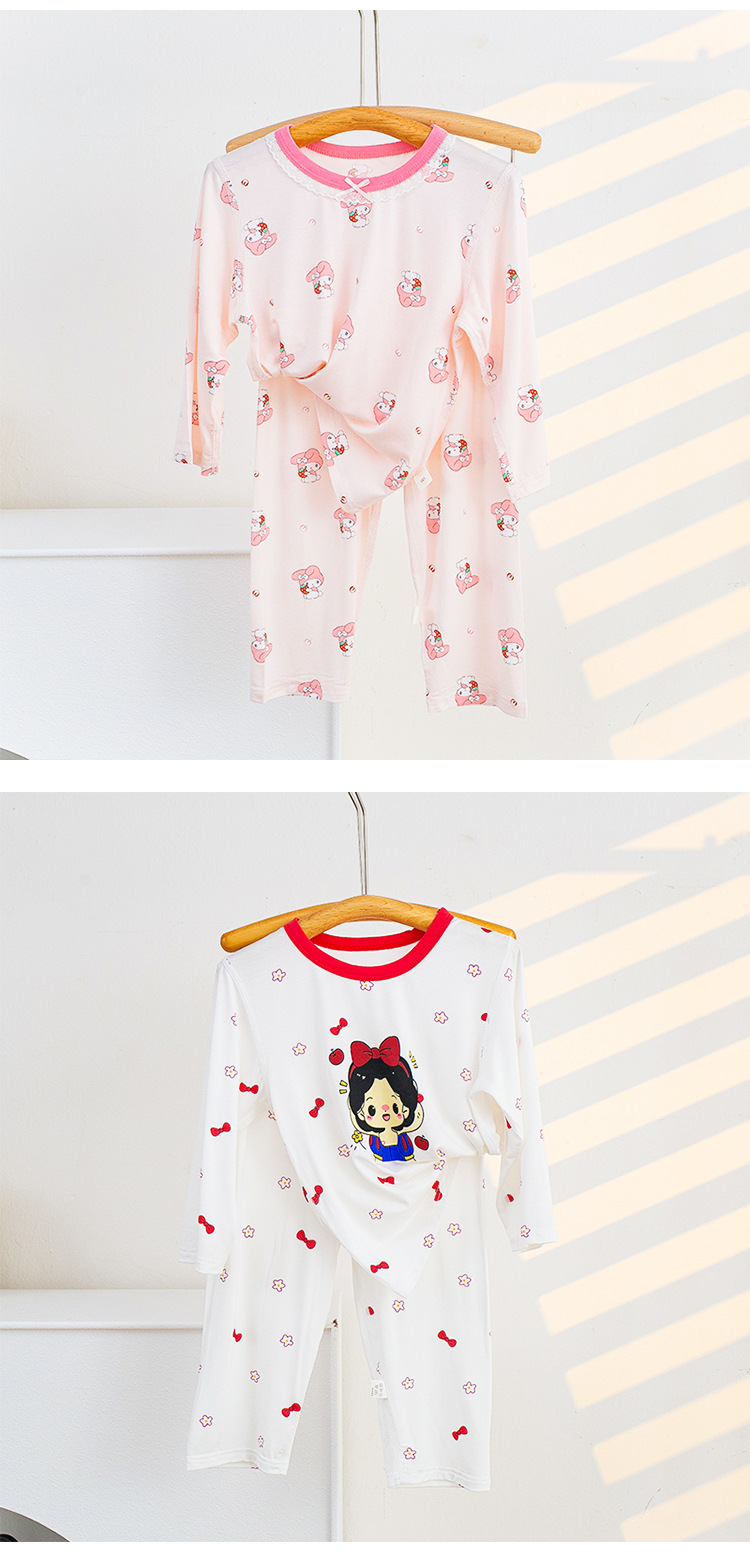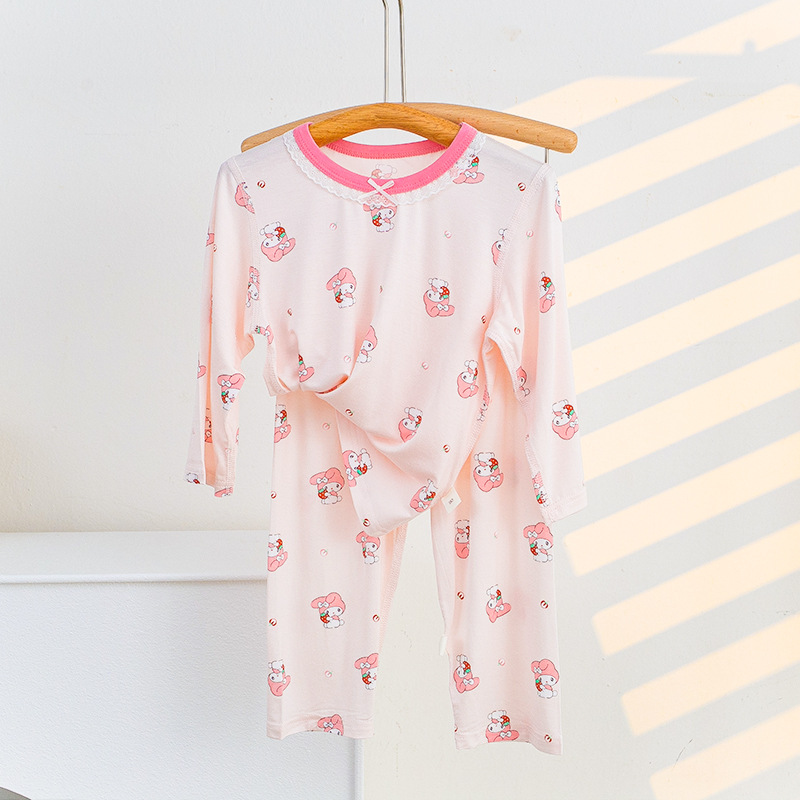 소년과 소녀를위한 어린이 여름 에어컨 의류 세트 Tencel 7부 소매 가정 의류 만화 귀여운 인쇄 통기성