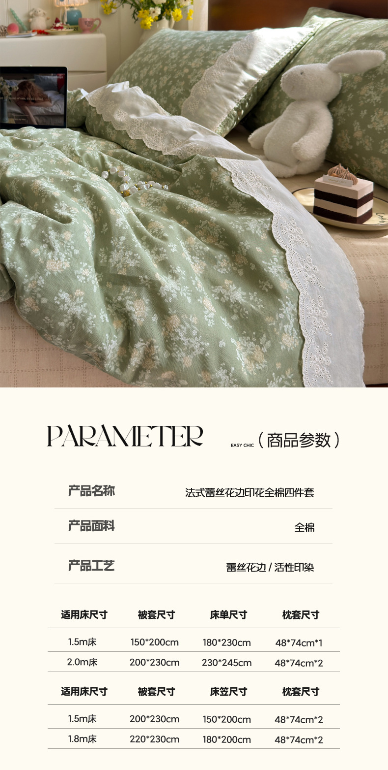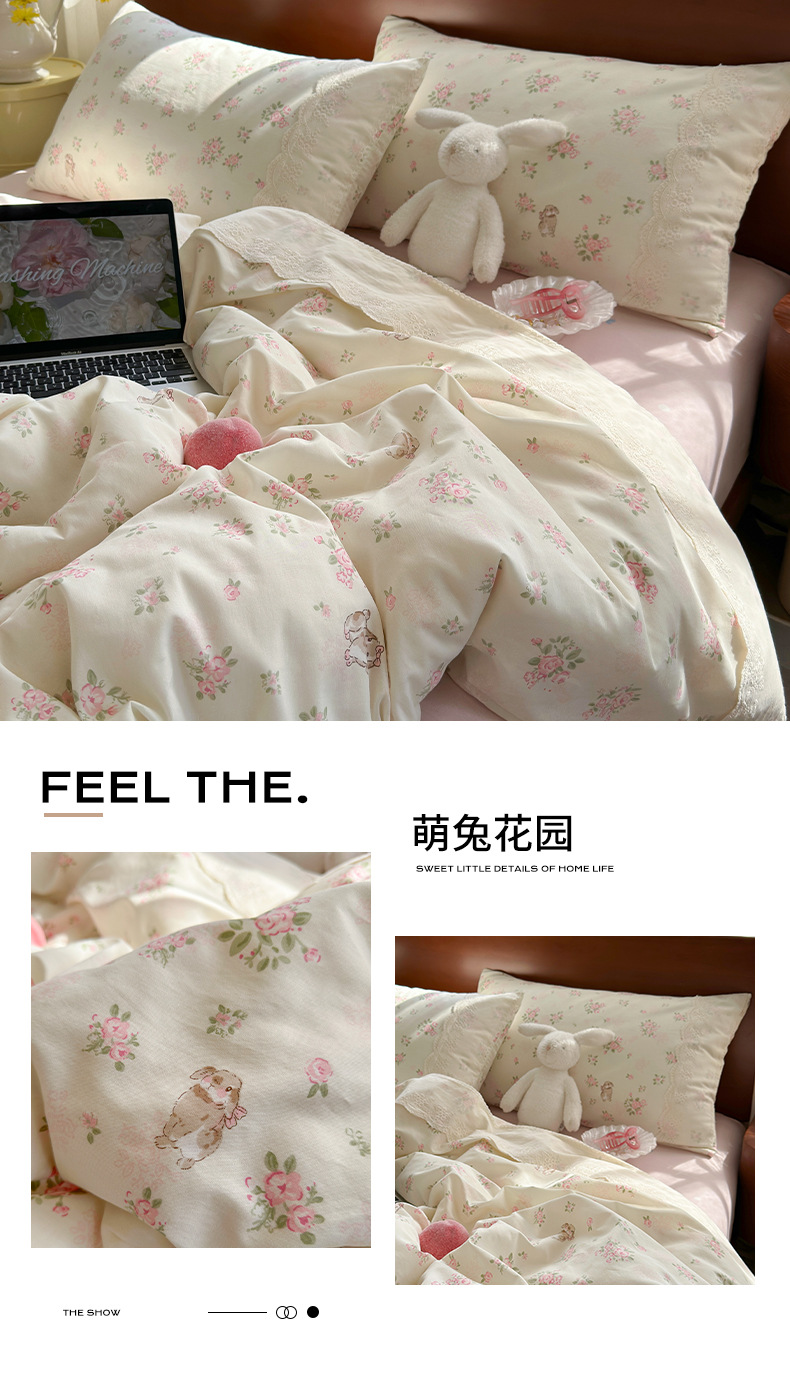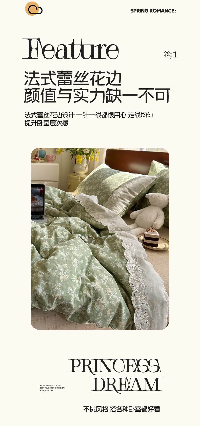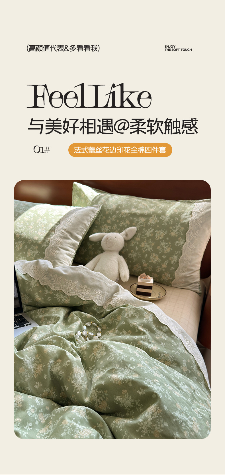 프렌치 레트로 레이스 순면 꽃무늬 4피스 여름 에어컨 이불 순면 얇은 이불 더블 침대스토어 가기