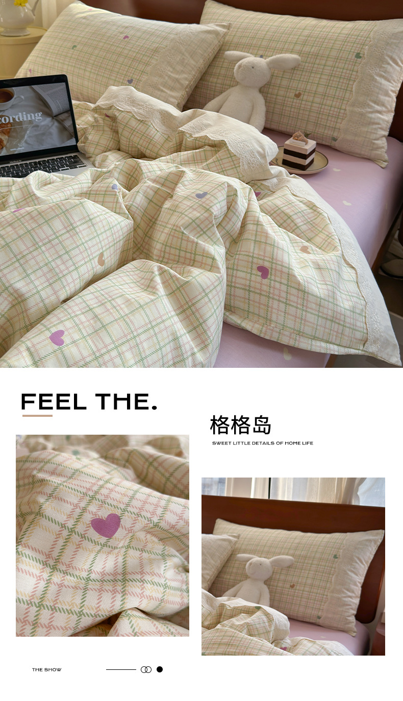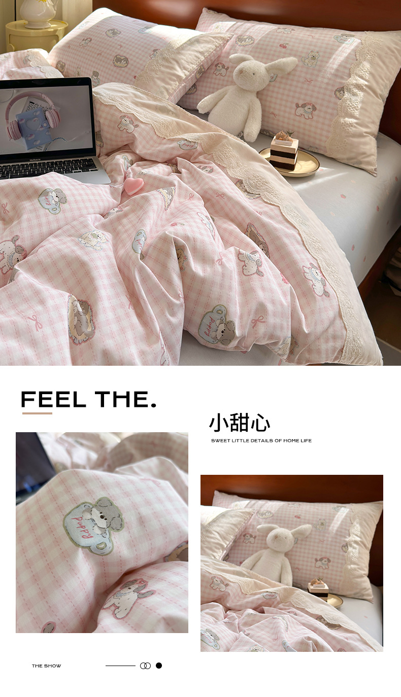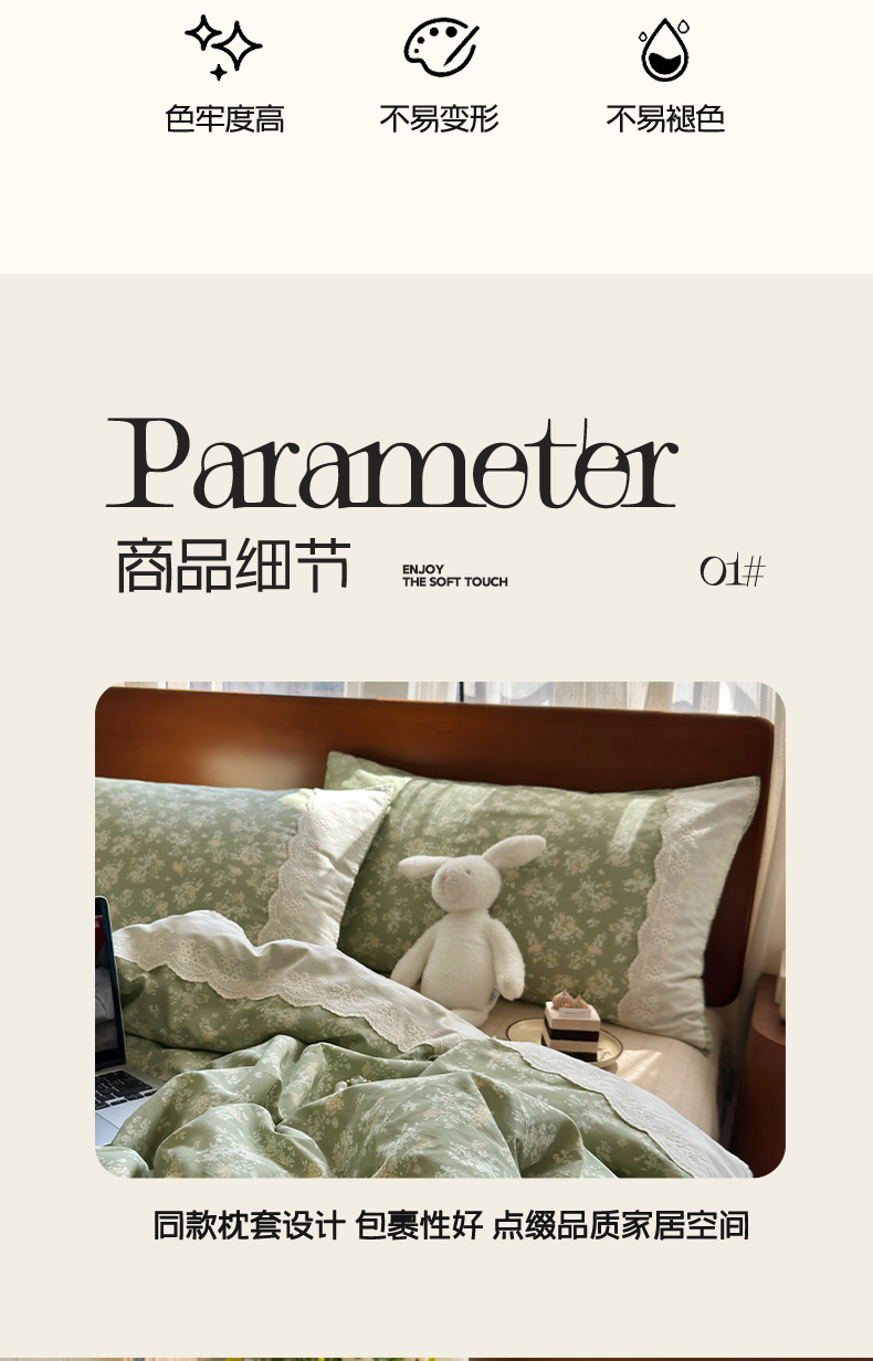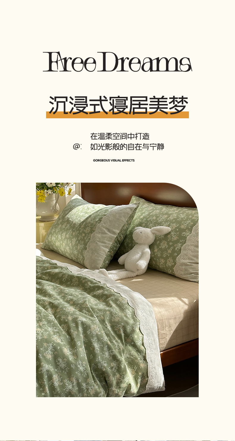 프렌치 레트로 레이스 순면 꽃무늬 4피스 여름 에어컨 이불 순면 얇은 이불 더블 침대스토어 가기