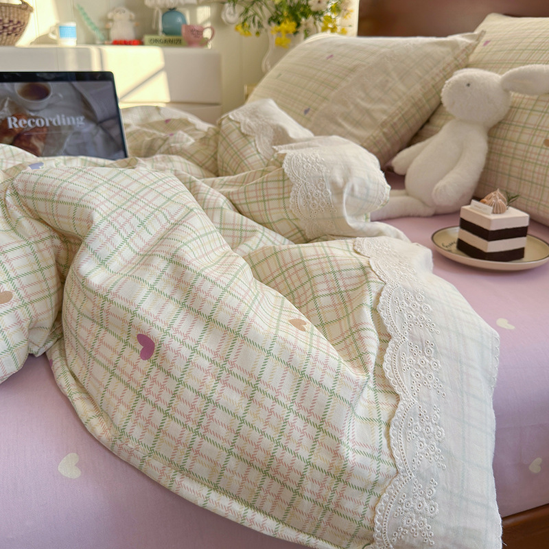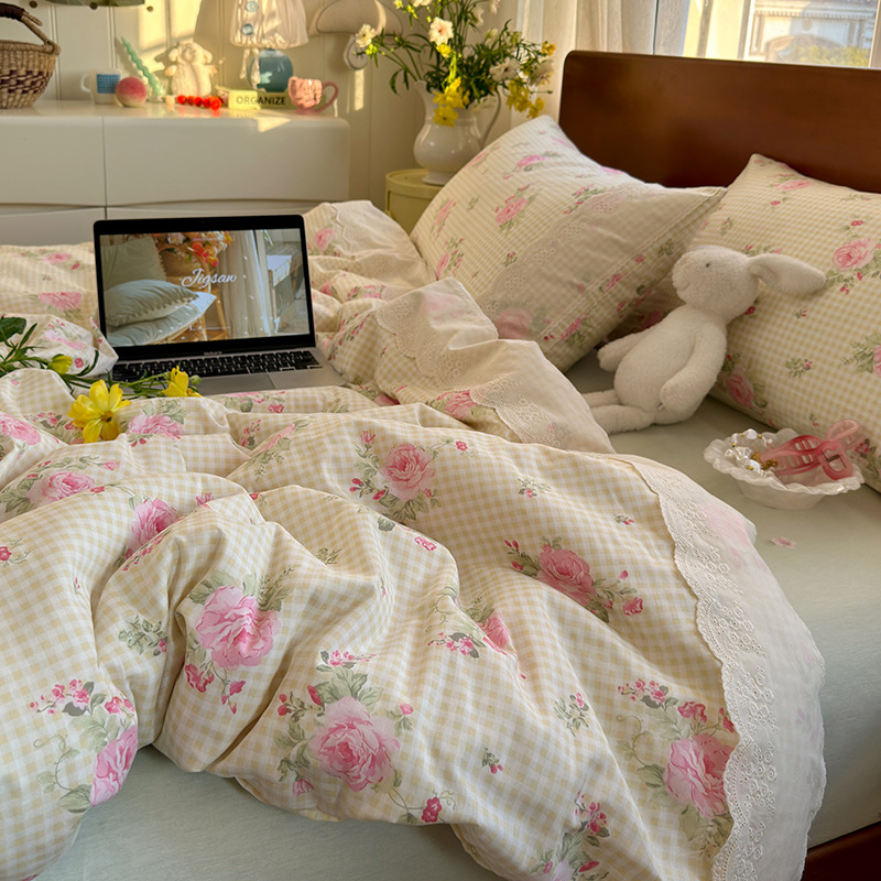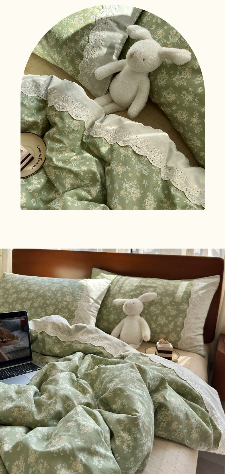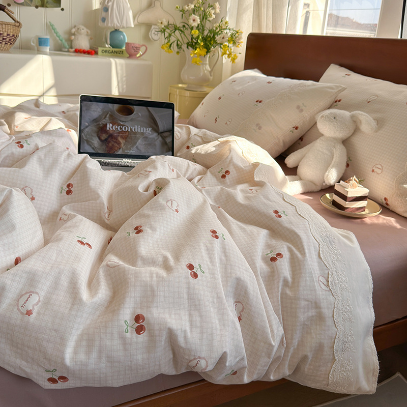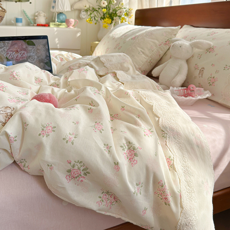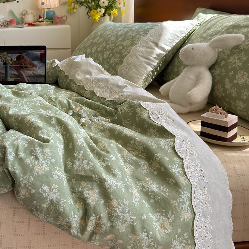 프렌치 레트로 레이스 순면 꽃무늬 4피스 여름 에어컨 이불 순면 얇은 이불 더블 침대