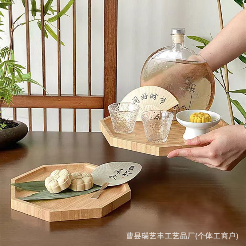 나무 팔각형 트레이, 말린 과일 트레이, 스낵 트레이, 중국 고대 스타일의 난로 차 트레이, 단단한 나무