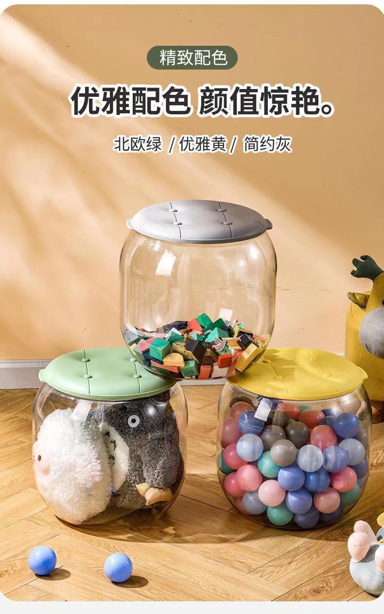 라이트 럭셔리 투명 다기능 어린이 장난감 보관 의자 어린이 의자 홈 스토리지 주최자 의자 장난감 보관 바구니