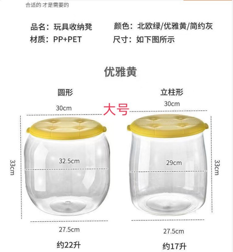 • 휴대용 손잡이가 있는 대형 원형 22L 노란색