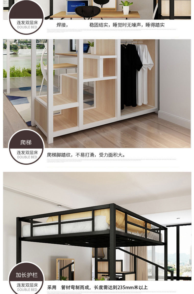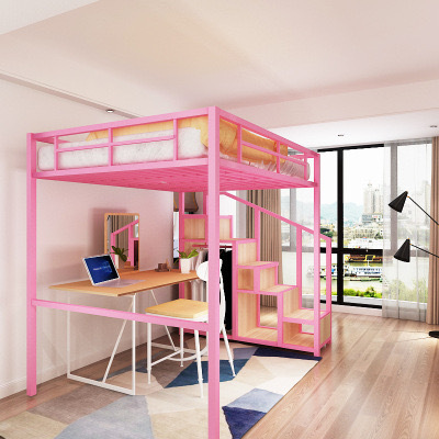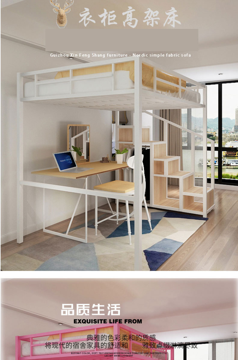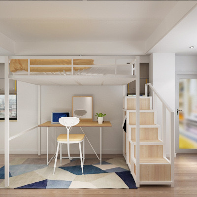 이탈리아 미니멀리스트 침대와 테이블 철제 프레임 침대 다기능 학생 아파트 싱글 하이 로우 침대 홈 이층 침대
