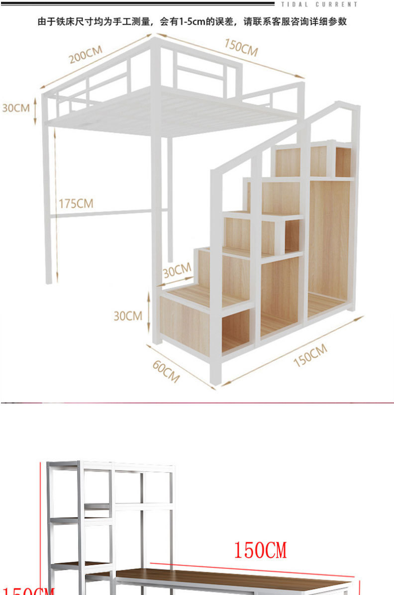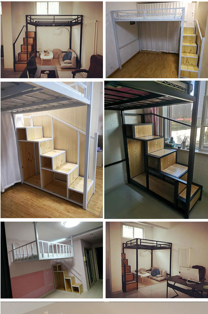이탈리아 미니멀리스트 침대와 테이블 철제 프레임 침대 다기능 학생 아파트 싱글 하이 로우 침대 홈 이층 침대스토어 가기