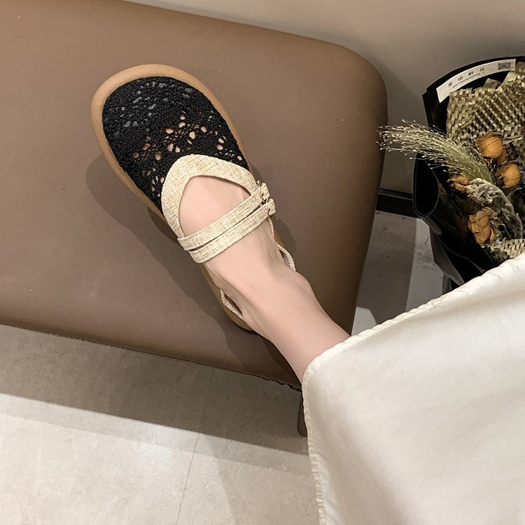 민족 스타일의 중공 샌들 및 슬리퍼 2025 봄 및 여름 통기성 리넨 Baotou 하프 슬리퍼 플랫 아웃웨어 샌들스토어 가기