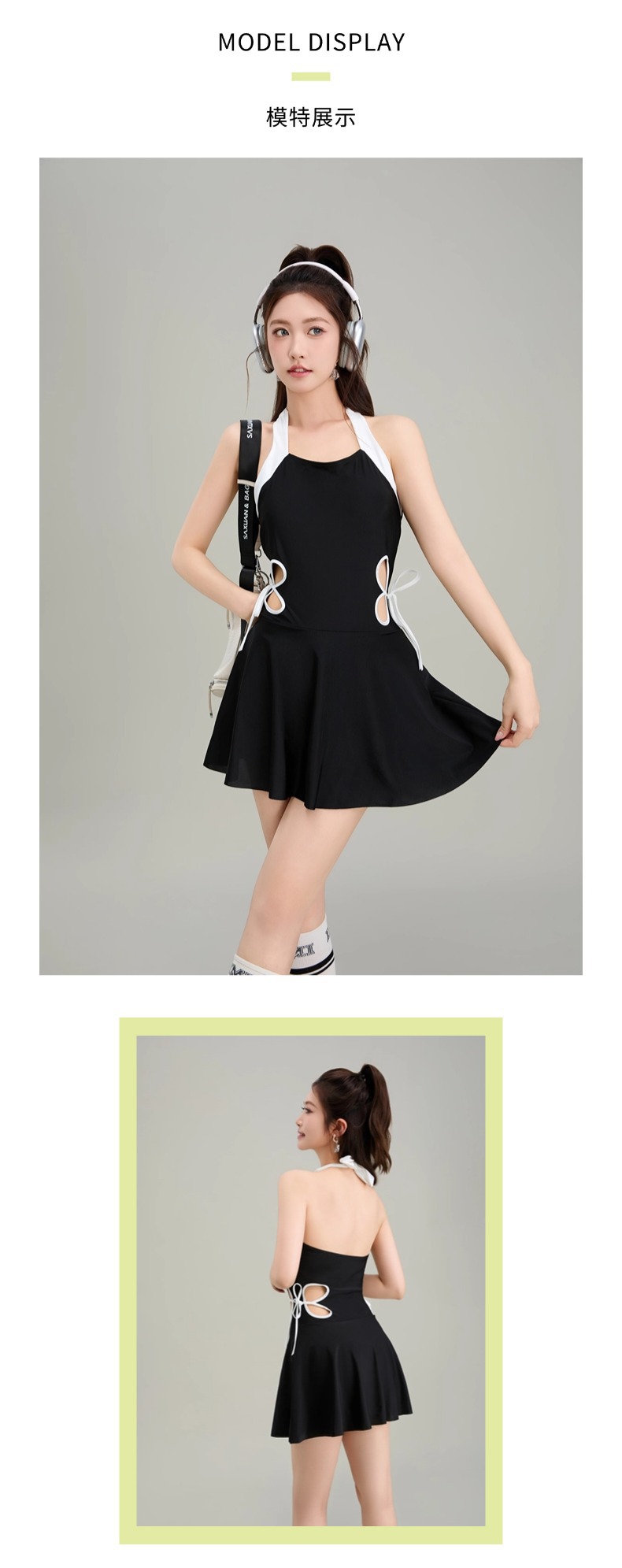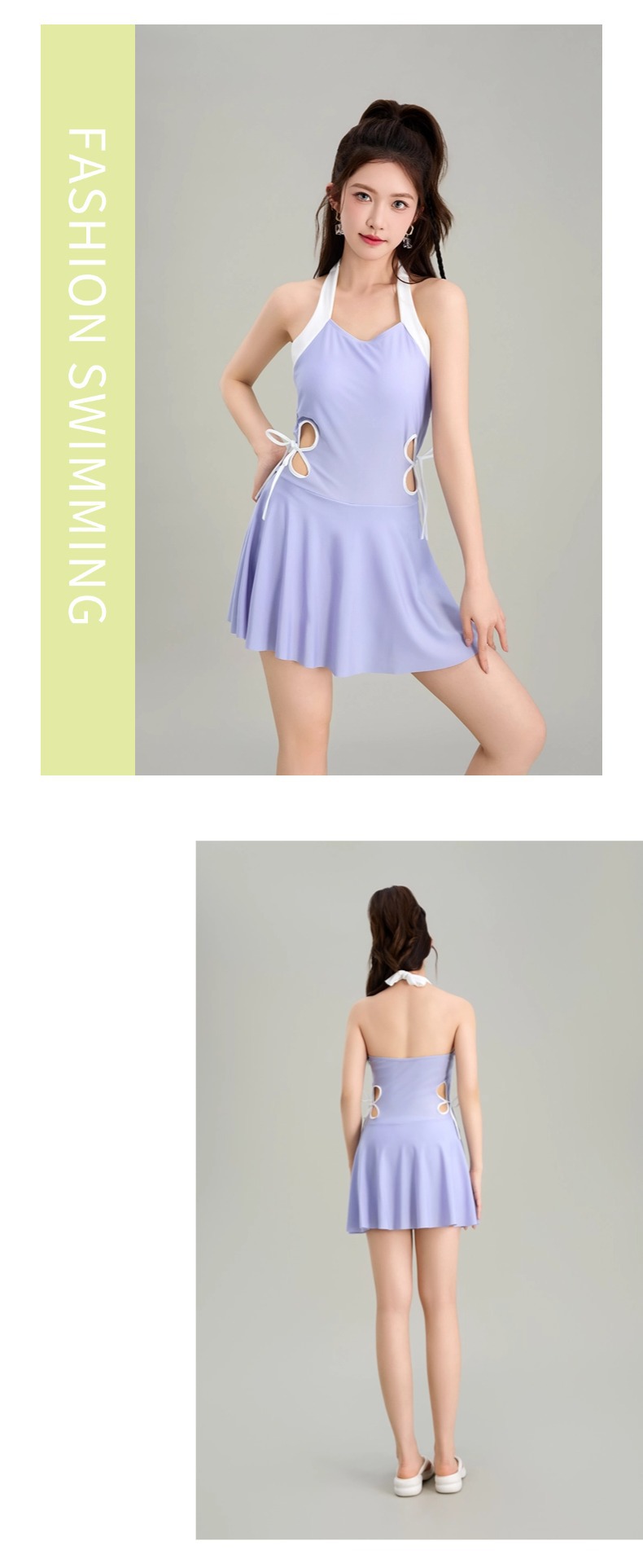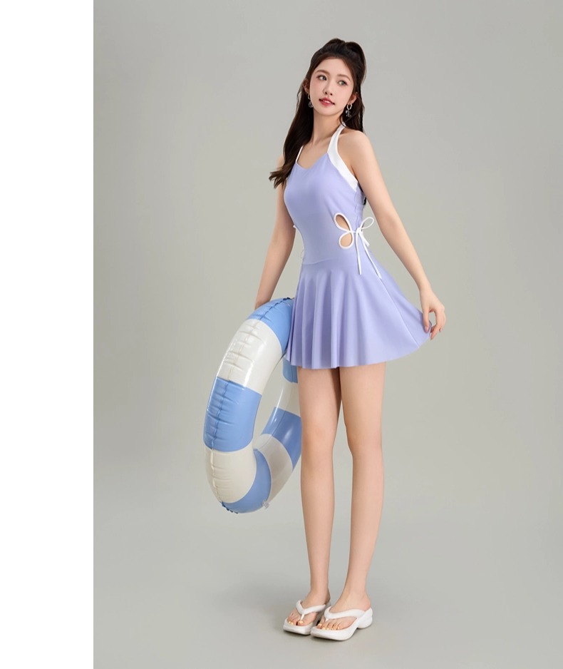 새로운 스커트 스타일 원피스 수영복, 속이 빈 홀터넥 스트랩, 섹시한 순수한 욕망의 요정 허리 슬리밍 여성용 온천 수영복스토어 가기