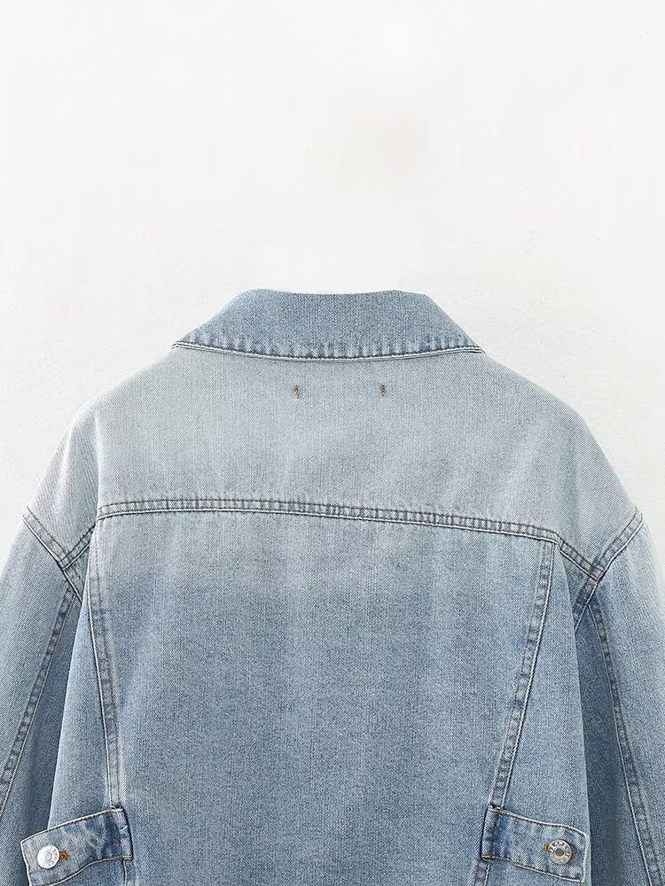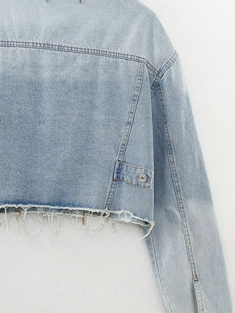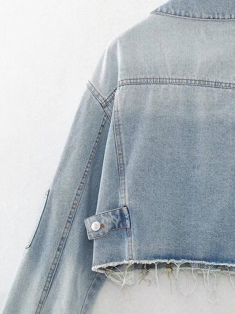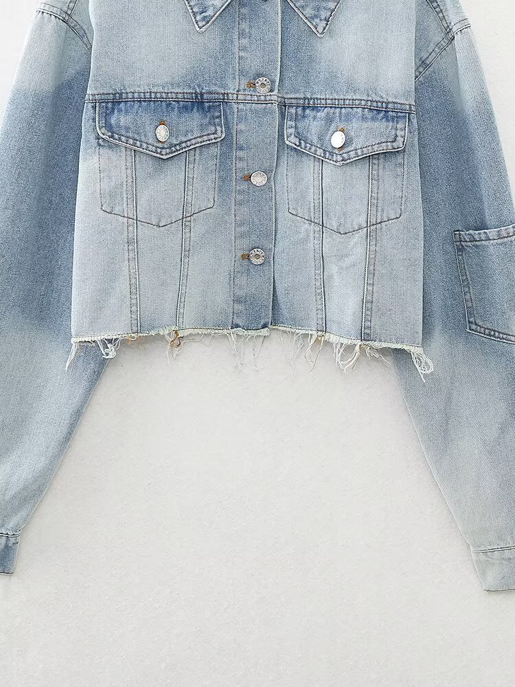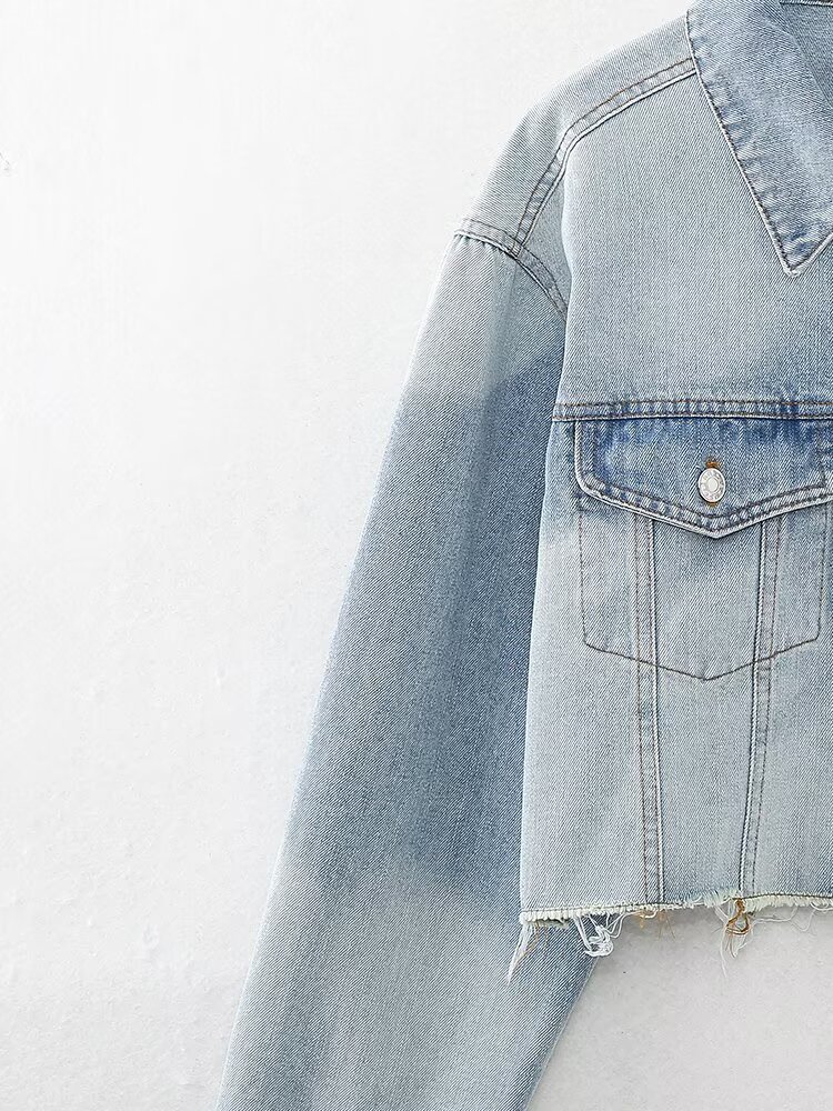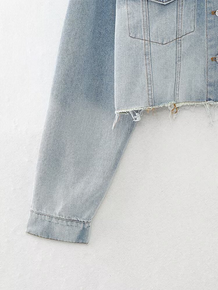 국경 간 대외 무역 여성 의류 도매 유럽과 미국 스타일의 세련된 맞춤형 로우 엣지 데님 짧은 재킷 8197257스토어 가기