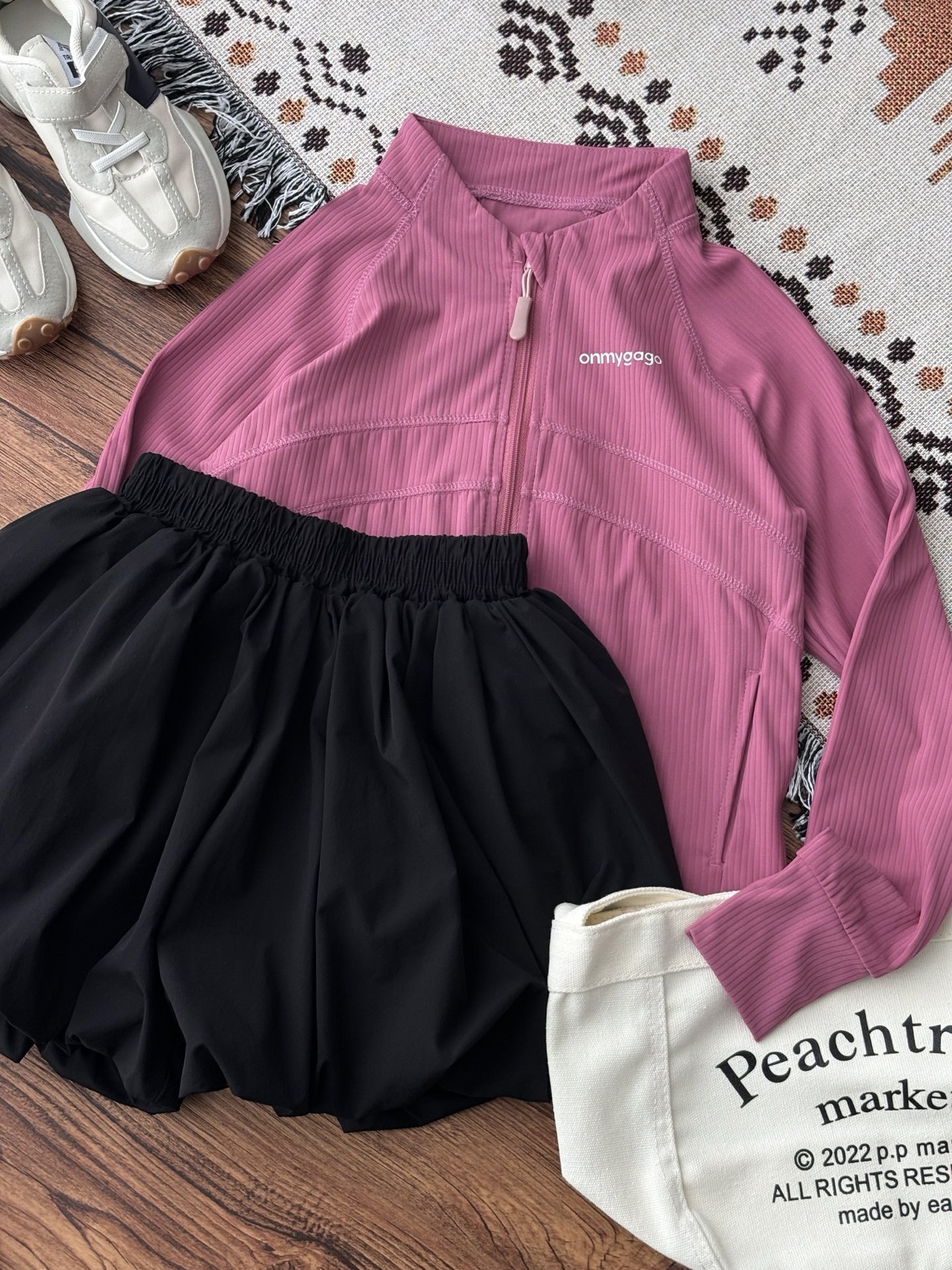 룰루의 같은 스타일 여아 코트, 짧은 스타일, 중대형 아동 요가복, 슬림 스탠드 칼라 가디건 탑, 스포츠 피트니스 재킷