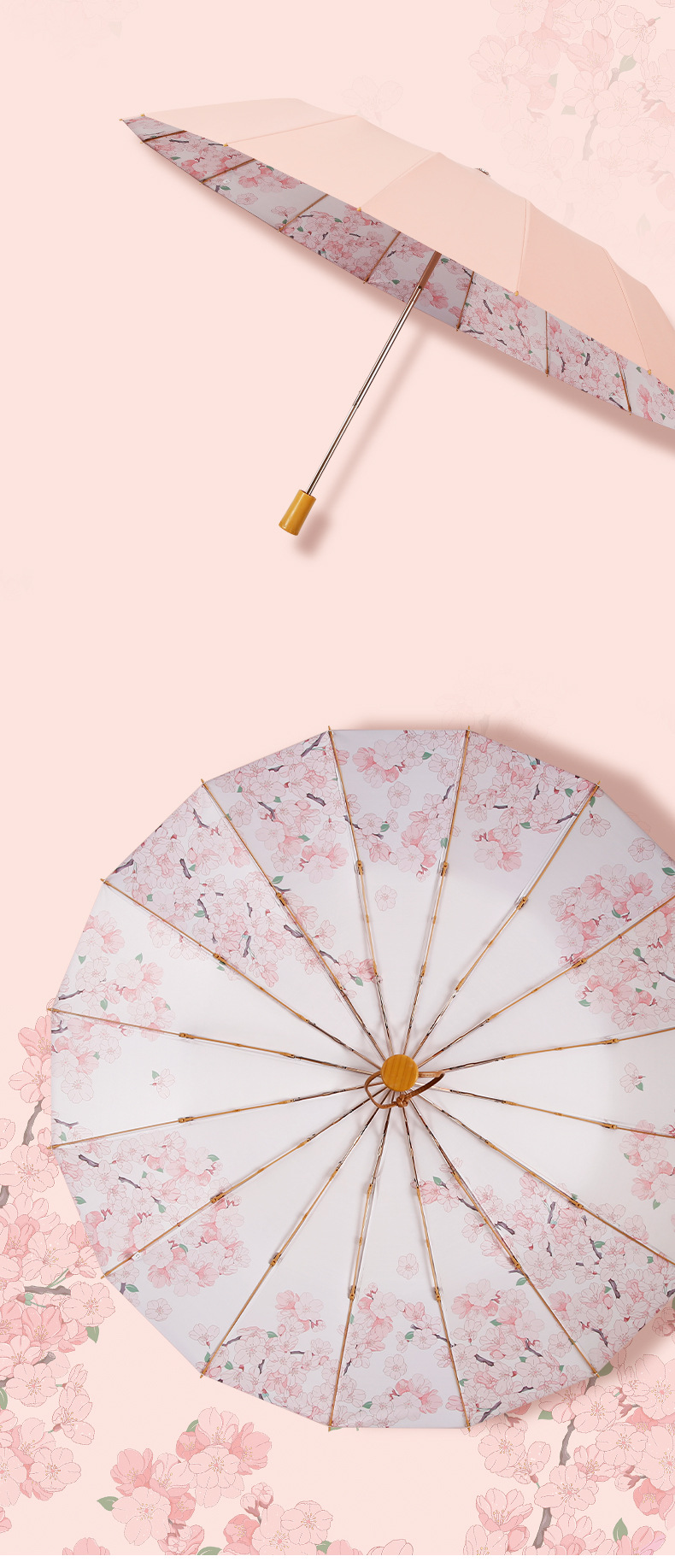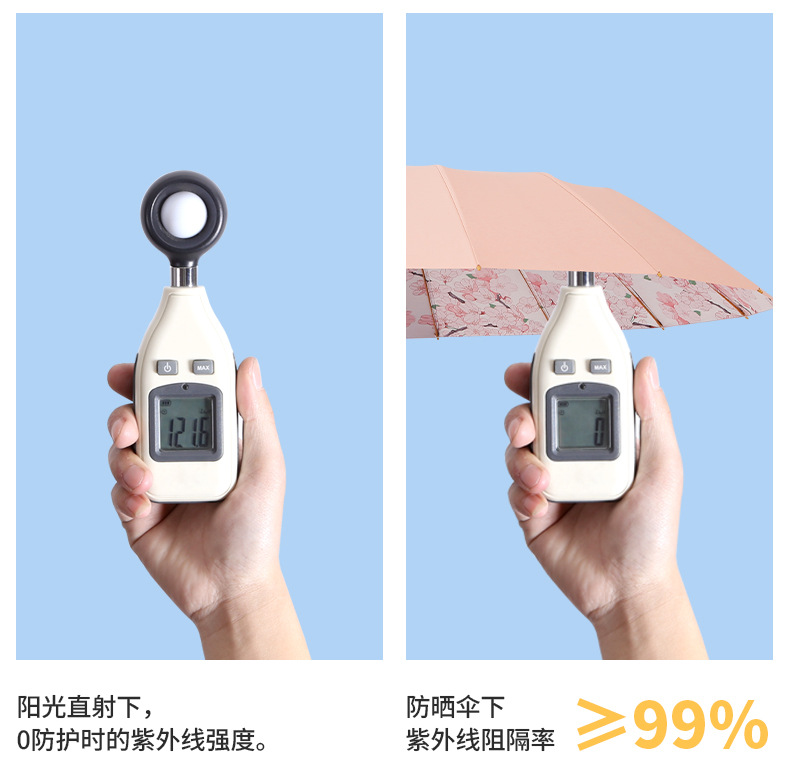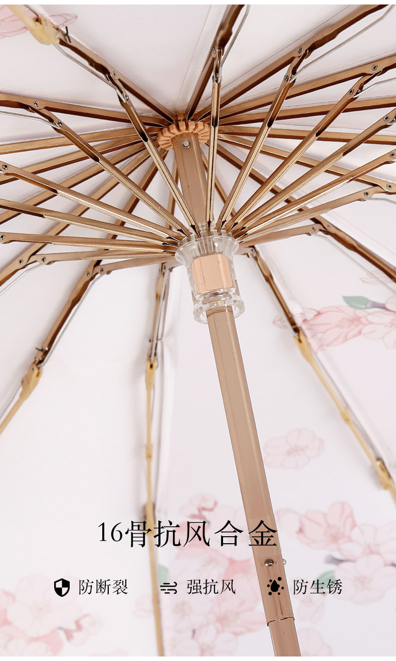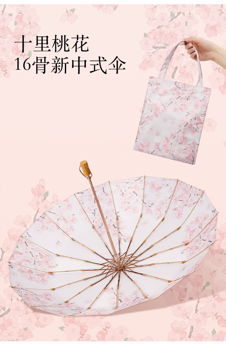 새로운 중국 스타일 16본 이중골 골드 폴 강화 우산 컬러풀한 접착제 완전 차광 자외선 차단 태양 우산과 같은 색상의 휴대용 가방