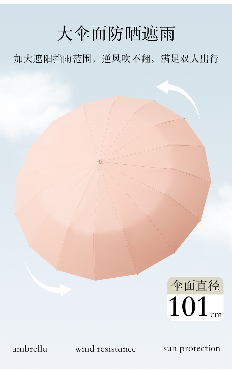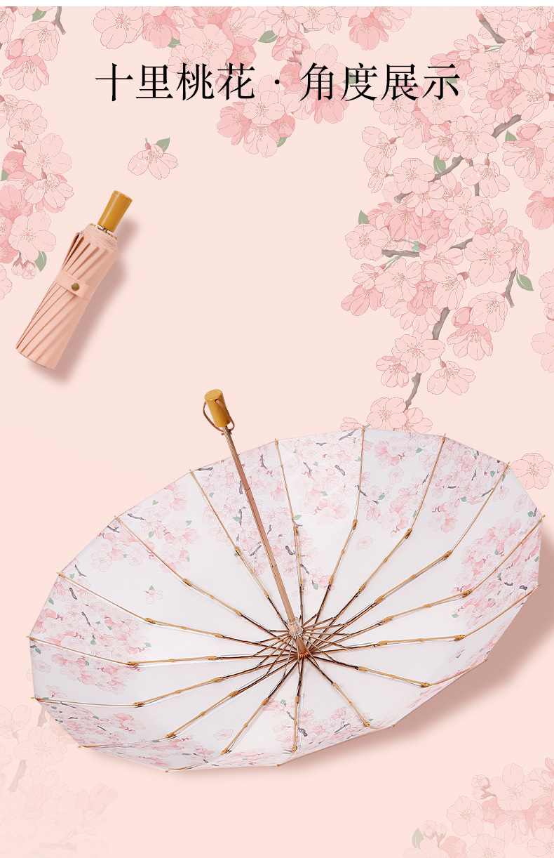 새로운 중국 스타일 16본 이중골 골드 폴 강화 우산 컬러풀한 접착제 완전 차광 자외선 차단 태양 우산과 같은 색상의 휴대용 가방스토어 가기