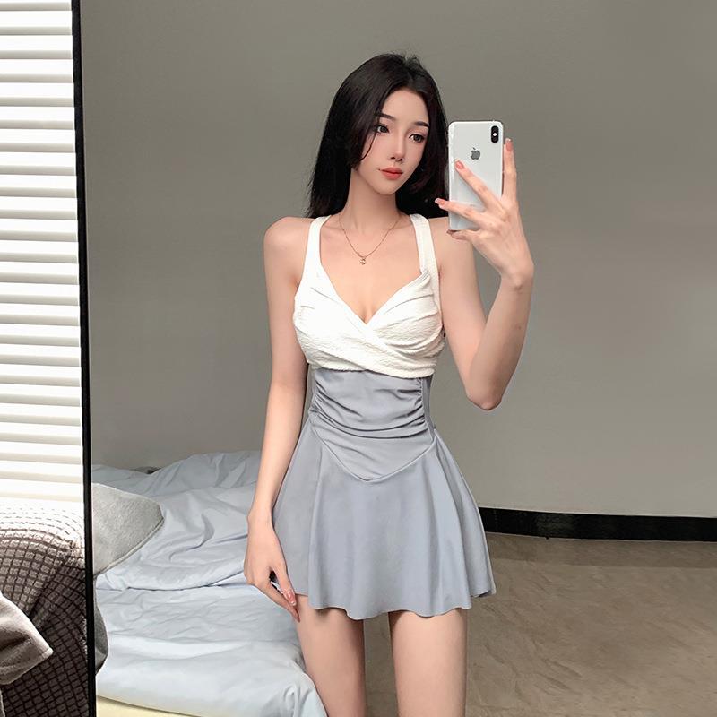 2023 여름 뉴 크로스 숄더 스트랩 백리스 섹시한 원피스 복서 반바지 스커트 컬러 매칭 작은 스타일 수영복 여성용스토어 가기